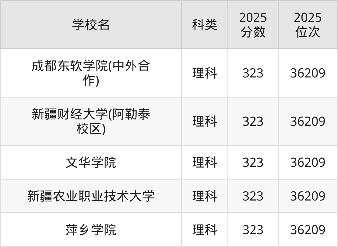 下面老师将以上文的新疆为例,为大家具体展示325分左右能上的本科大学名单。