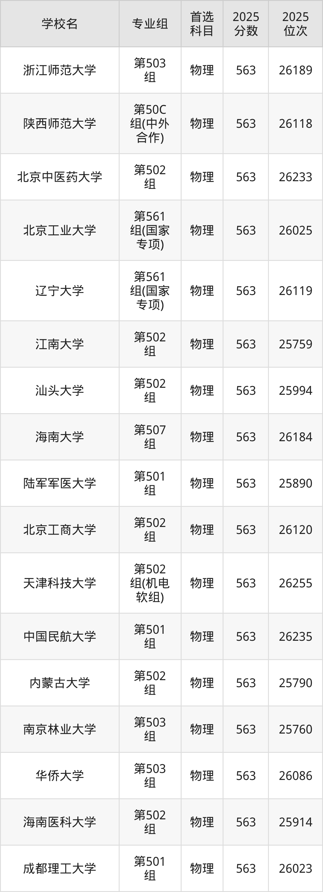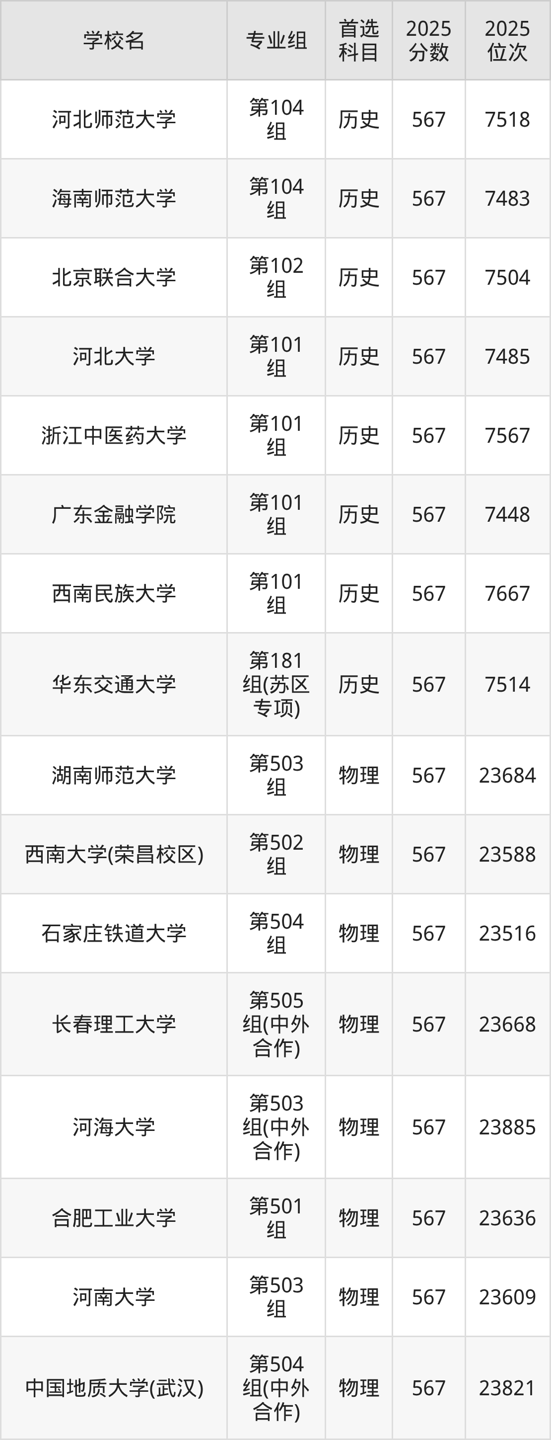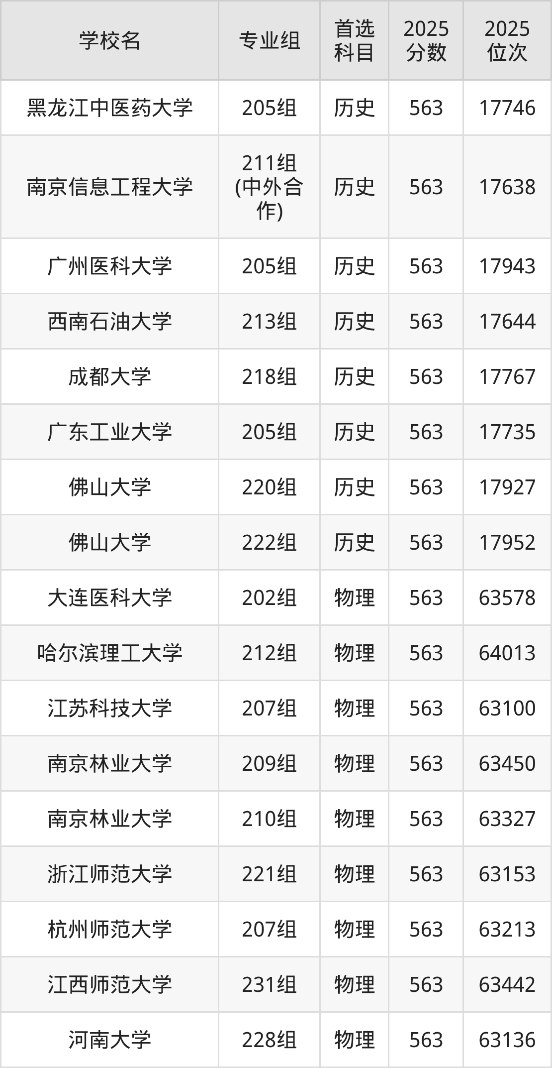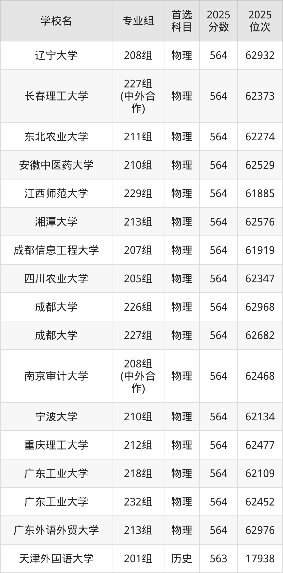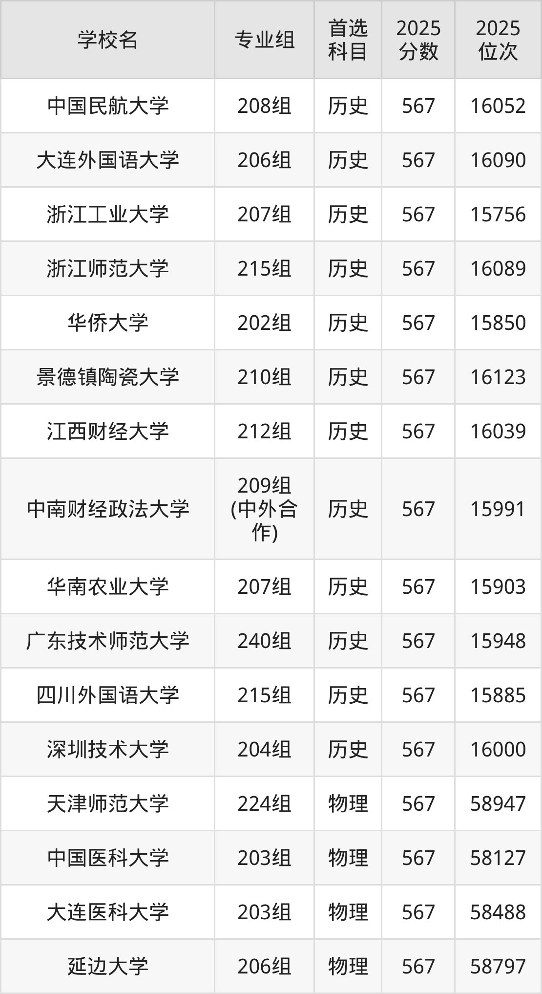 广东高考物理类565分对应的位次排名是60677名-61818名,历史类565分对应的位次排名是16644名-17015名,因此建议2026年位次排在这附近的同学考虑这些大学。