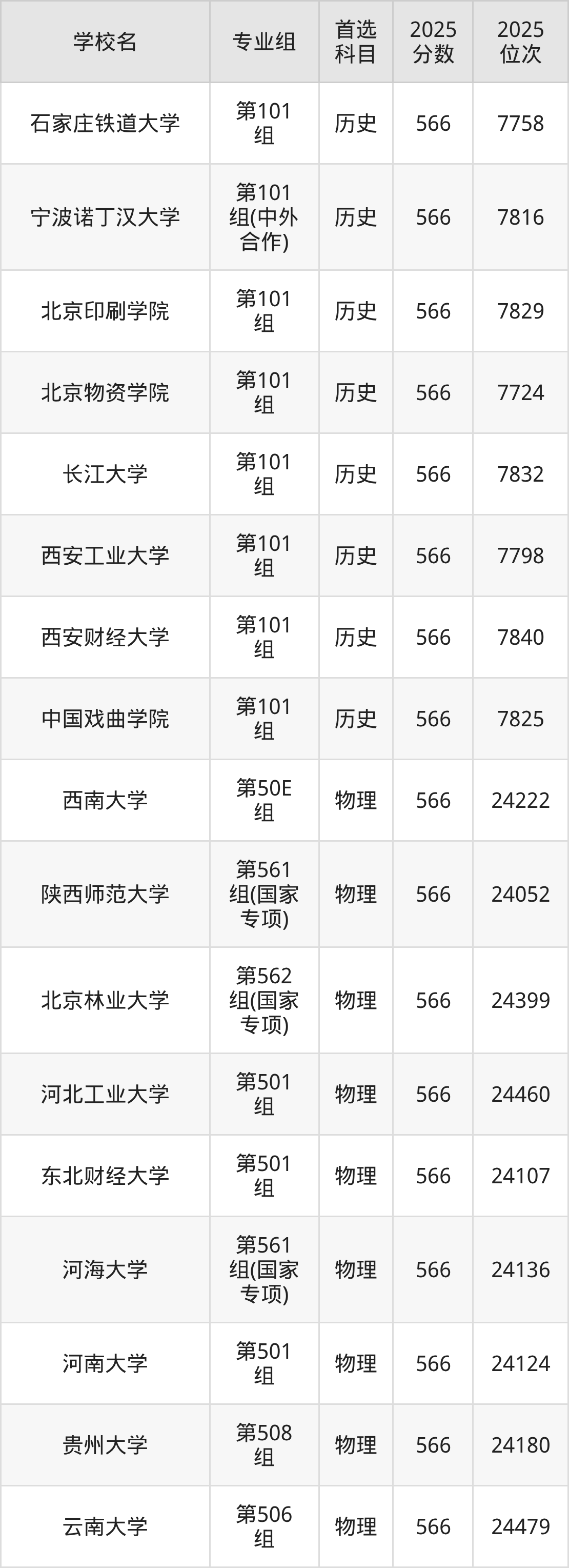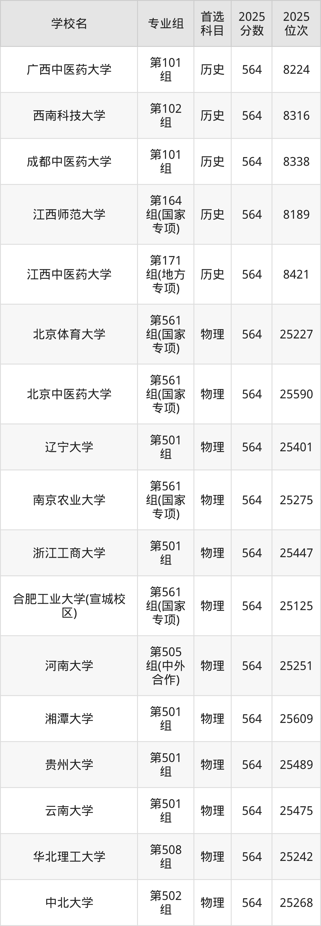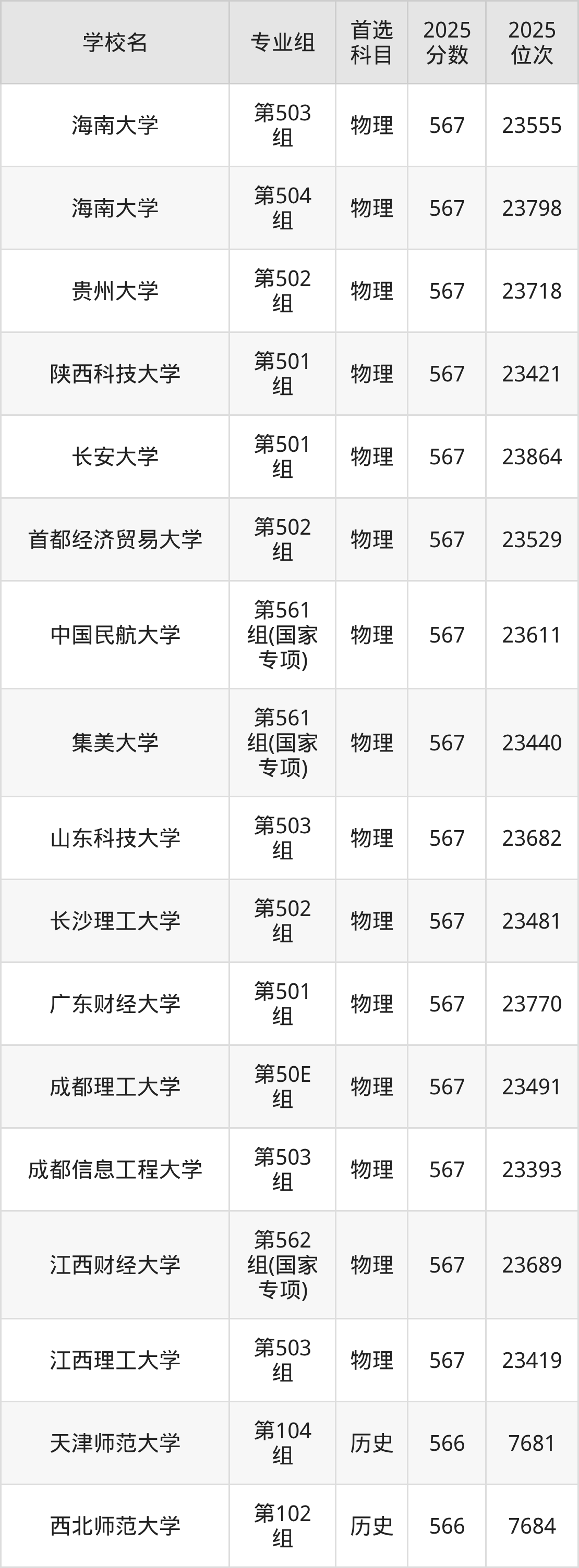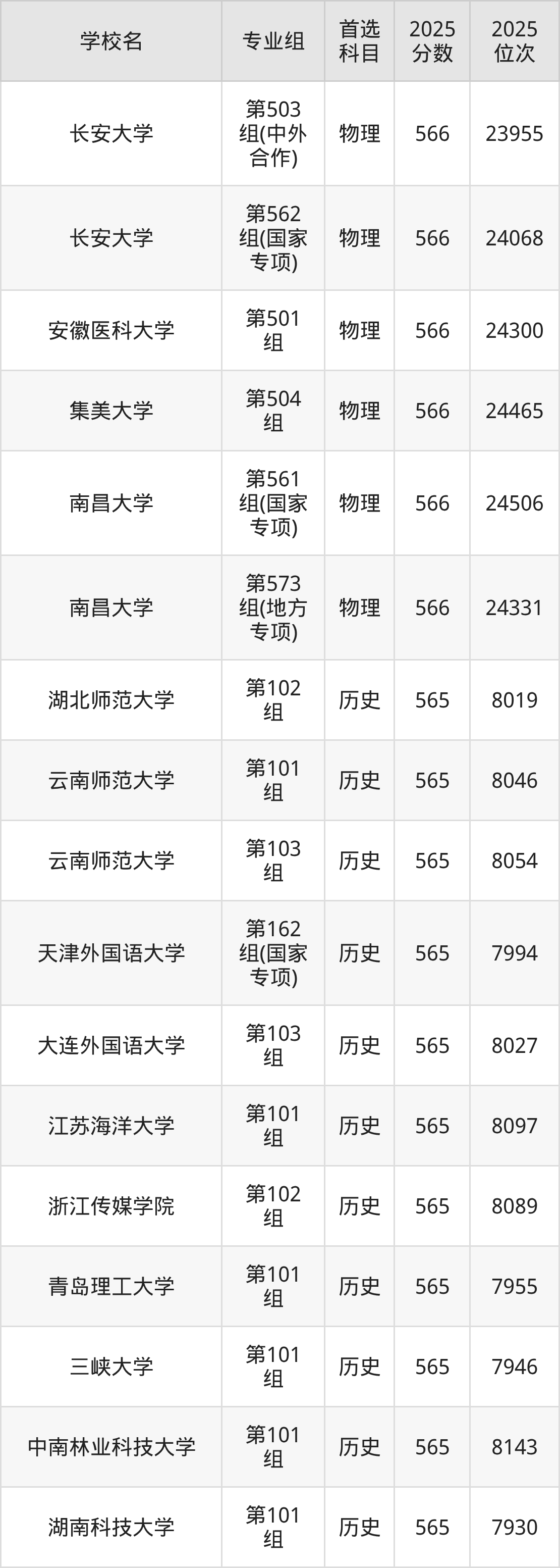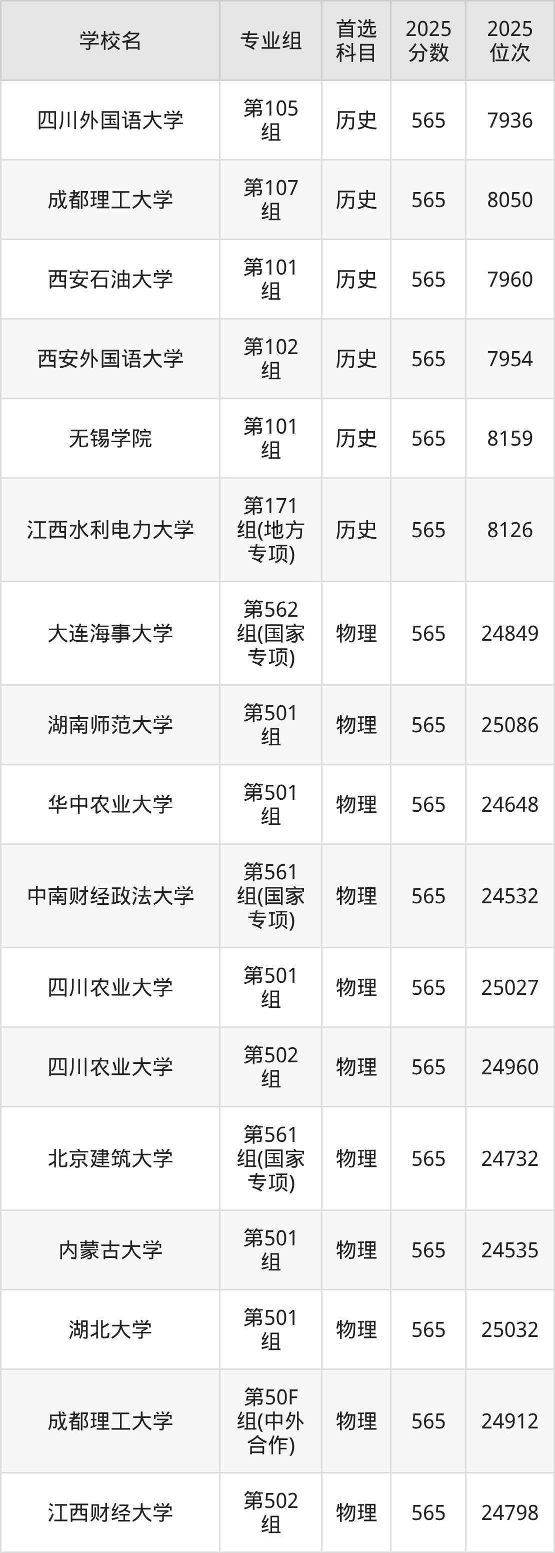 江西高考物理类565分对应的位次排名是24532名-25086名,历史类565分对应的位次排名是7930名-8159名,因此建议2026年位次排在这附近的同学考虑这些大学。