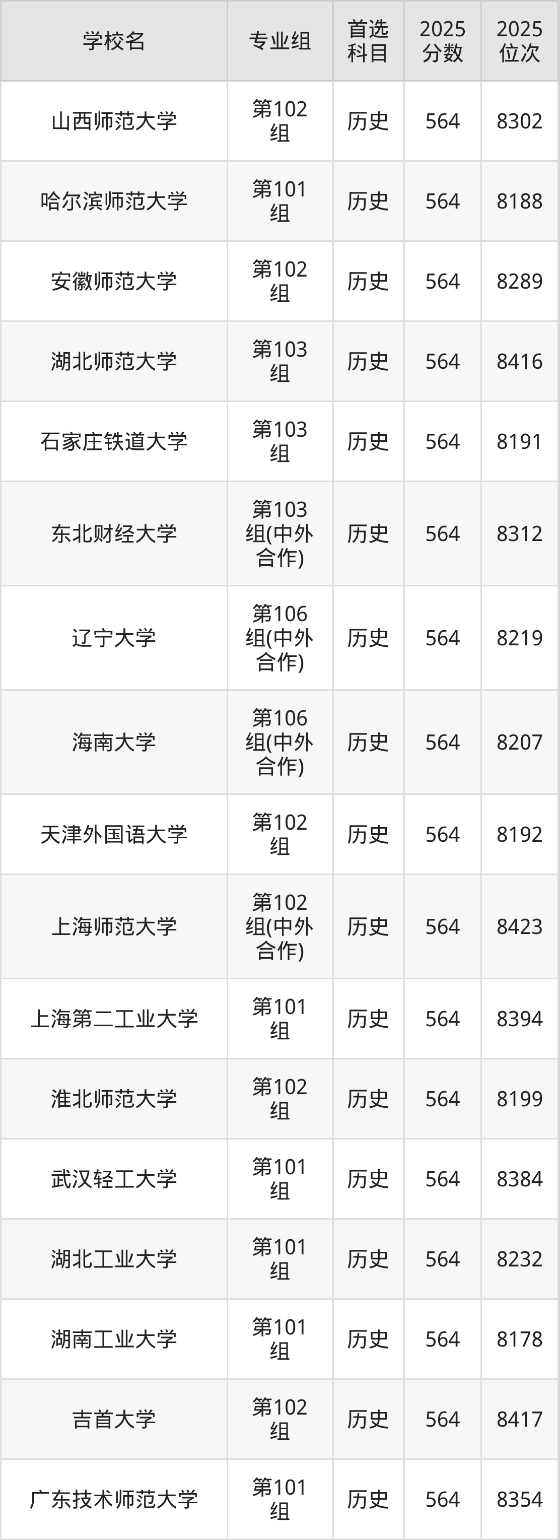 历史类565分可以冲的大学:河北师范大学567分、海南师范大学567分、北京联合大学567分、河北大学567分等;较稳妥的大学:山西师范大学564分、哈尔滨师范大学564分、安徽师范大学564分、湖北师范大学564分等。