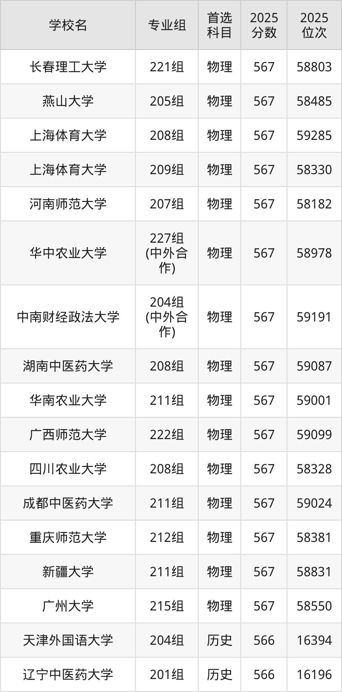 物理类565分可以冲的大学:湖南师范大学567分、西南大学(荣昌校区)567分、石家庄铁道大学567分、长春理工大学567分等;较稳妥的大学:北京体育大学564分、北京中医药大学564分、辽宁大学564分、南京农业大学564分等。