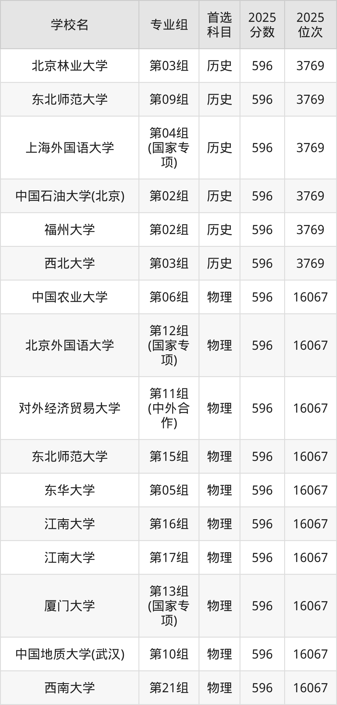 历史类594分可以冲的大学:北京林业大学596分、东北师范大学596分、上海外国语大学596分、中国石油大学(北京)596分等;较稳妥的大学:大连海事大学593分、哈尔滨工程大学593分、中国矿业大学593分、中国地质大学(武汉)593分等。