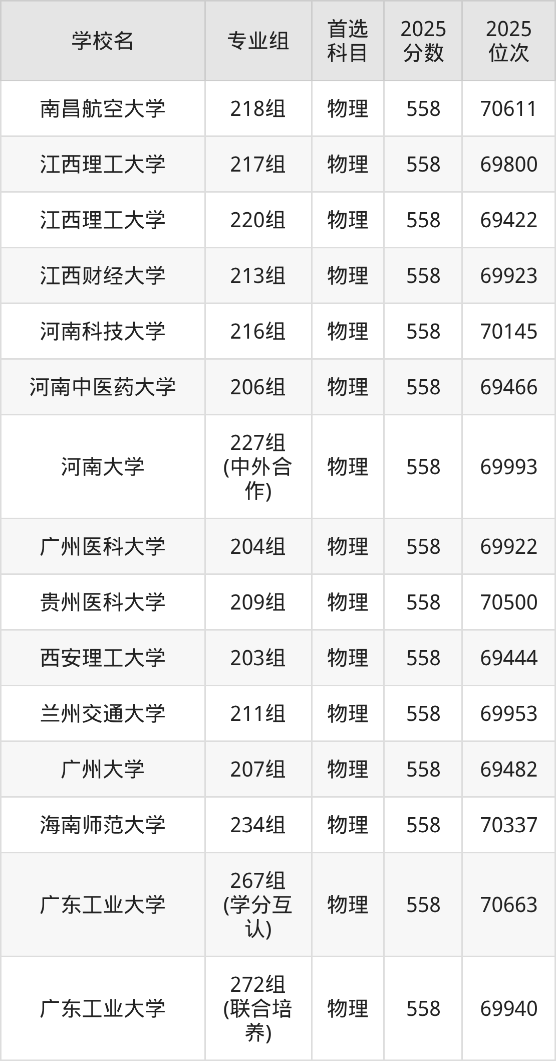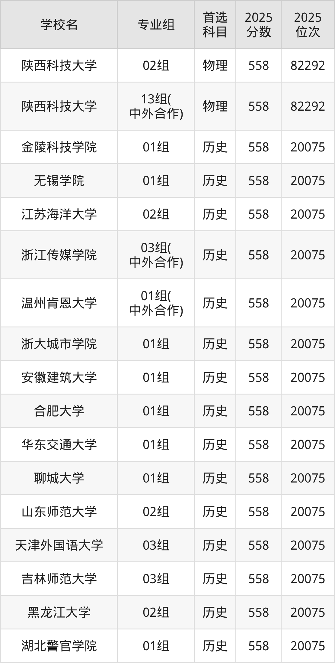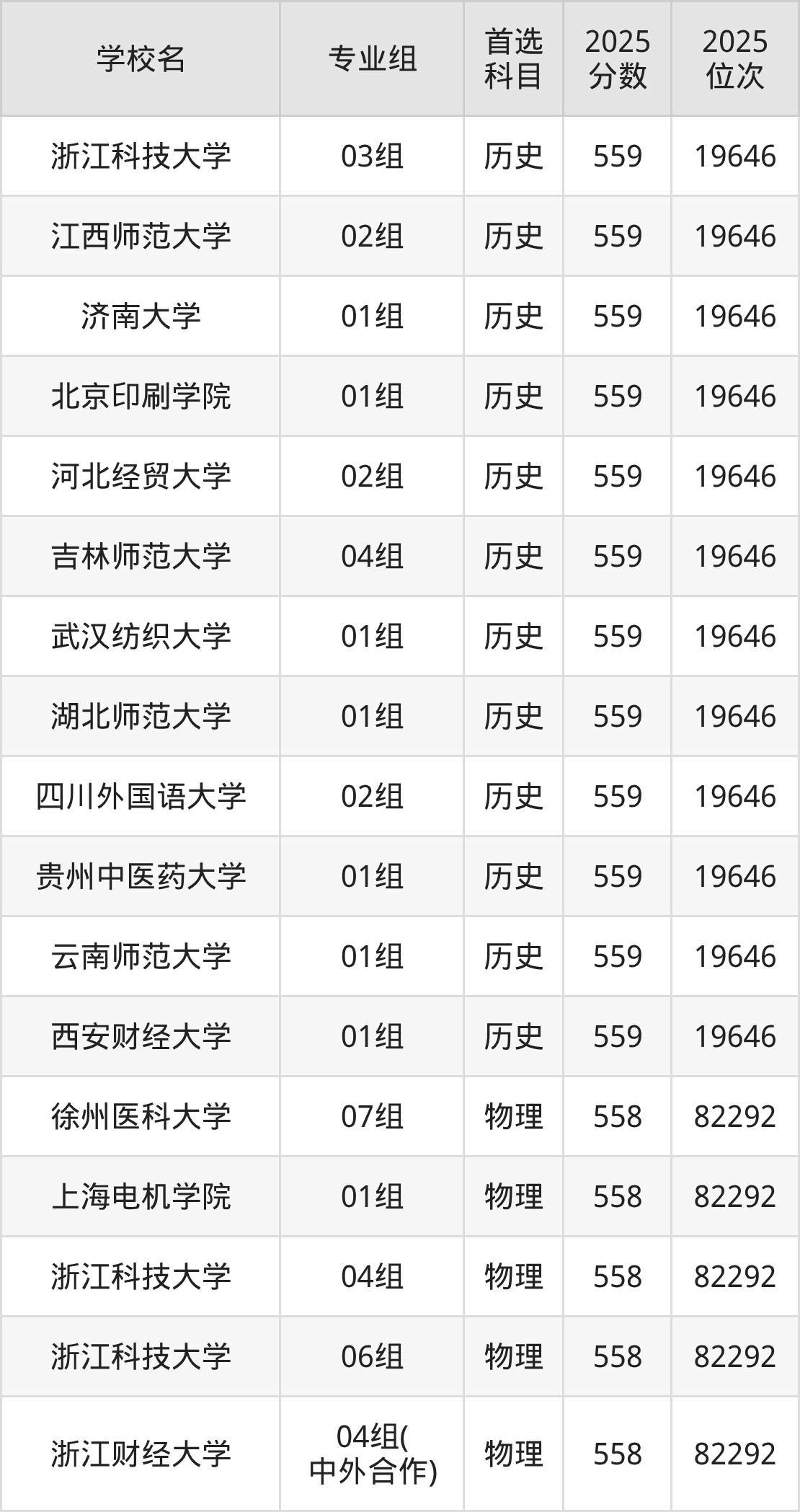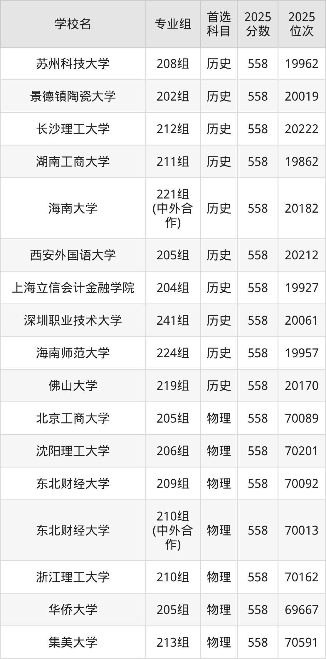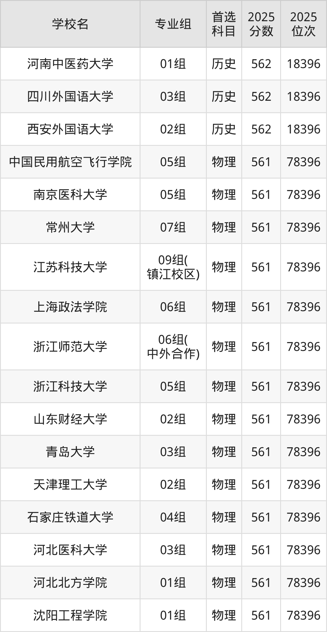 江苏高考物理类560分对应的位次排名是79711名,历史类560分对应的位次排名是19224名,因此建议2026年位次排在这附近的同学考虑这些大学。