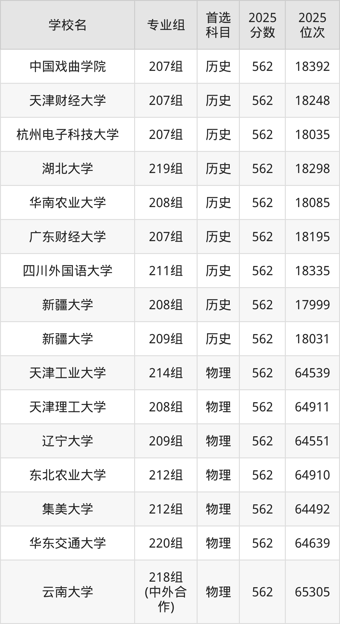 历史类560分可以冲的大学:中国戏曲学院562分、天津财经大学562分、杭州电子科技大学562分、湖北大学562分等;较稳妥的大学:浙江农林大学559分、赣南师范大学559分、河南大学559分、长沙理工大学559分等。