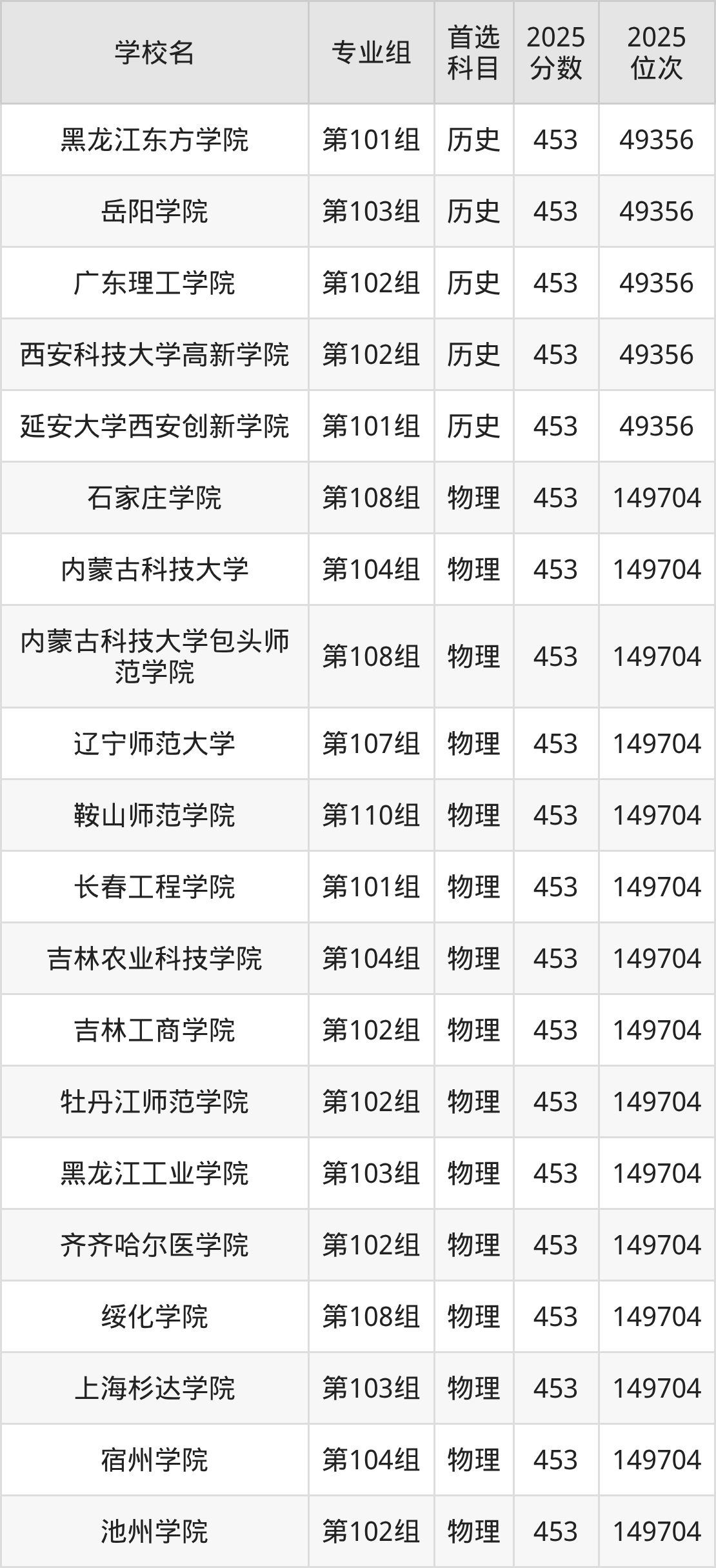 2025年在甘肃高考物理类录取分数线是451分的大学有河北建筑工程学院、石家庄学院、内蒙古工业大学、沈阳体育学院、哈尔滨商业大学、泰州学院、武夷学院、赣南师范大学、赣东学院、华北水利水电大学等。历史类录取分数线是451分的大学有北京中医药大学东方学院、河北科技工程职业技术大学、黑龙江工业学院、许昌学院、洛阳师范学院、郑州工程技术学院、广西民族师范学院、西昌学院、拉萨师范学院、青海师范大学等。