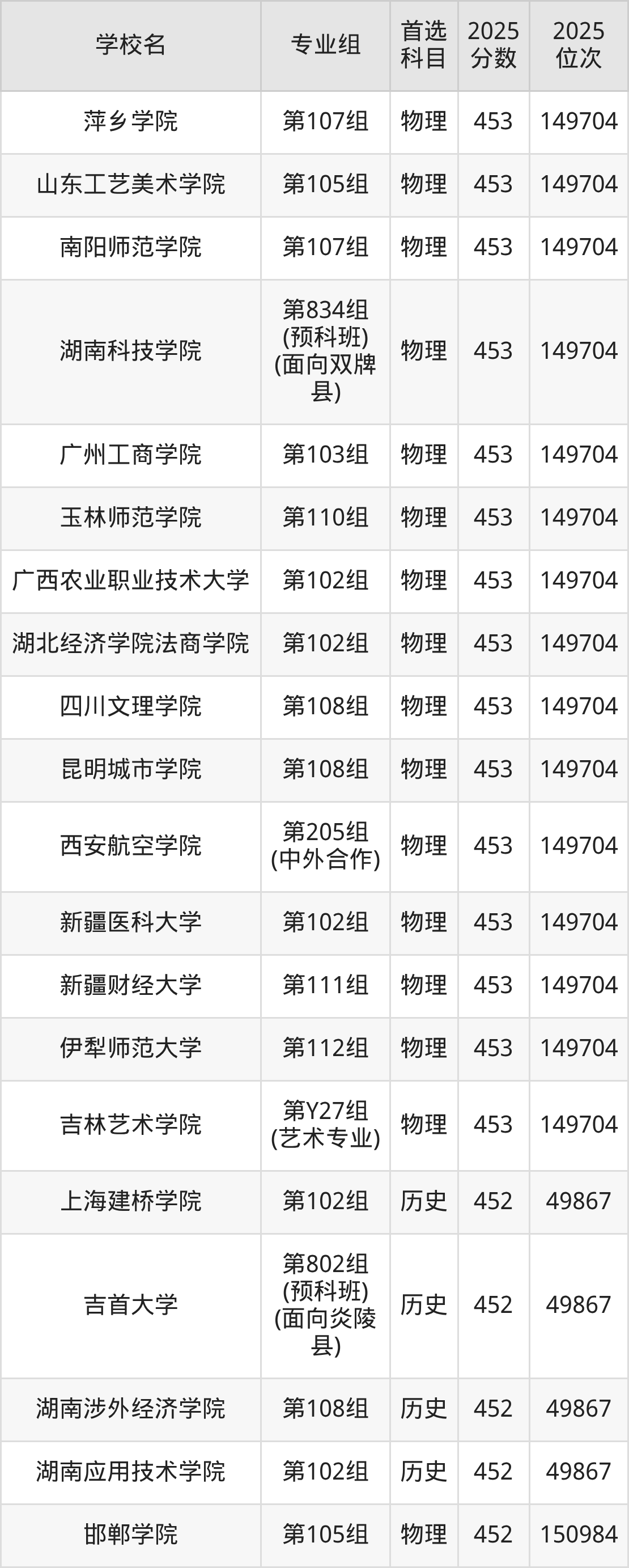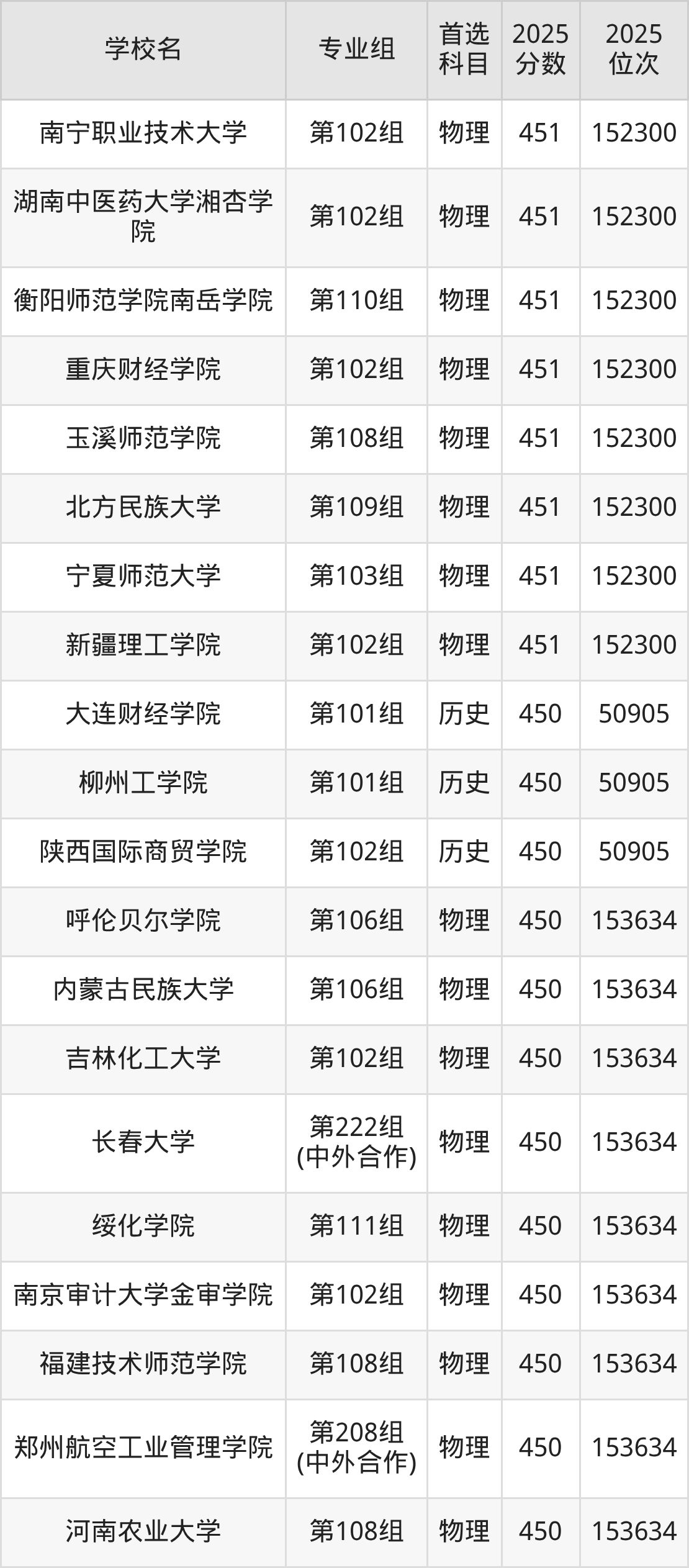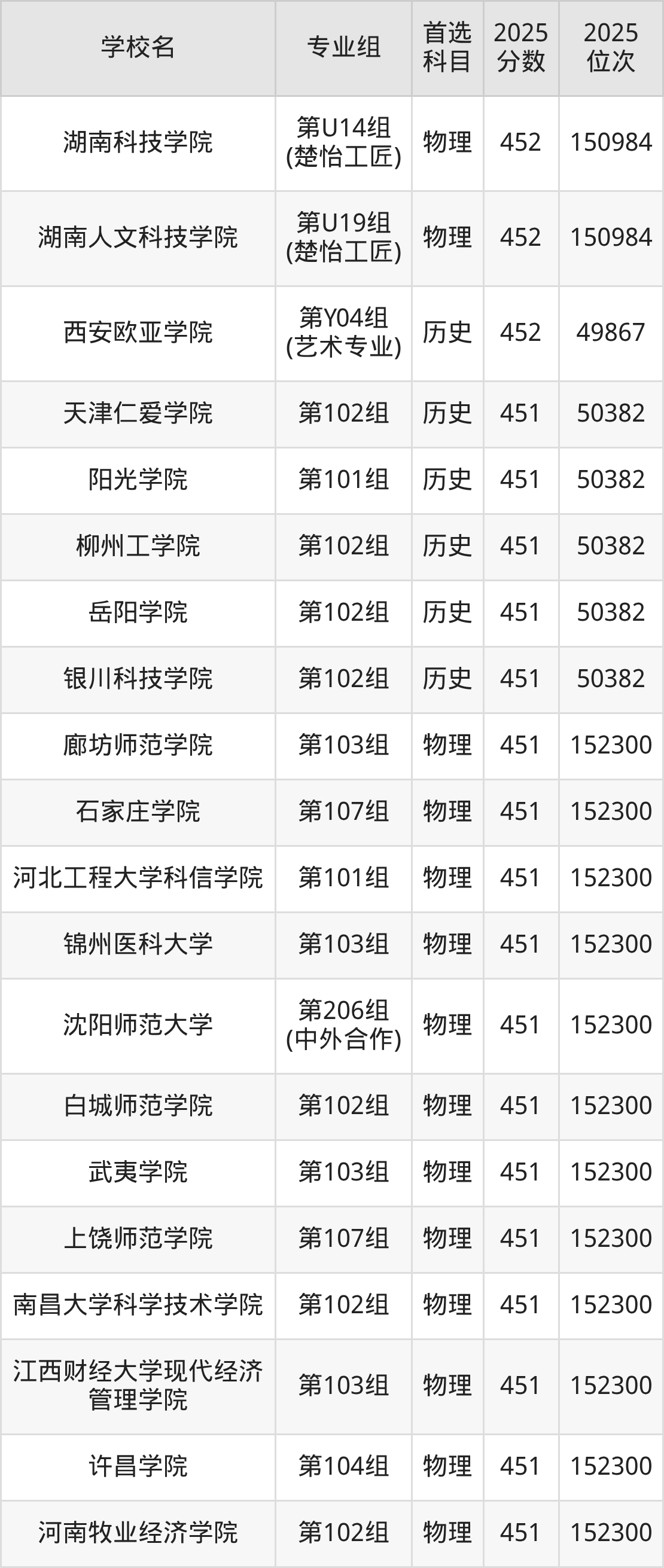 湖南高考历史类451分对应的位次排名是50382名,物理类451分对应的位次排名是152300名,因此建议2026年位次排在这附近的同学考虑这些大学。