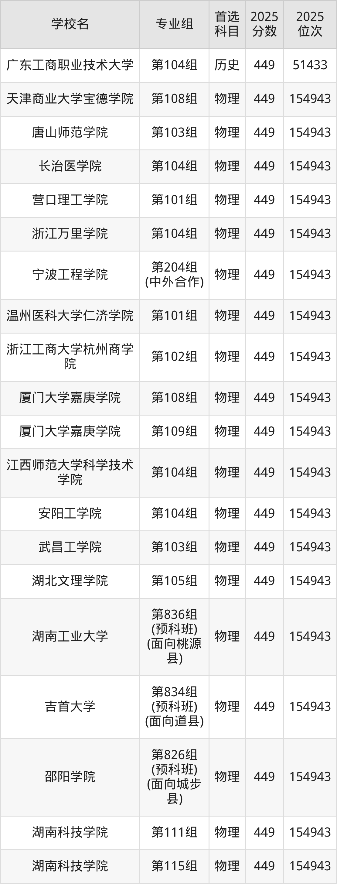 2025年在湖南高考历史类录取分数线是451分的大学有天津仁爱学院、阳光学院、柳州工学院、岳阳学院、银川科技学院。物理类录取分数线是451分的大学有廊坊师范学院、石家庄学院、河北工程大学科信学院、锦州医科大学、沈阳师范大学、白城师范学院、武夷学院、上饶师范学院、南昌大学科学技术学院、江西财经大学现代经济管理学院等。