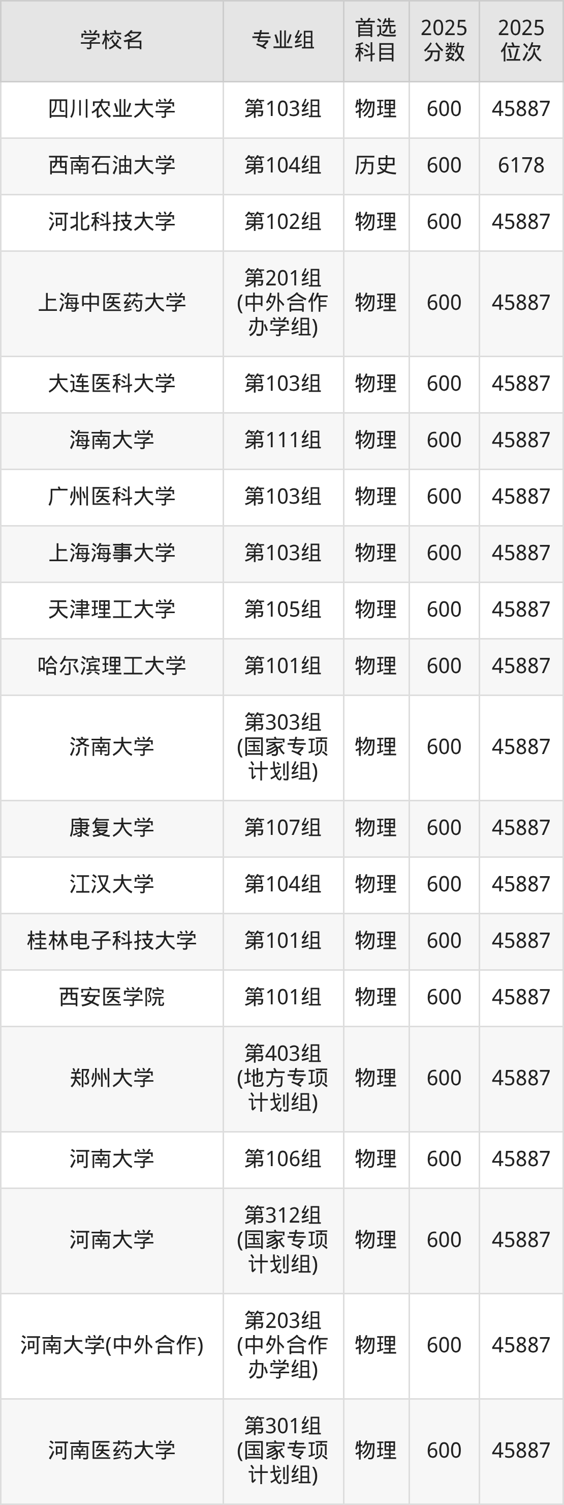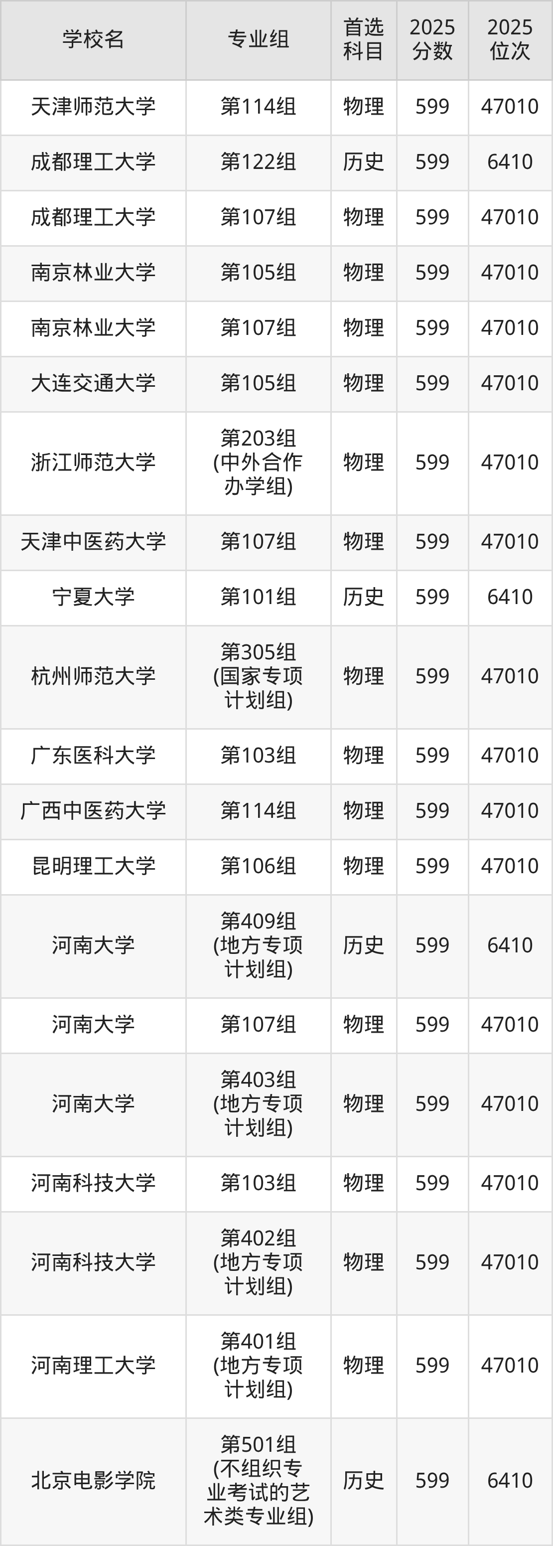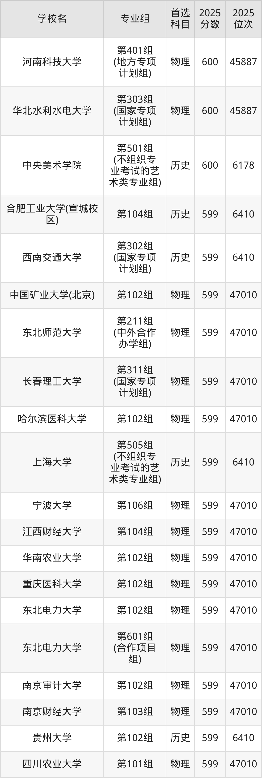 河南高考历史类601分对应的位次排名是5929名,物理类601分对应的位次排名是44843名,因此建议2026年位次排在这附近的同学考虑这些大学。