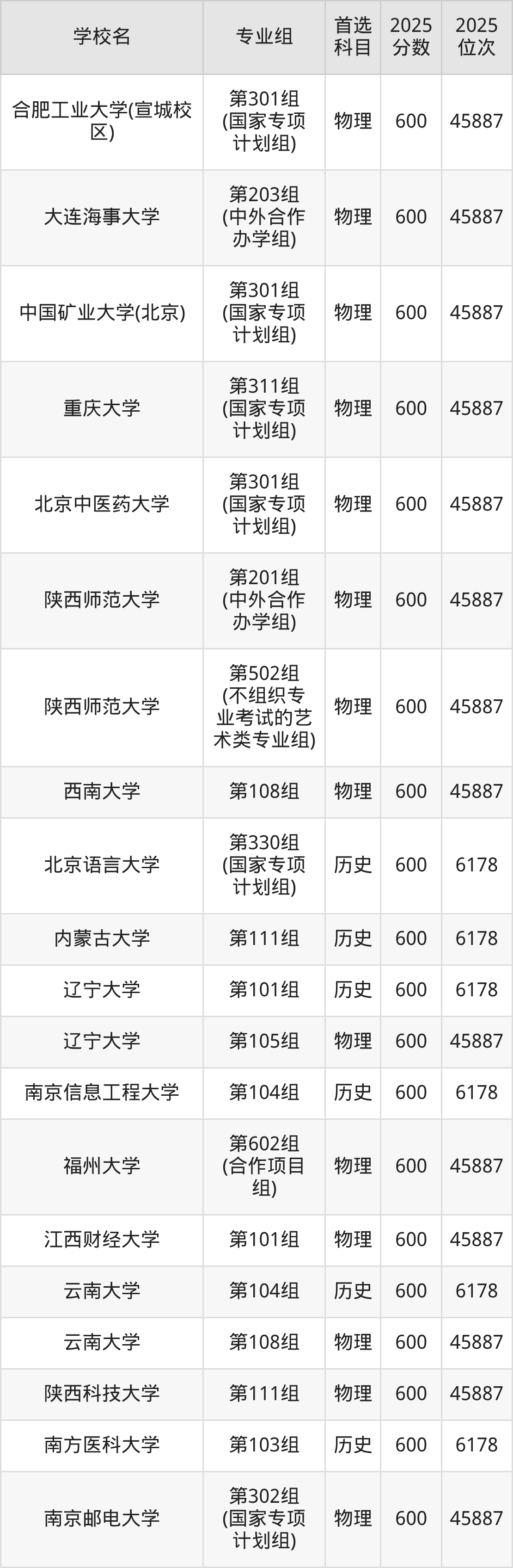 从2025年划定的批次线来看,601分在以下地区可以上本科大学,2025年本科线不超过601分的地区有30个,具体如下: