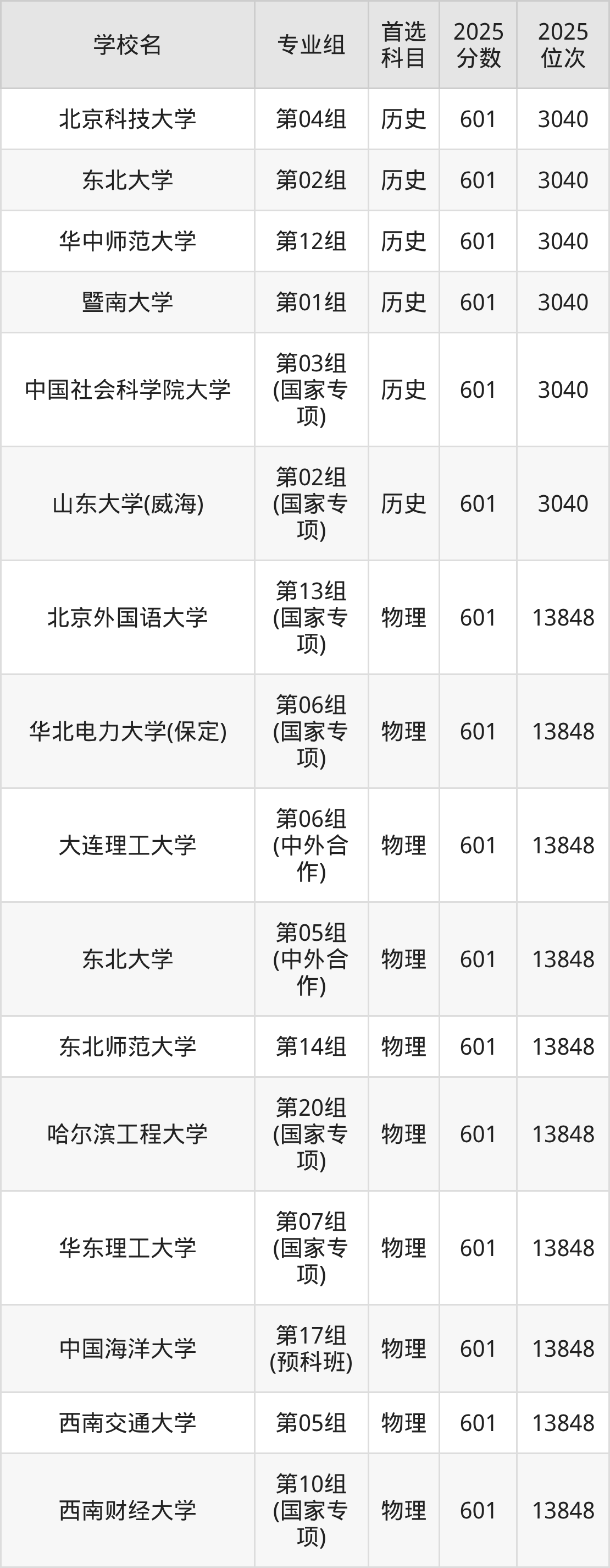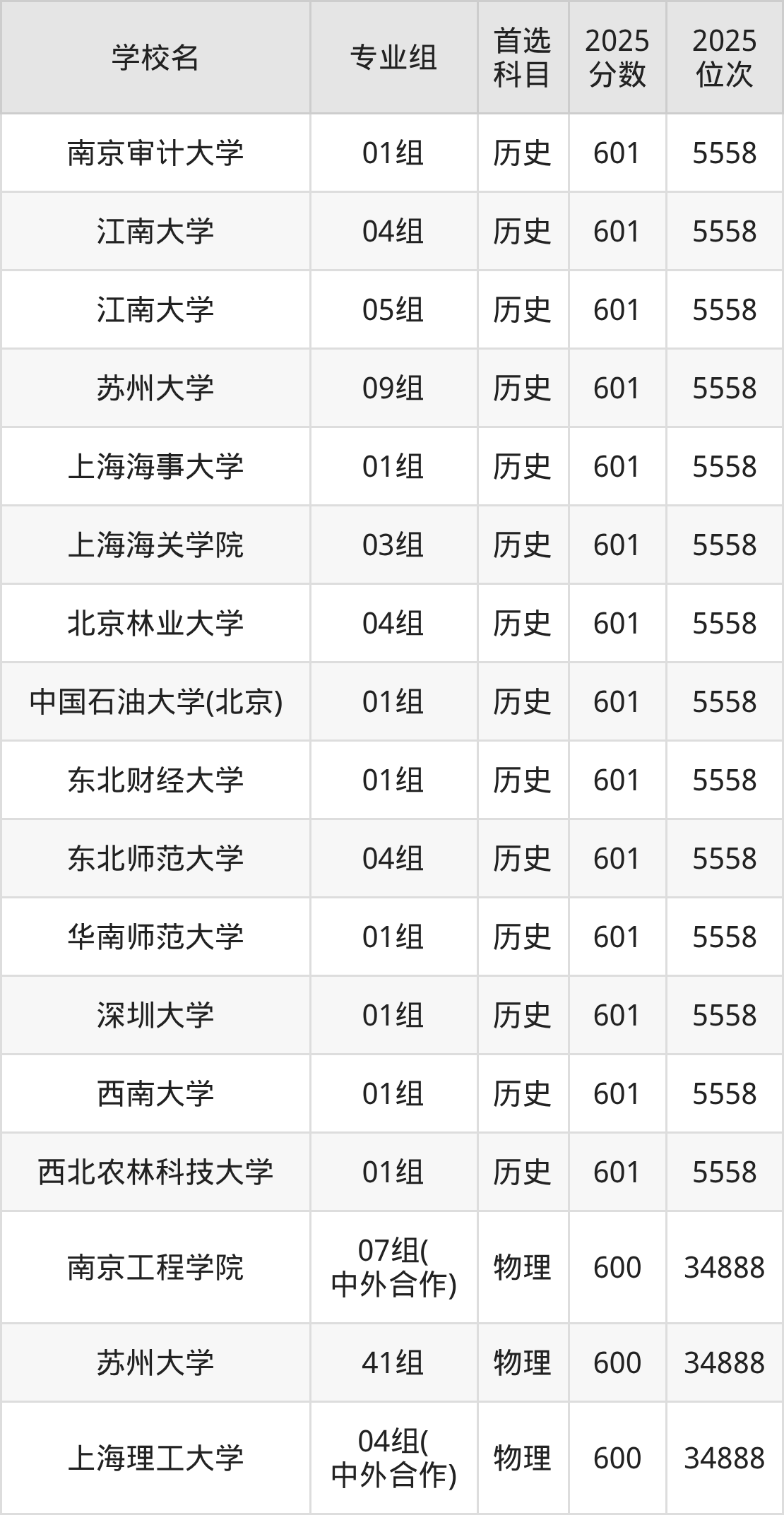 历史类599分可以冲的大学:南京财经大学601分、南京审计大学601分、江南大学601分、苏州大学601分等;较稳妥的大学:苏州大学598分、北京林业大学598分、华北电力大学598分、东北财经大学598分等。