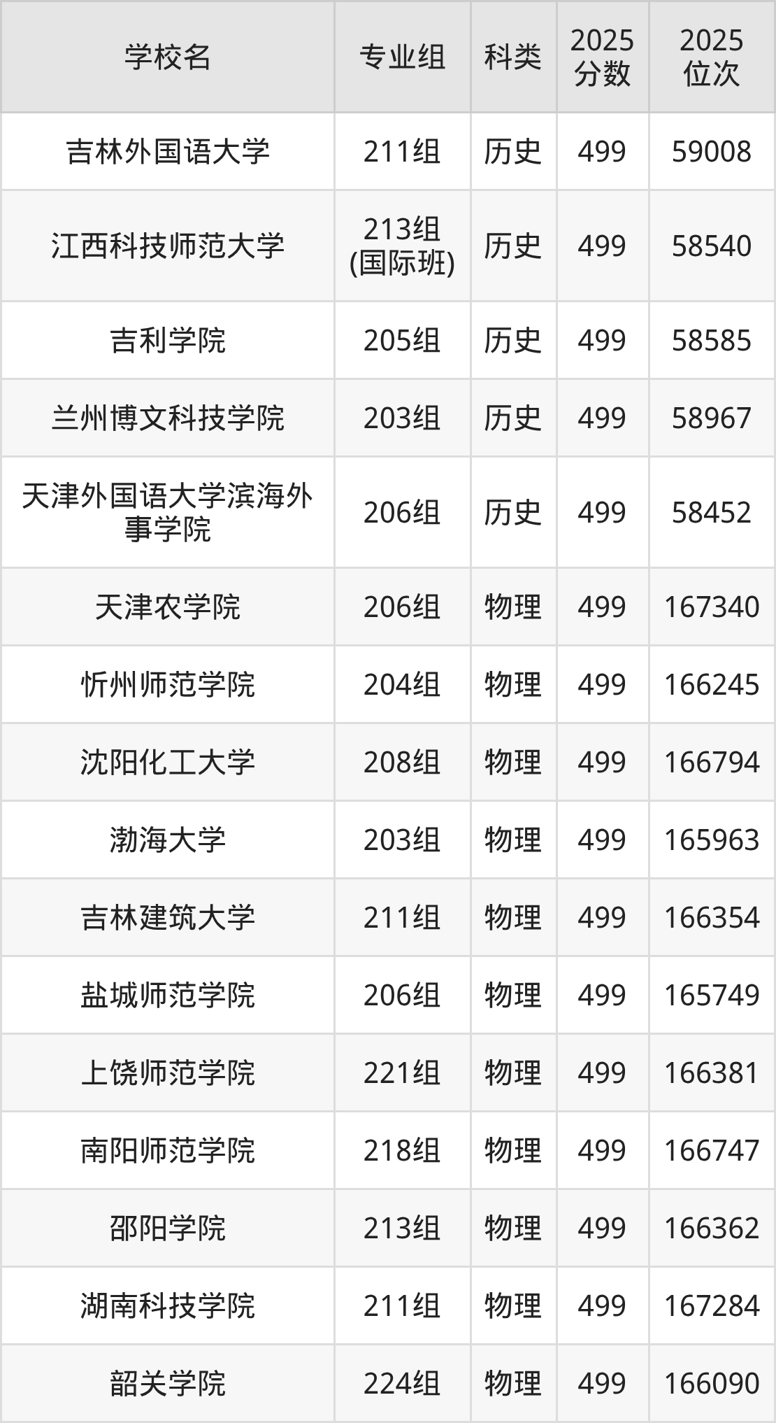 历史类497分可以冲的大学:吉林外国语大学499分、江西科技师范大学499分、吉利学院499分、兰州博文科技学院499分等;较稳妥的大学:三江学院496分、河北外国语学院496分、马鞍山学院496分、西安明德理工学院496分等。