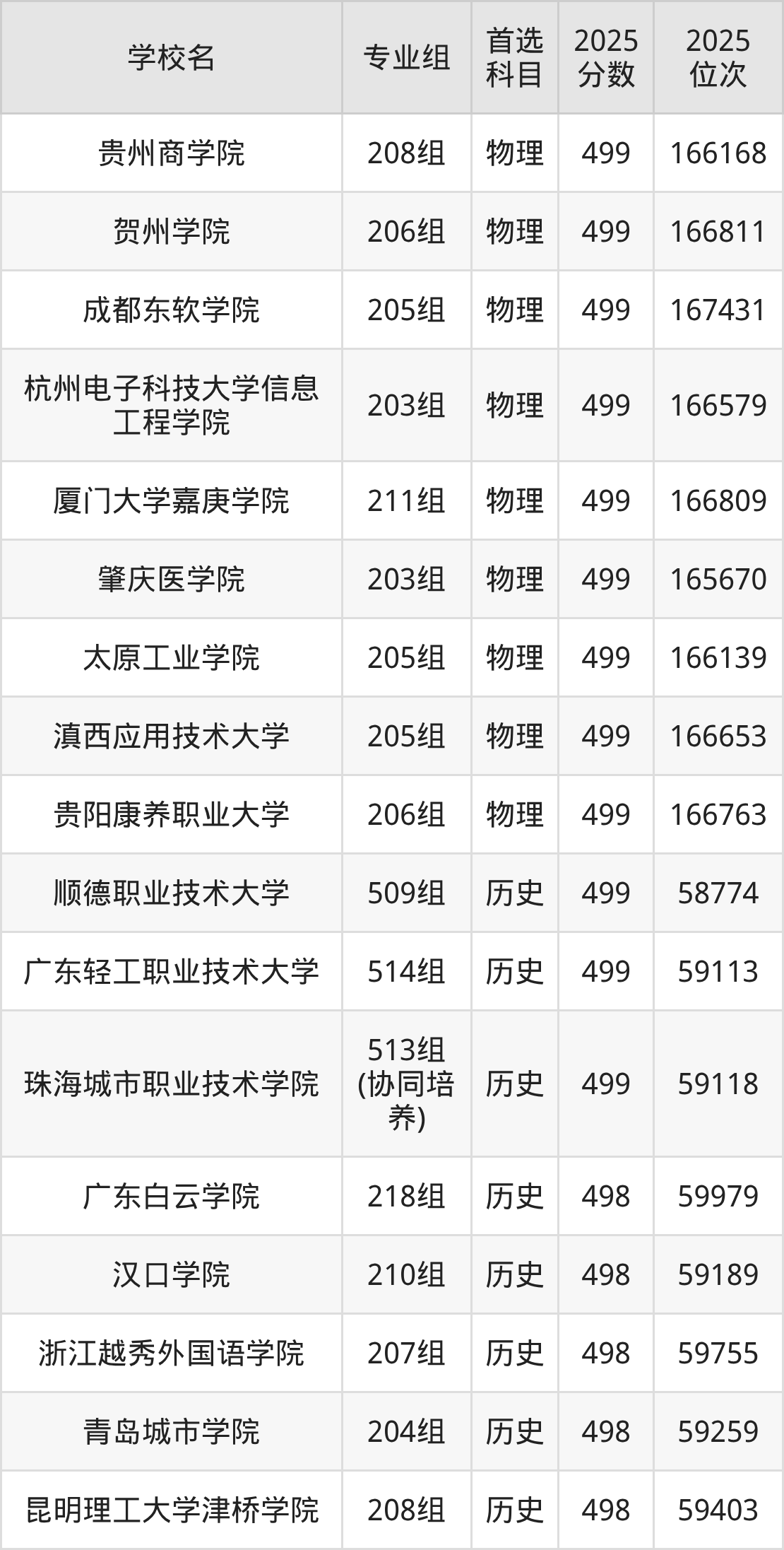 广东高考历史类497分对应的位次排名是60042名-60671名,物理类497分对应的位次排名是169391名-171179名,因此建议2026年位次排在这附近的同学考虑这些大学。