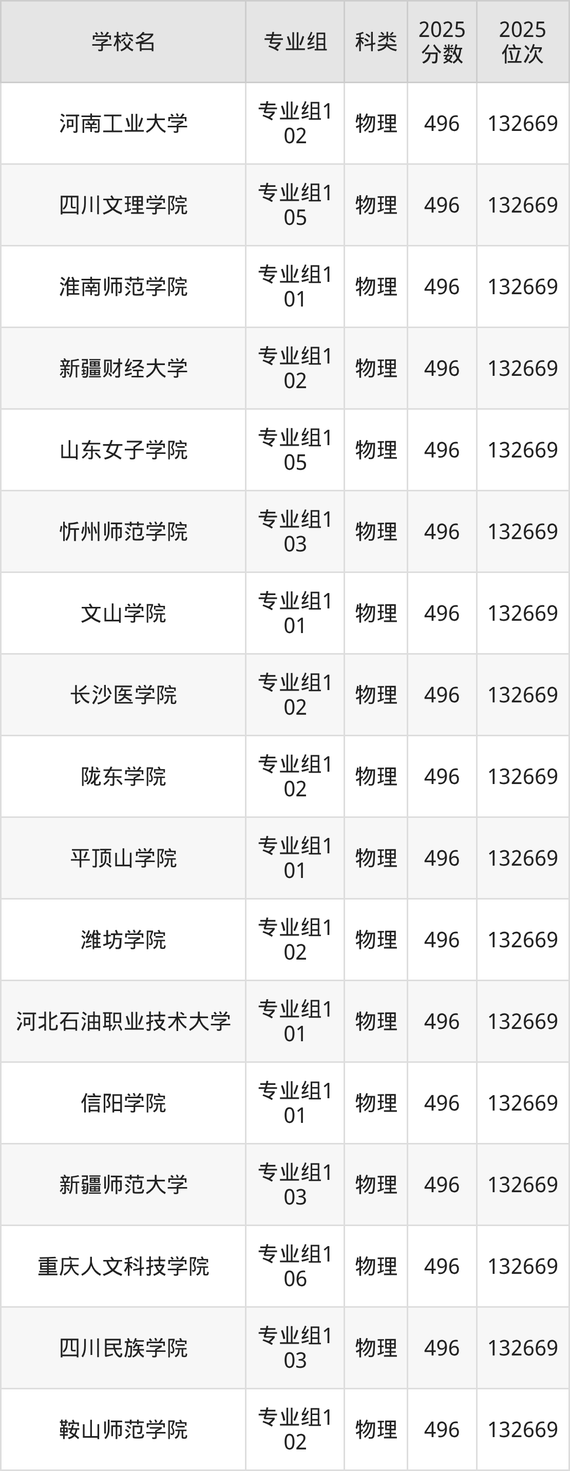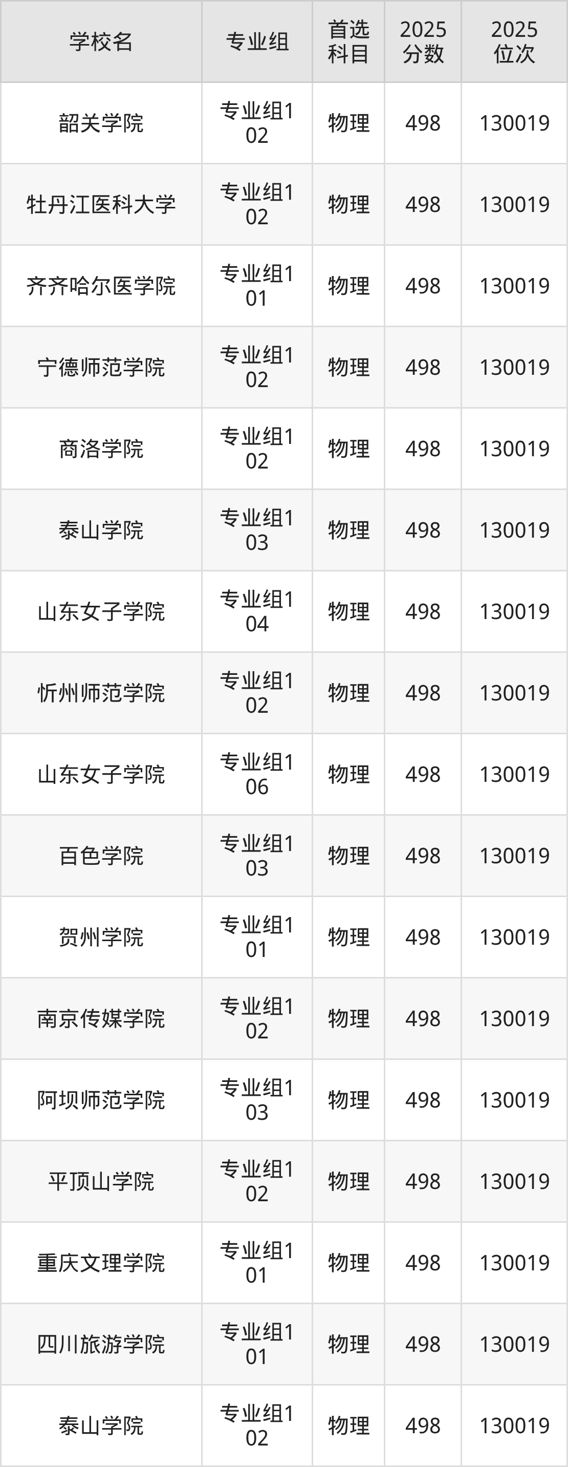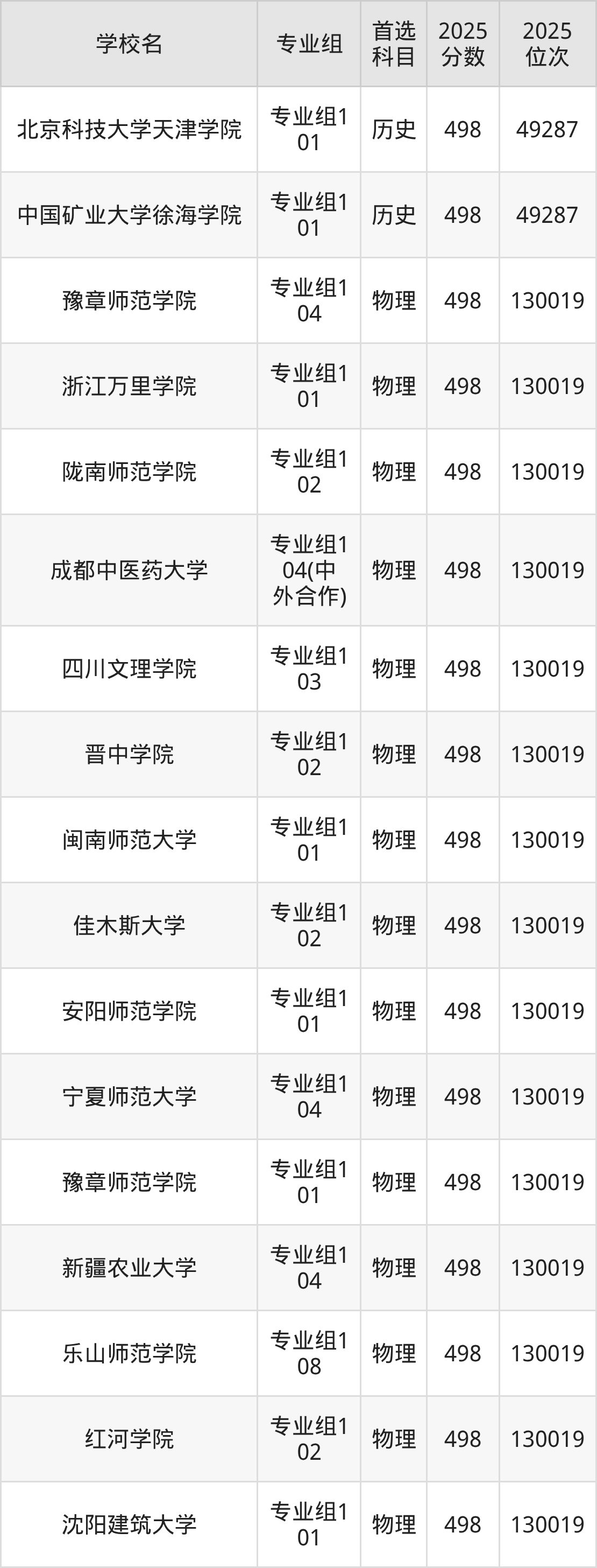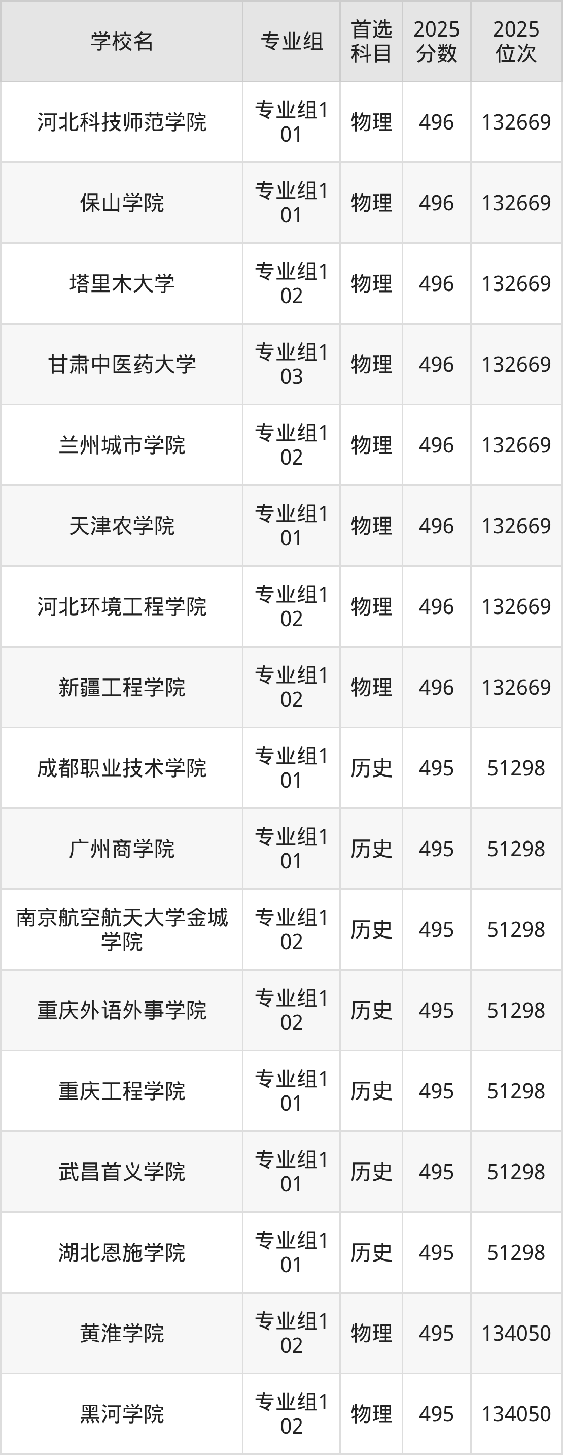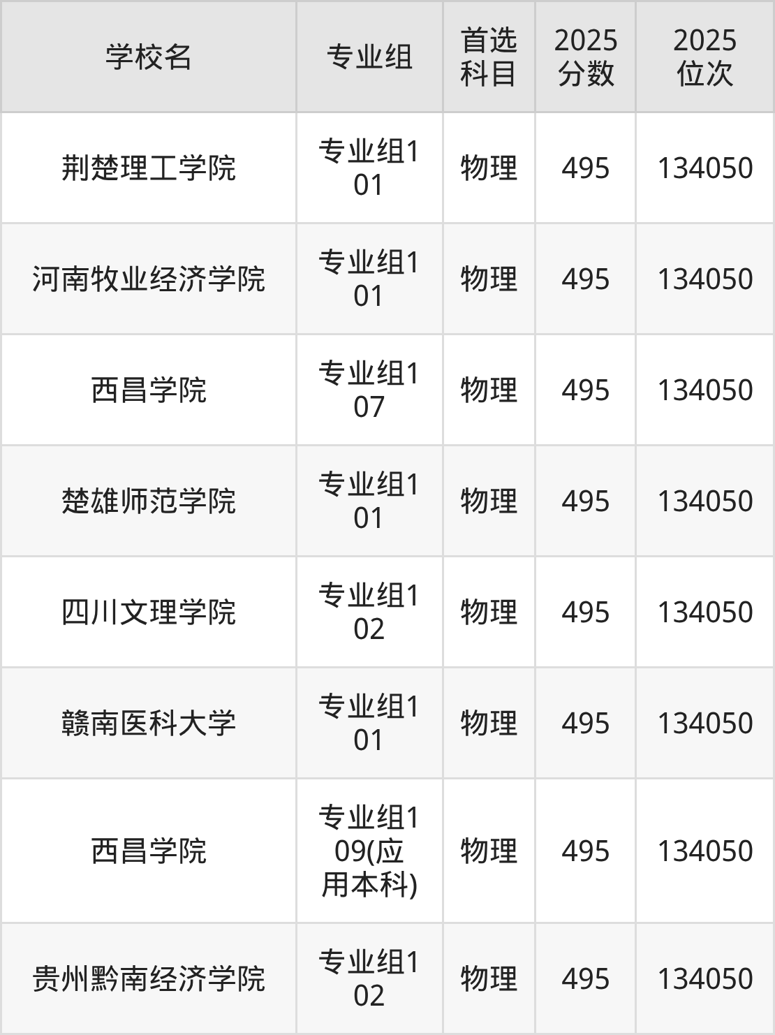 下面老师将以上文整理的其中两个省份为例,为大家具体展示497分左右能上的本科大学名单。