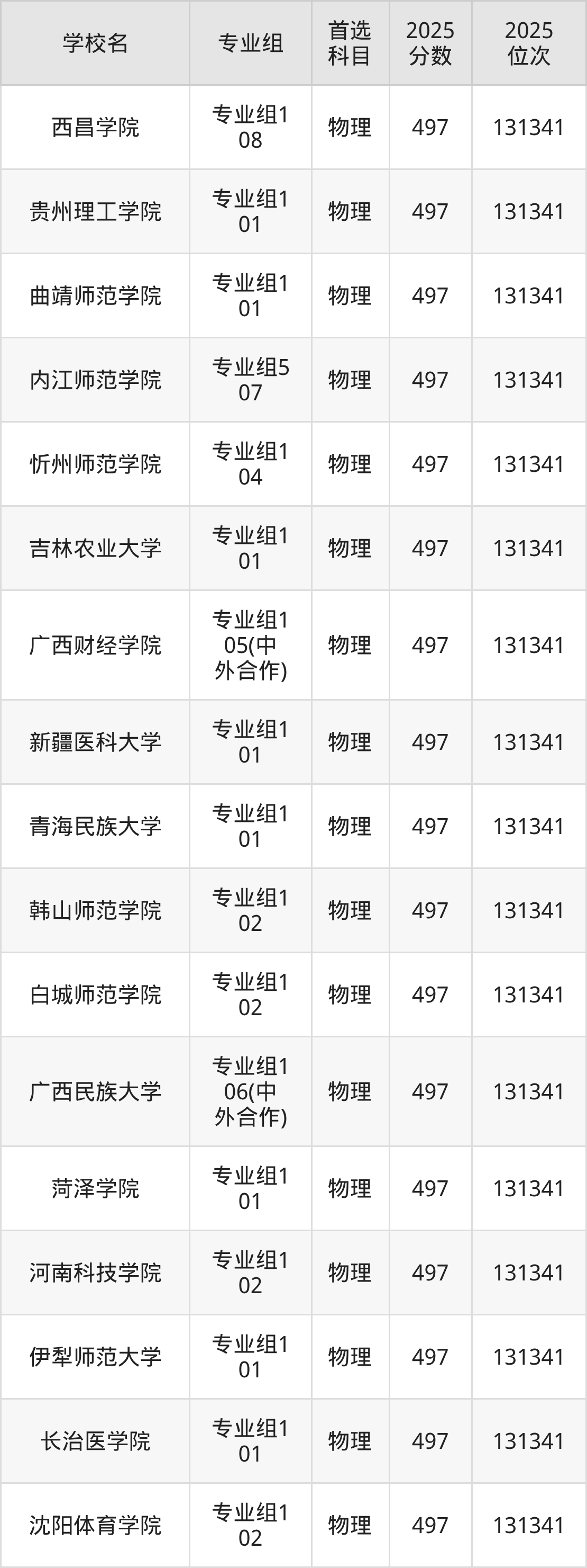 四川高考历史类497分对应的位次排名是49965名,物理类497分对应的位次排名是131341名,因此建议2026年位次排在这附近的同学考虑这些大学。
