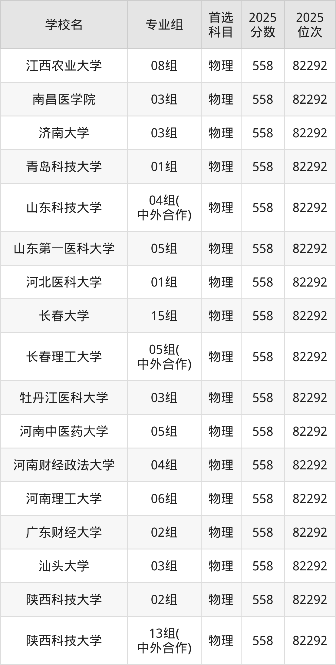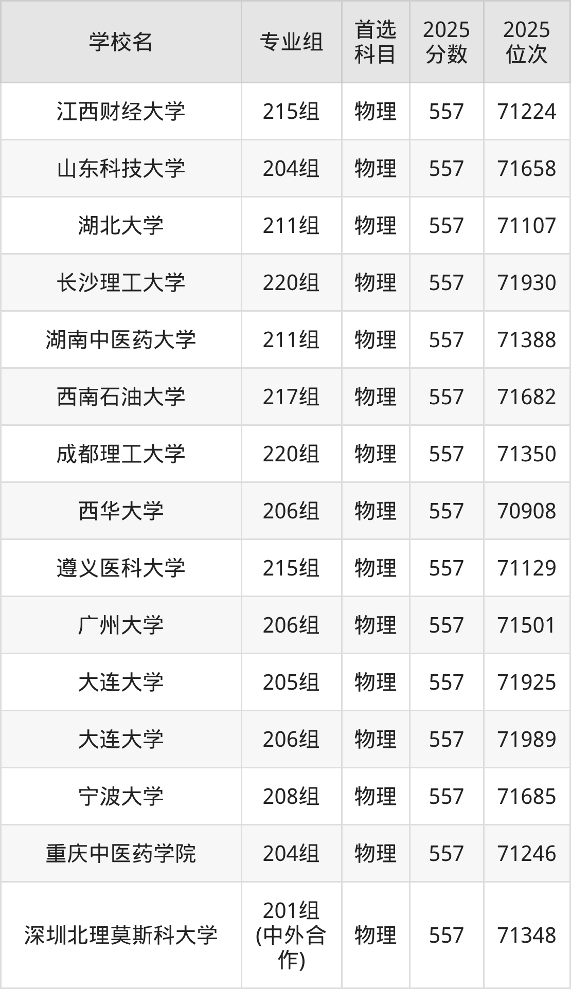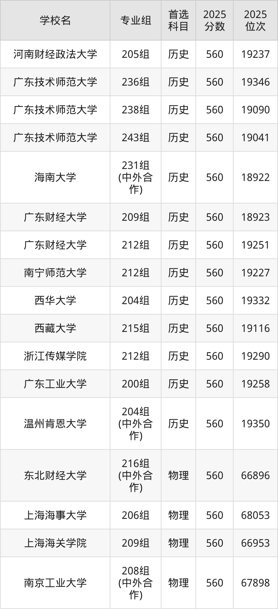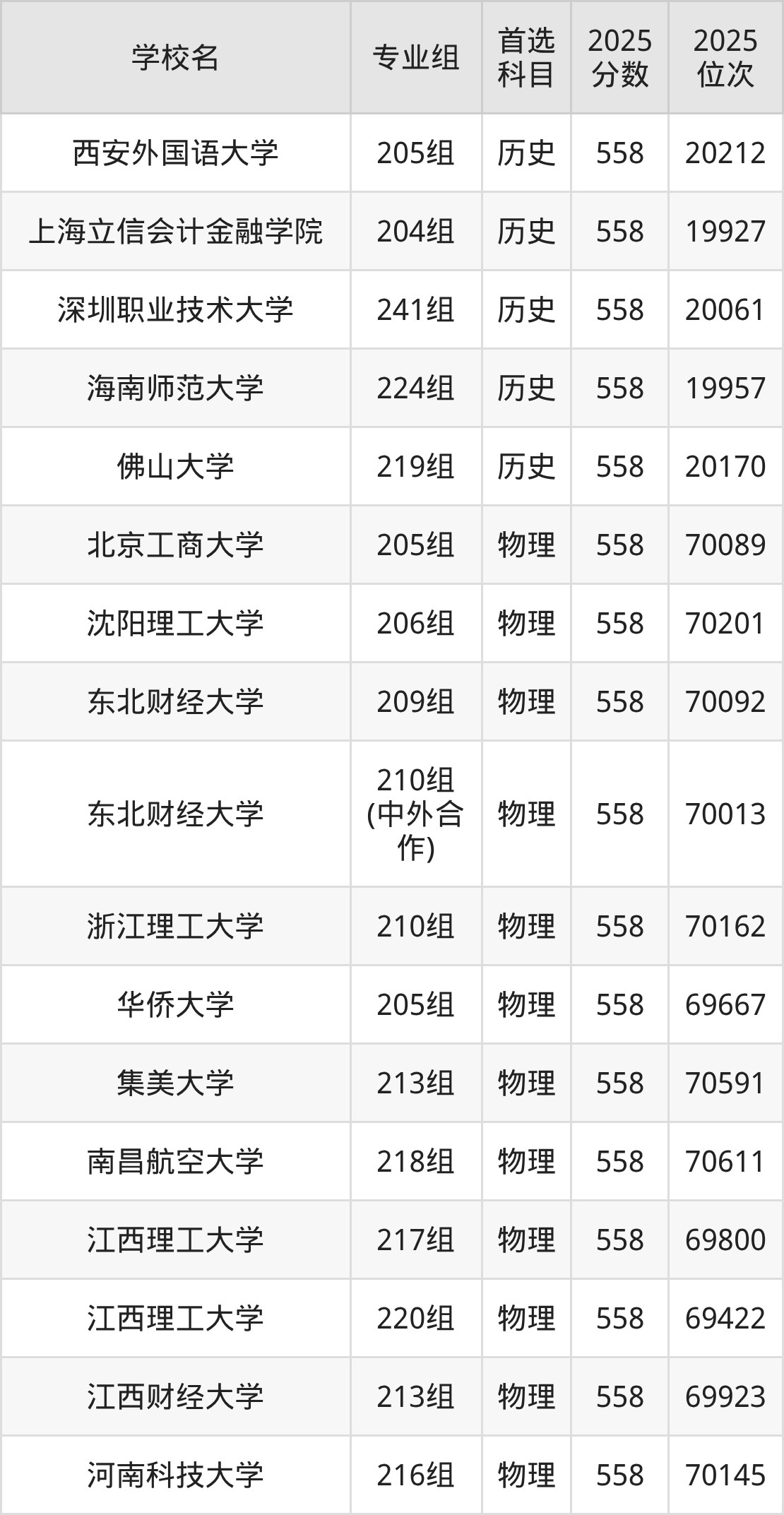 广东高考历史类559分对应的位次排名是19456名-19766名,物理类559分对应的位次排名是68146名-69392名,因此建议2026年位次排在这附近的同学考虑这些大学。