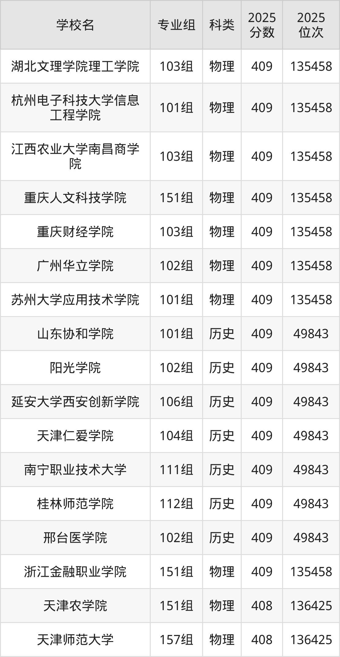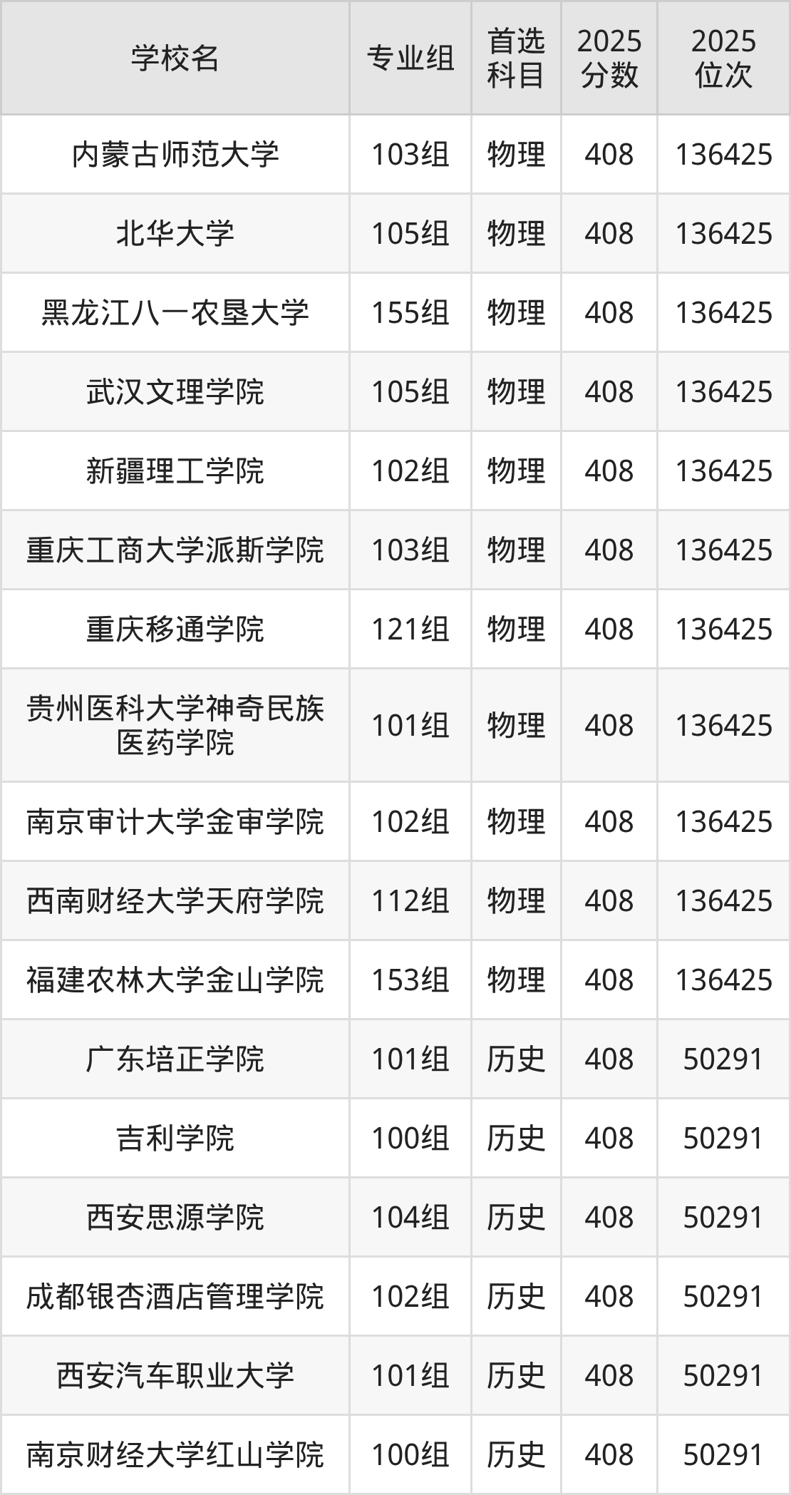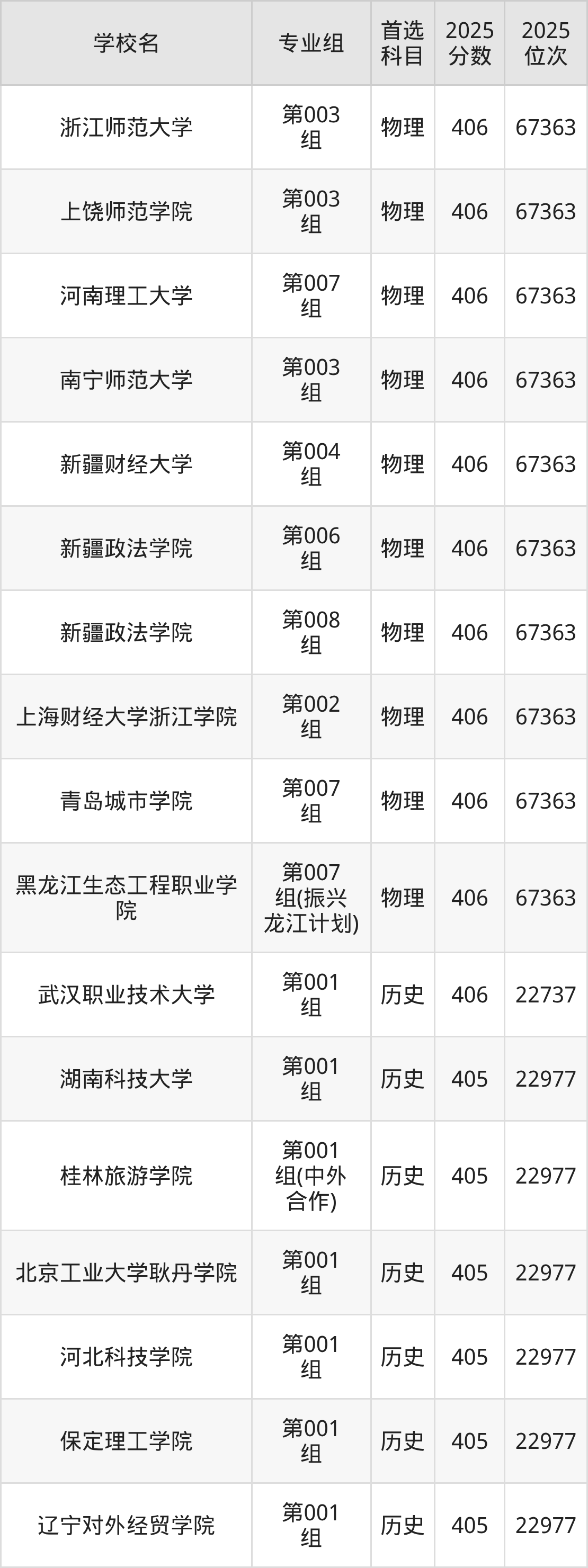广西高考物理类407分对应的位次排名是137474名,历史类407分对应的位次排名是50771名,因此建议2026年位次排在这附近的同学考虑这些大学。