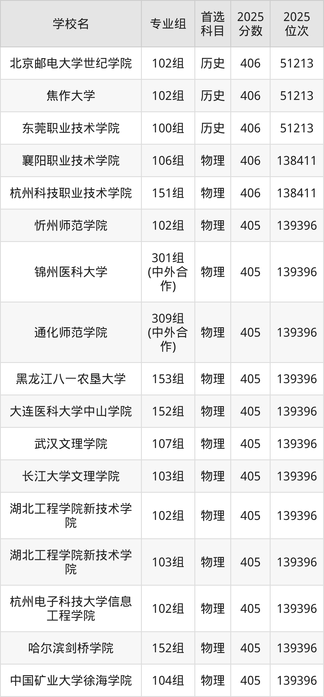 下面老师将以上文整理的其中两个省份为例,为大家具体展示407分左右能上的本科大学名单。