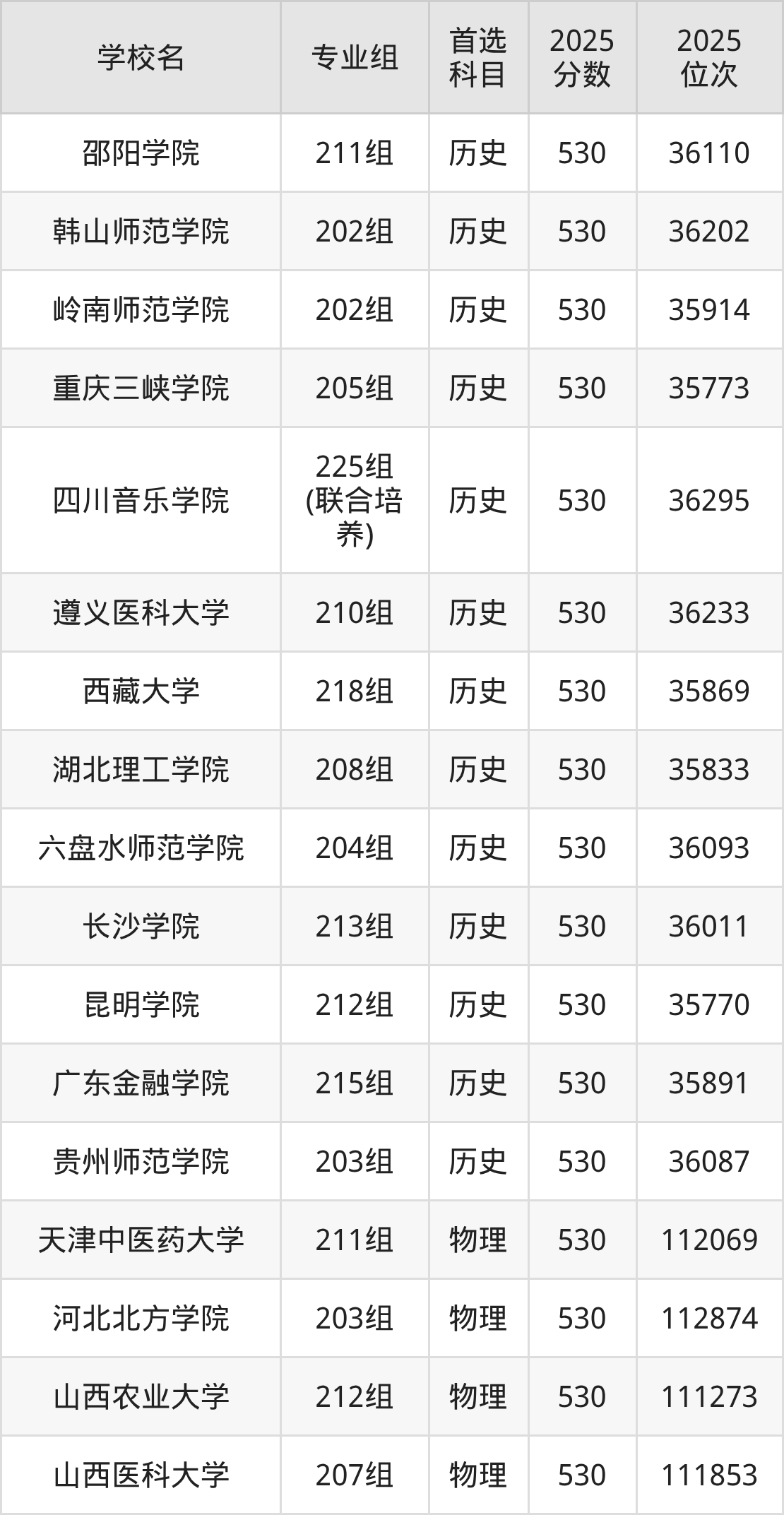 下面老师将以上文整理的其中两个省份为例,为大家具体展示532分左右能上的本科大学名单。