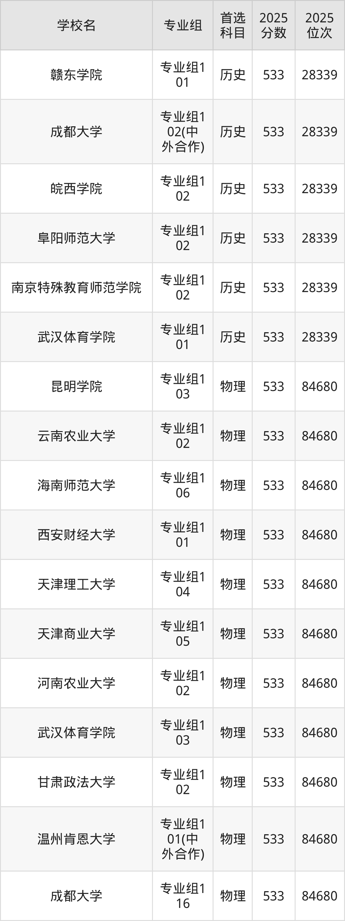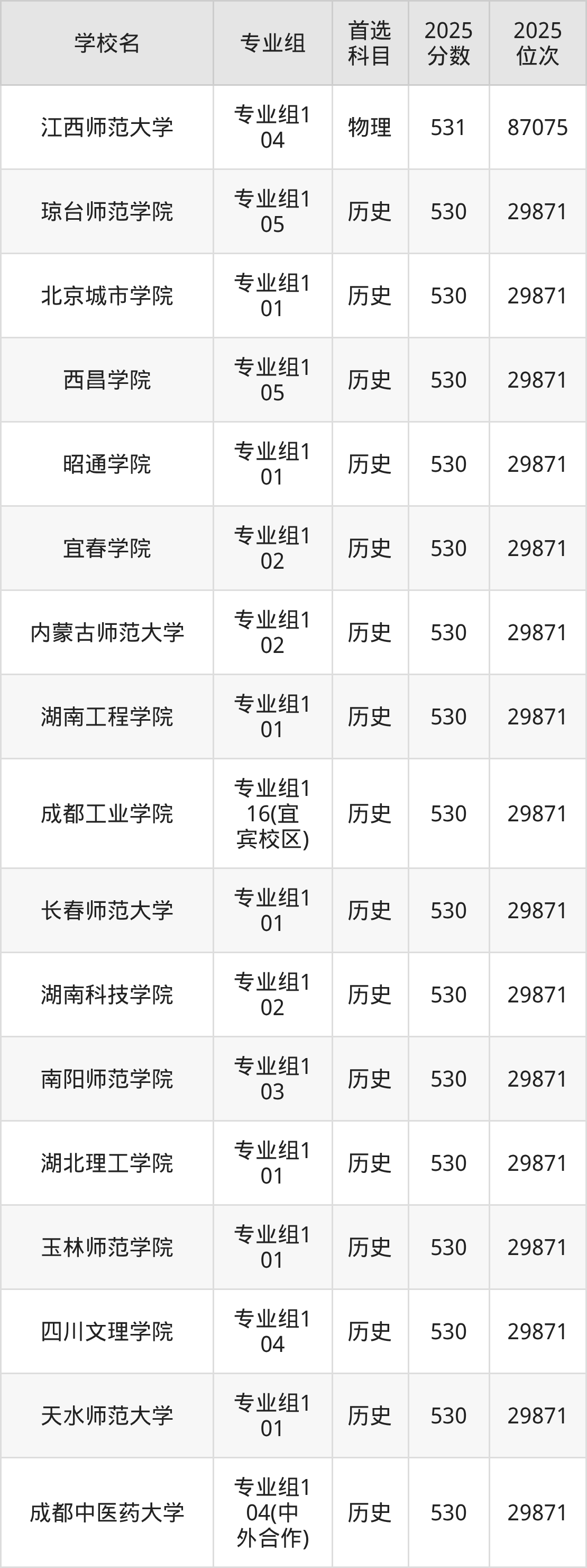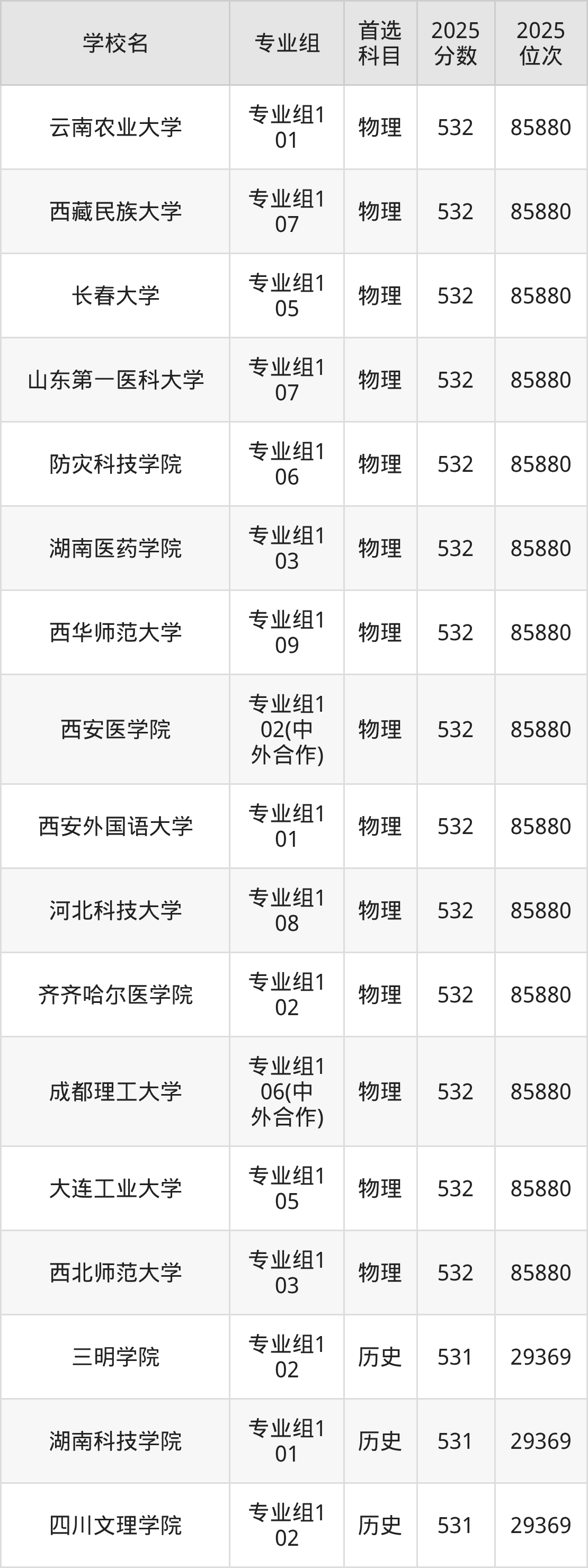 四川高考历史类532分对应的位次排名是28838名,物理类532分对应的位次排名是85880名,因此建议2026年位次排在这附近的同学考虑这些大学。