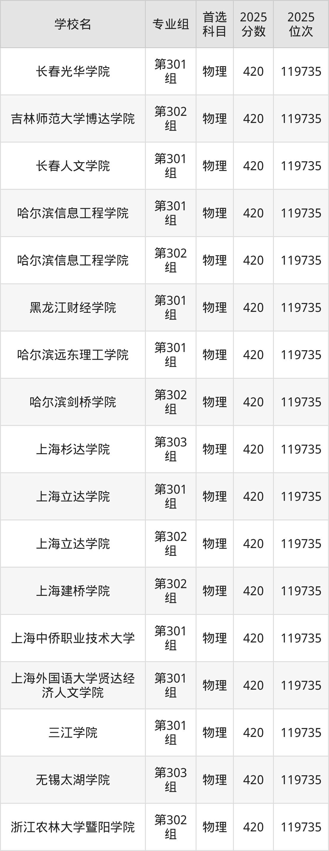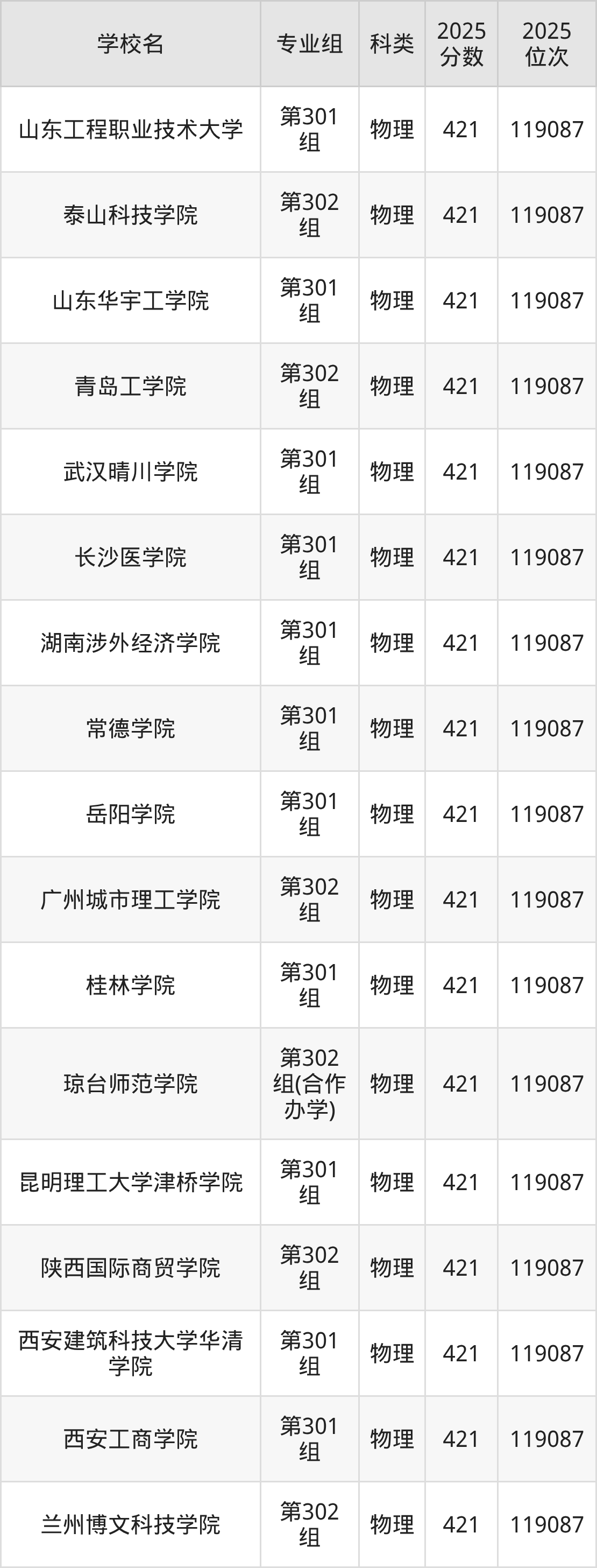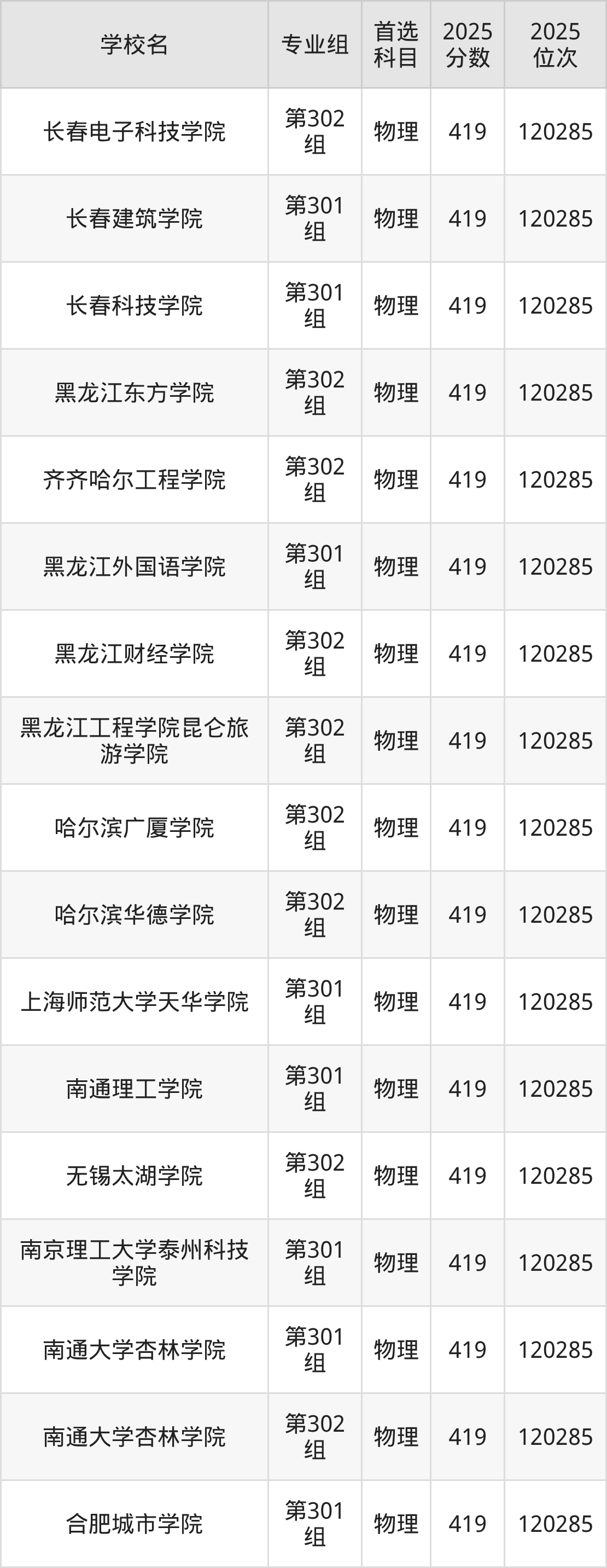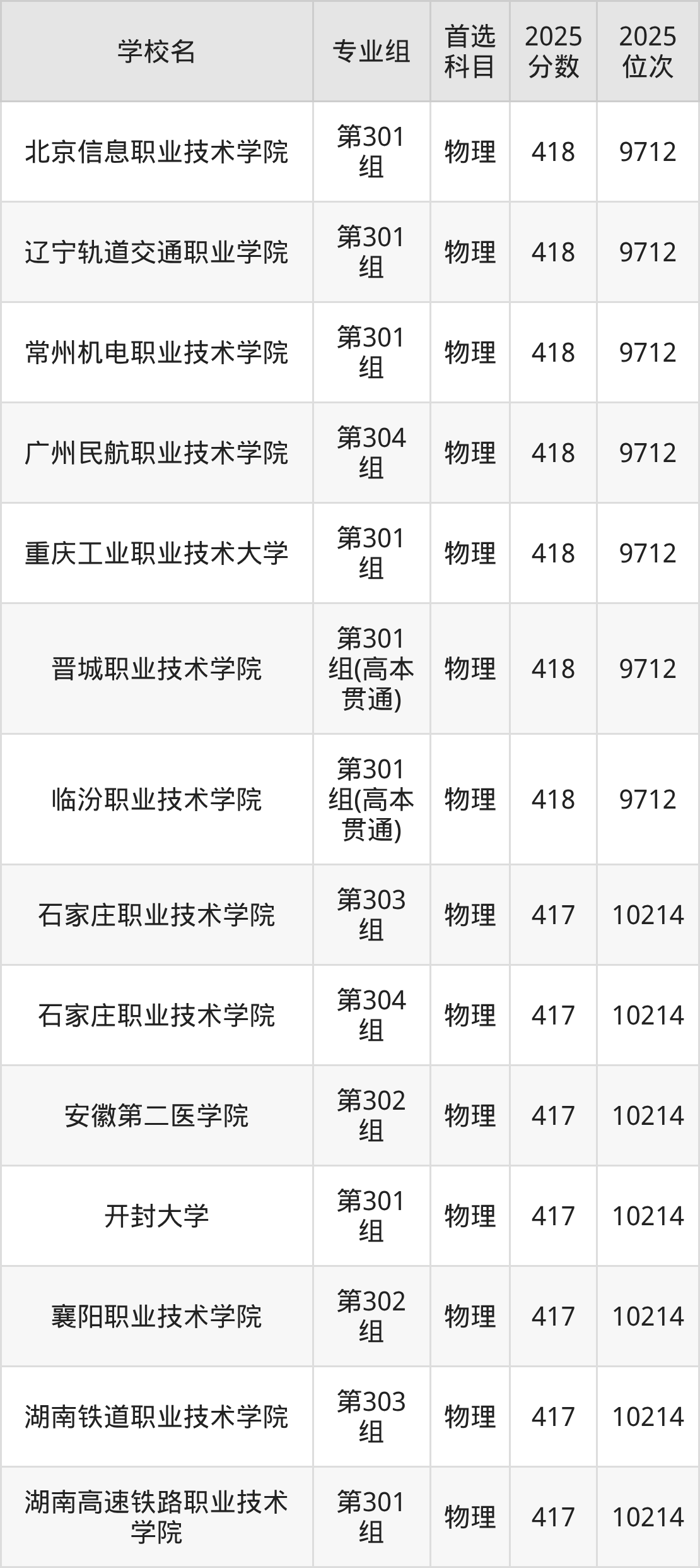 广西高考物理类419分对应的位次排名是125395名,历史类419分对应的位次排名是45324名,因此建议2026年位次排在这附近的同学考虑这些大学。