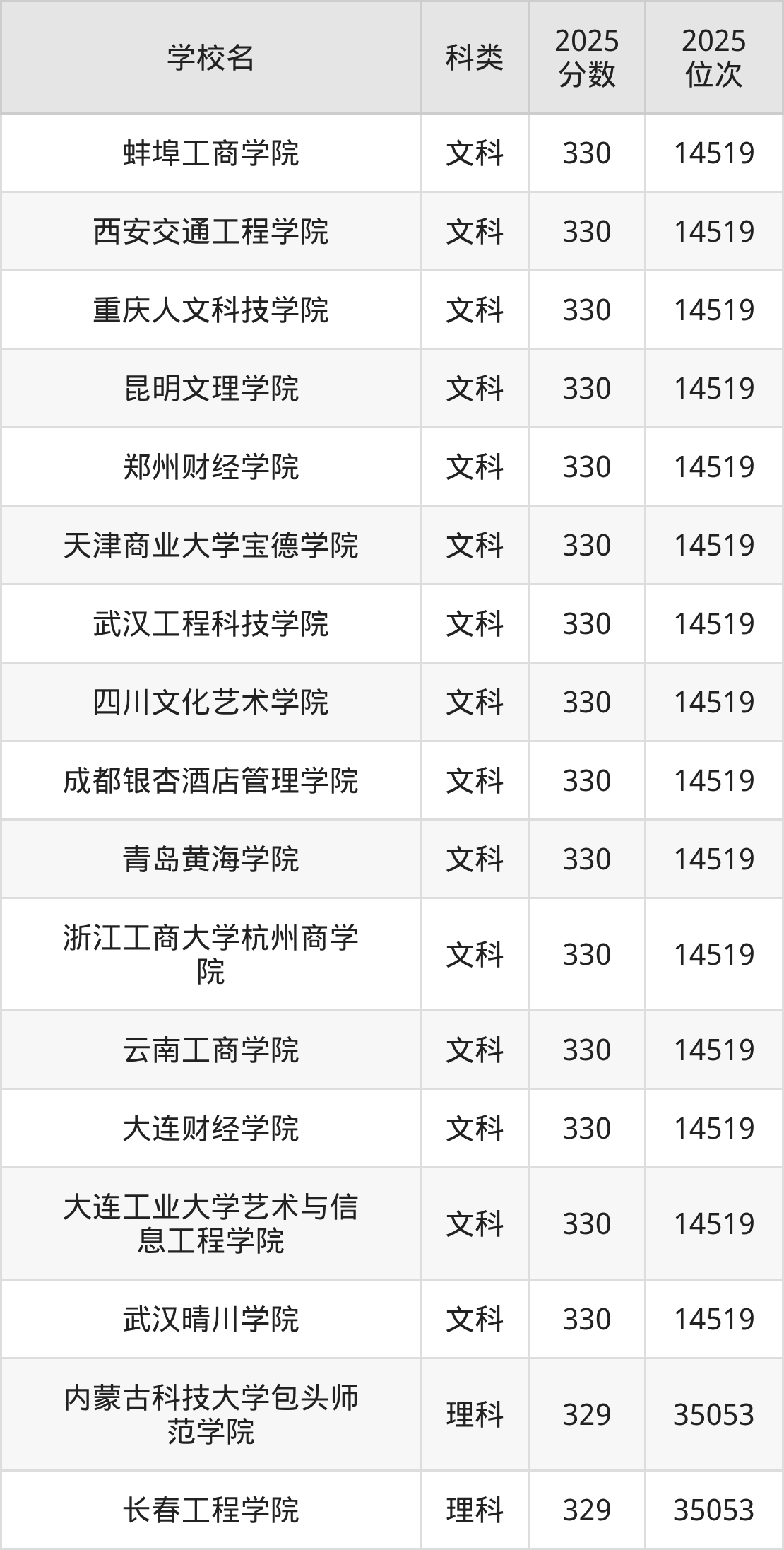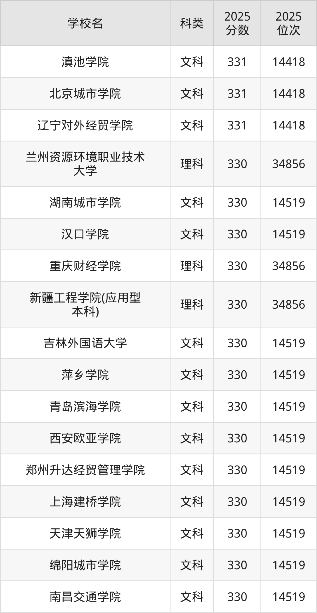 2026年高考331分可以报考的大学有江苏科技大学苏州理工学院、四川大学锦江学院、西安科技大学高新学院、吉林师范大学博达学院、长春财经学院等。331分能上的大学名单因省而异,下面为大家展示,2026届考生请查阅。