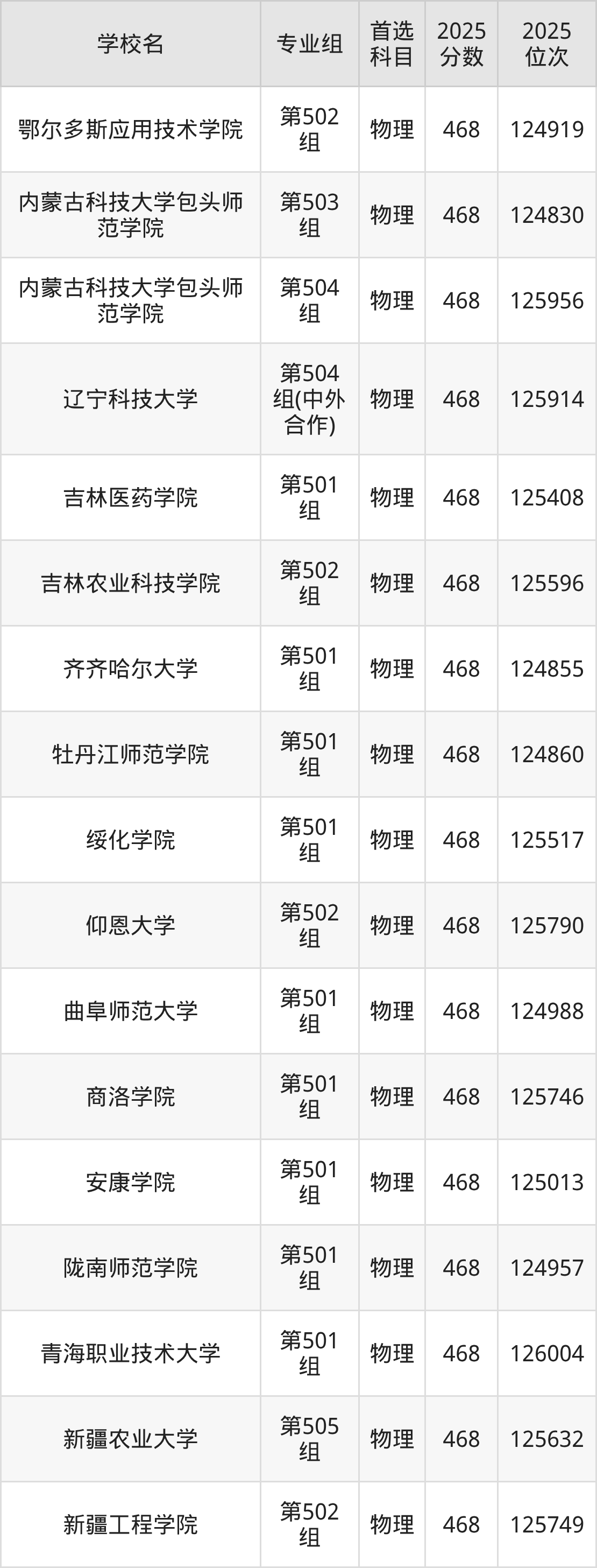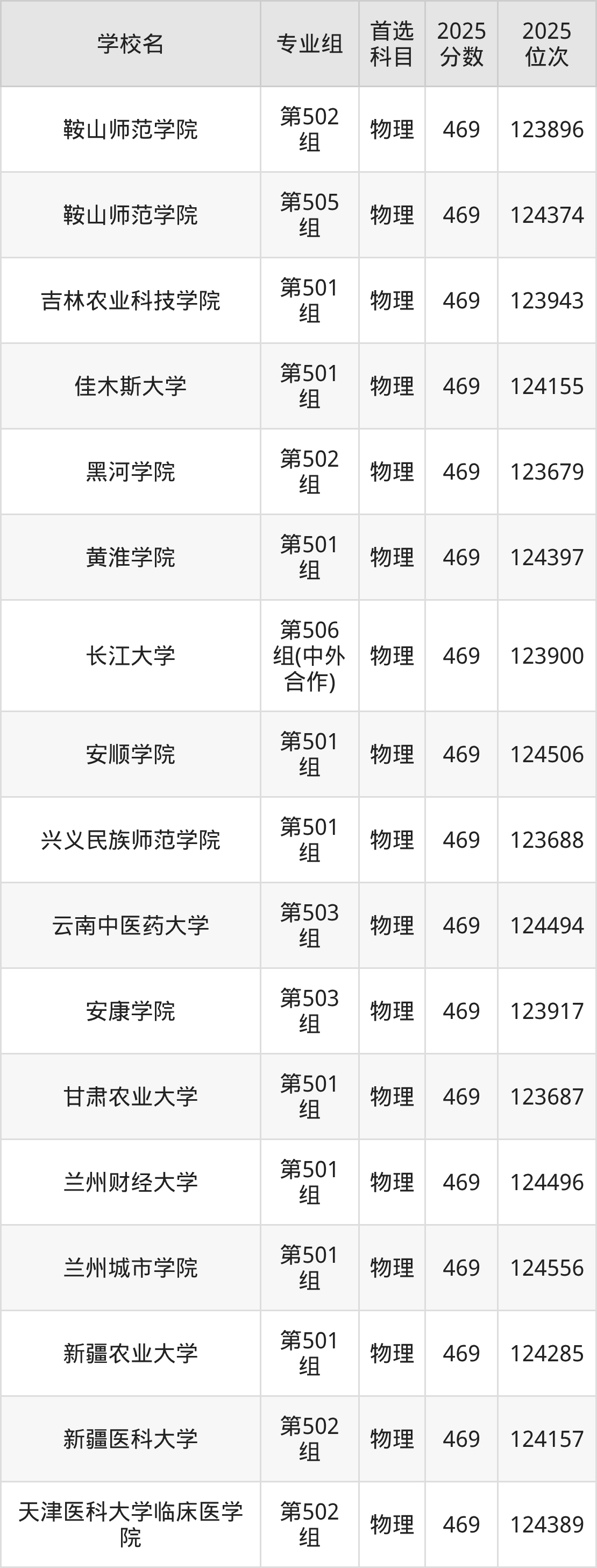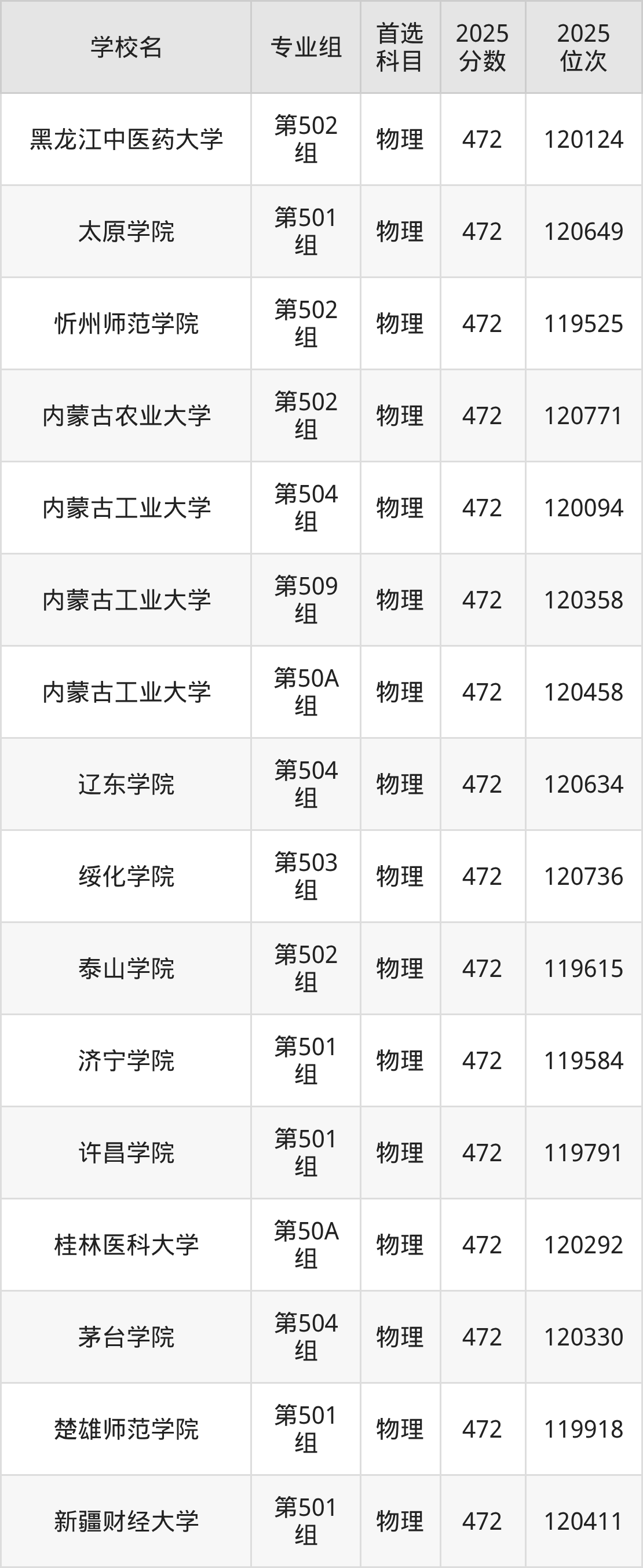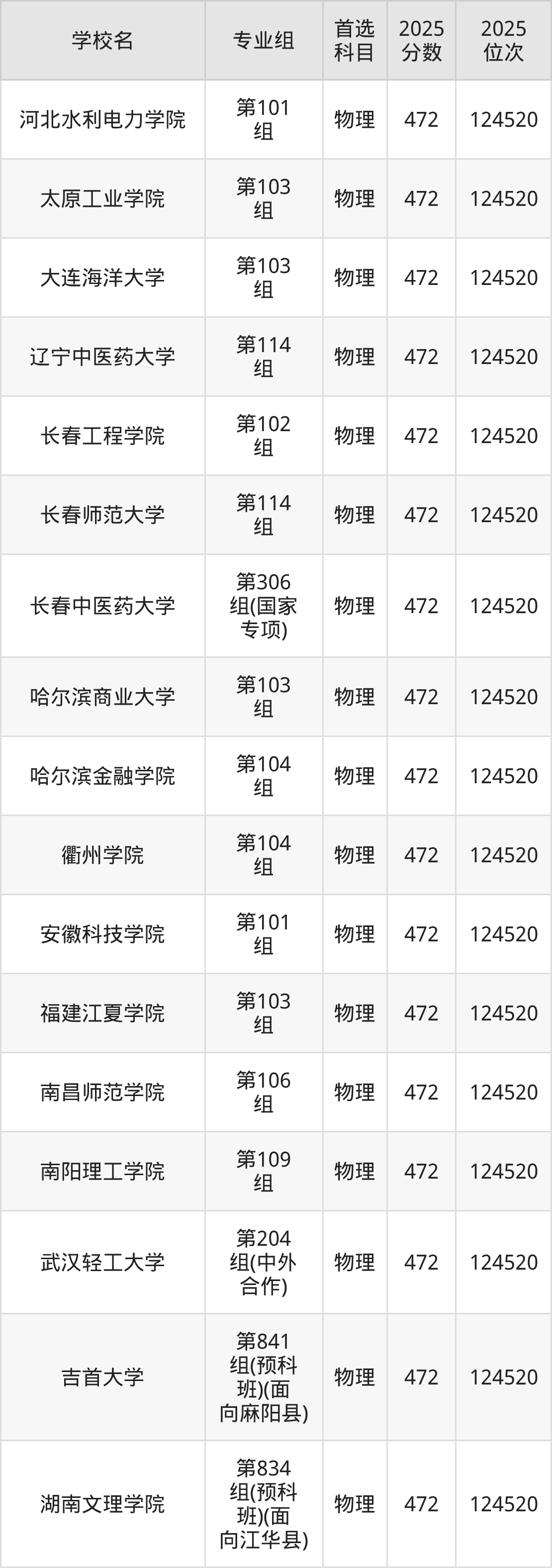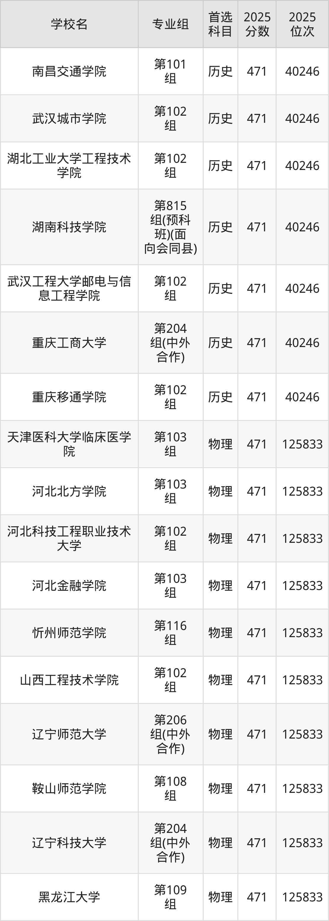 物理类470分可以冲的大学:华北科技学院472分、河北水利电力学院472分、太原工业学院472分、大连海洋大学472分等;较稳妥的大学:天津农学院469分、张家口学院469分、山西医科大学469分、山西农业大学469分等。