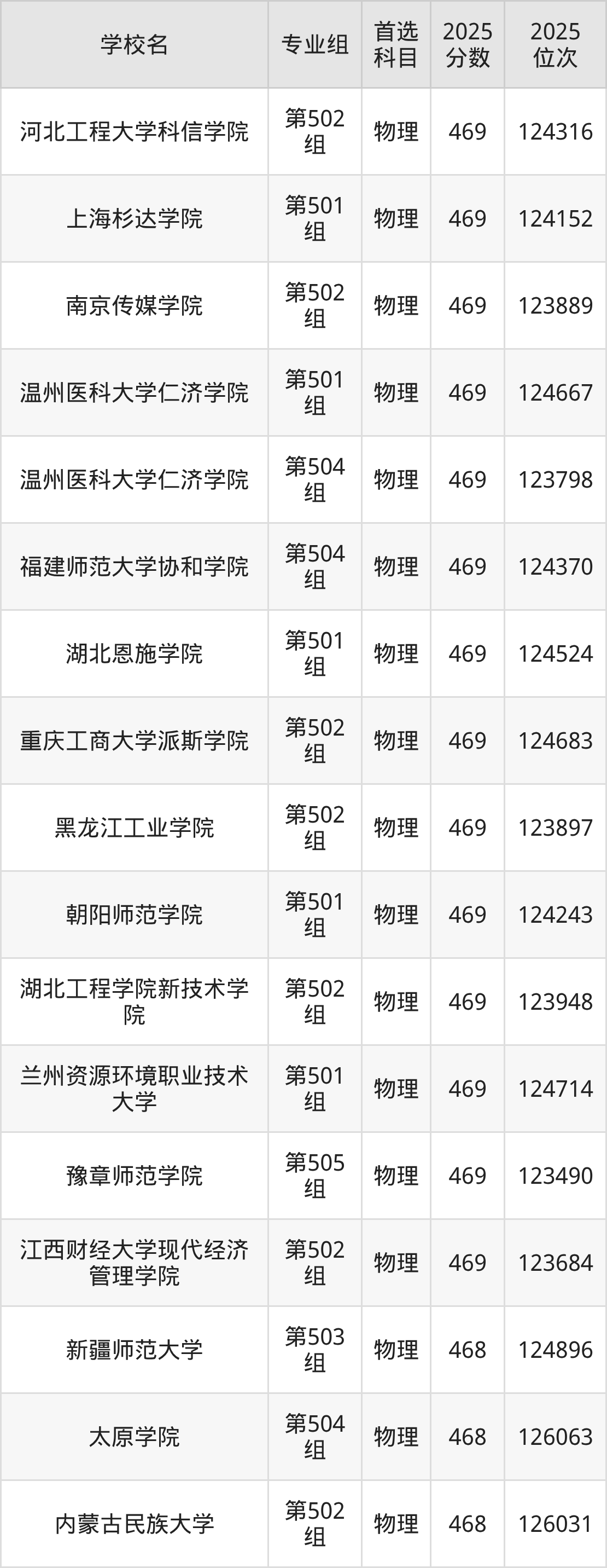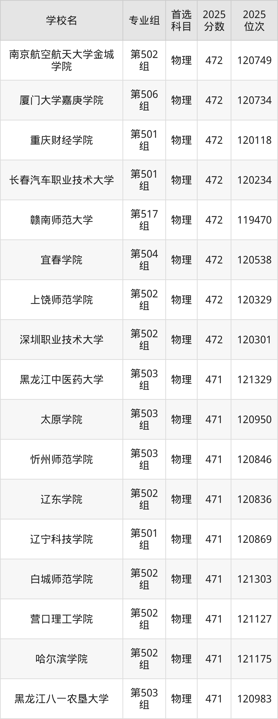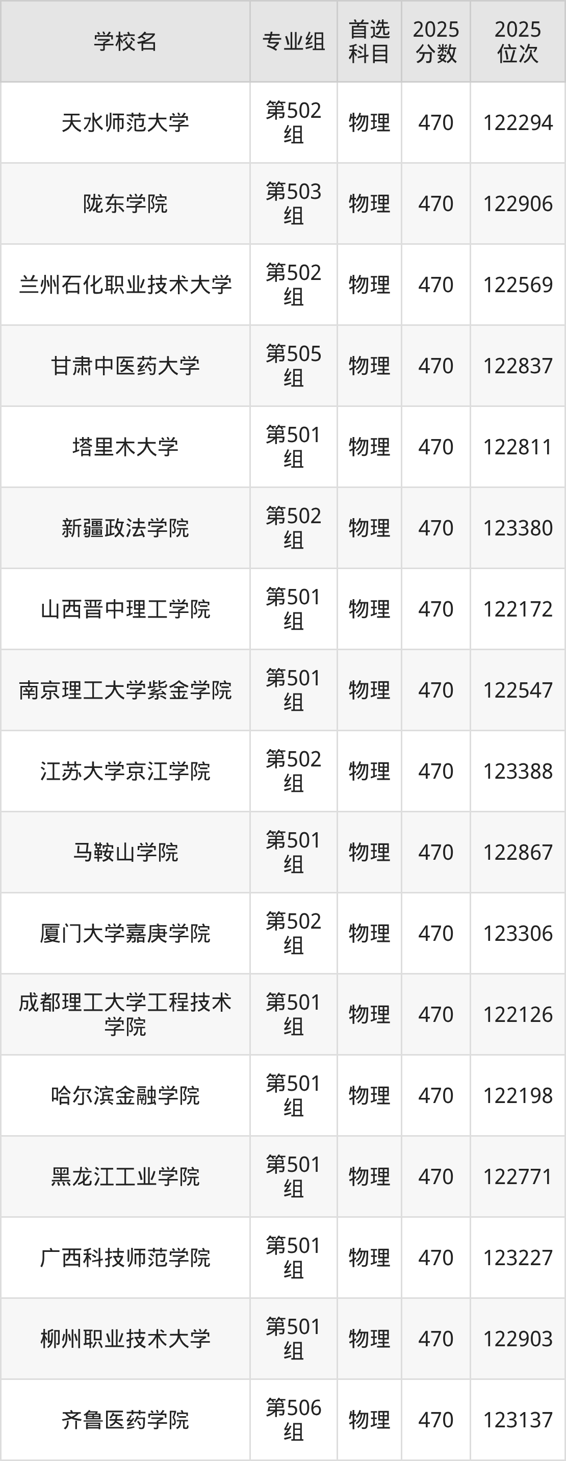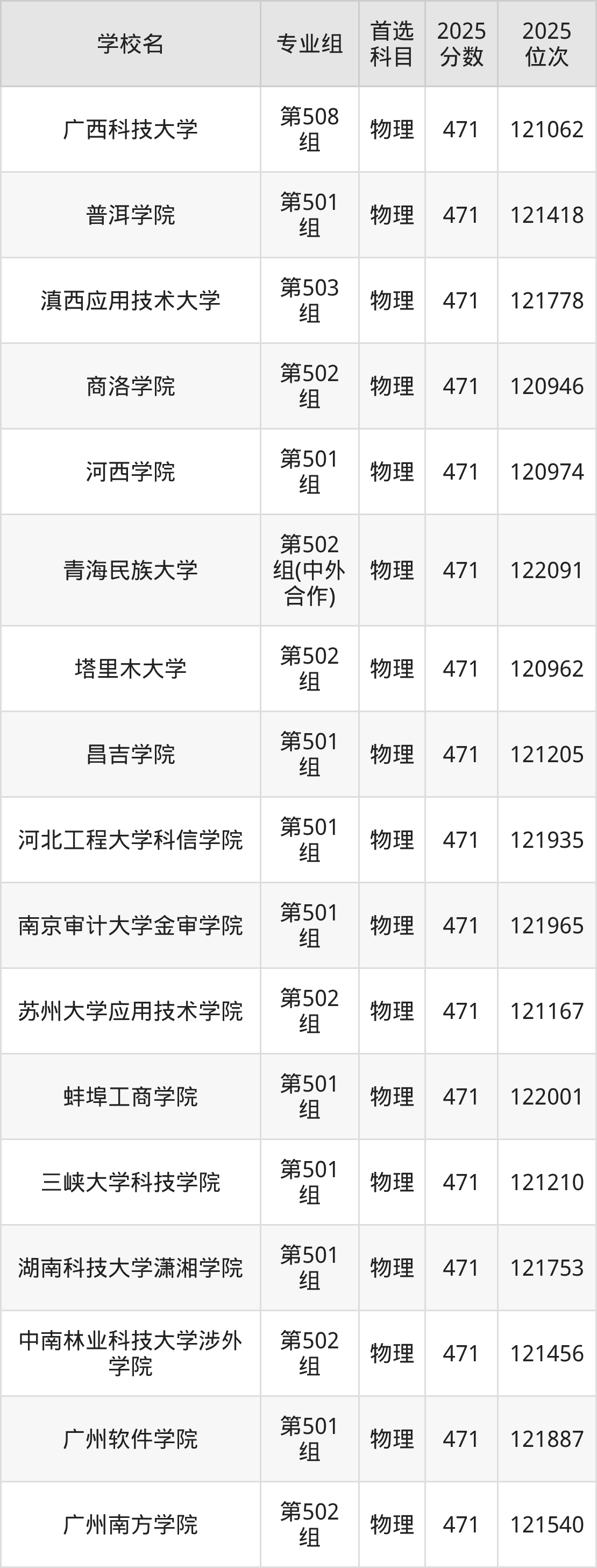 江西物理类470分对应的位次排名是122126名-123423名,因此建议2026年位次排在这附近的考生考虑这些大学。