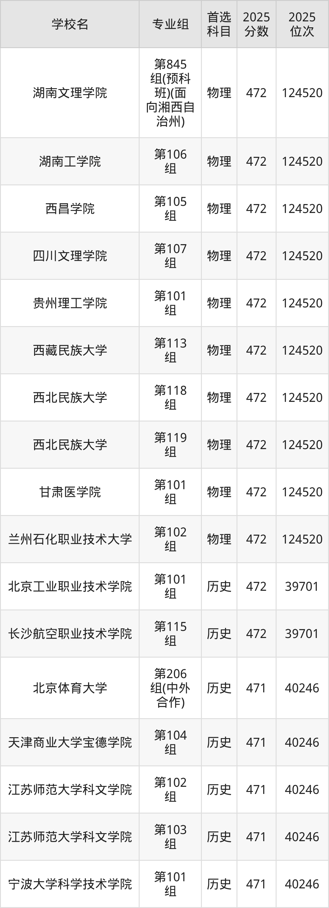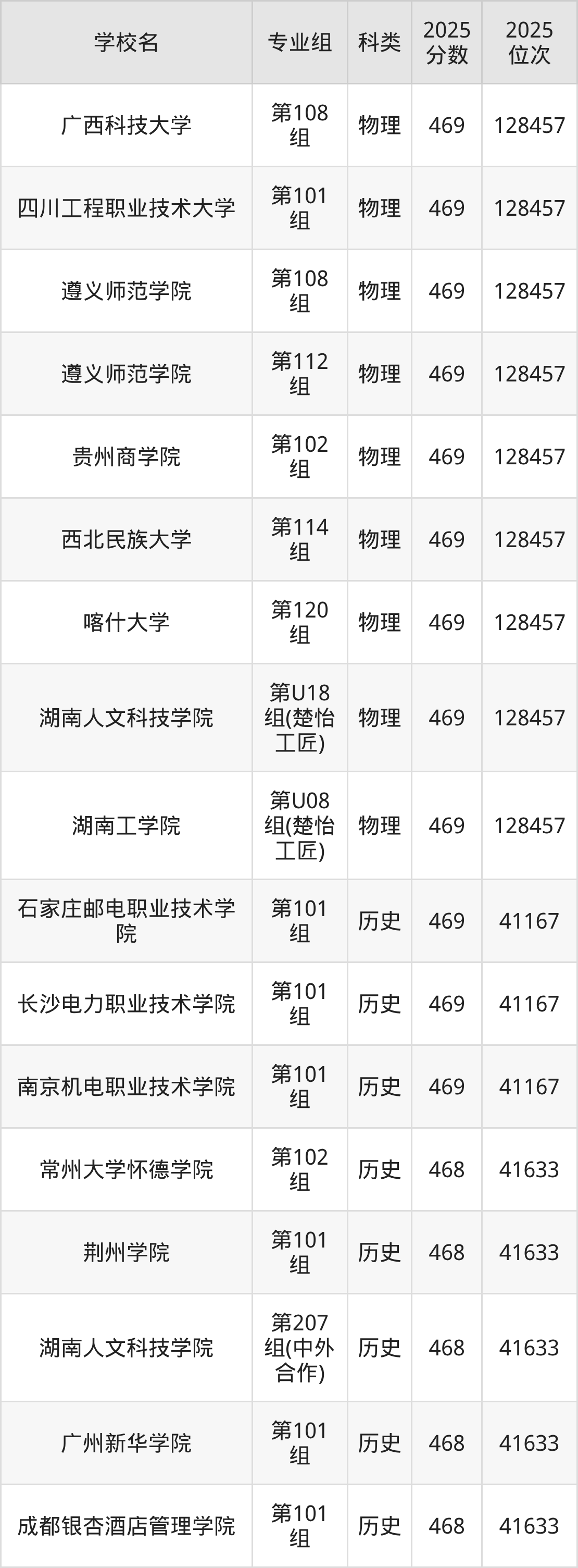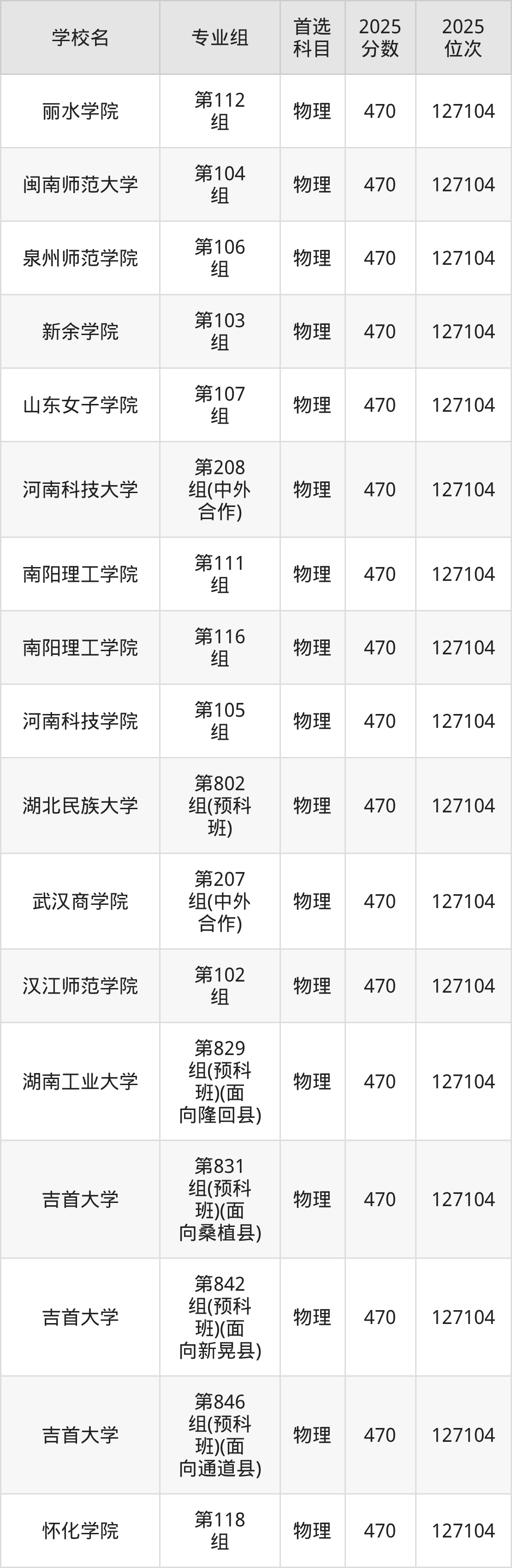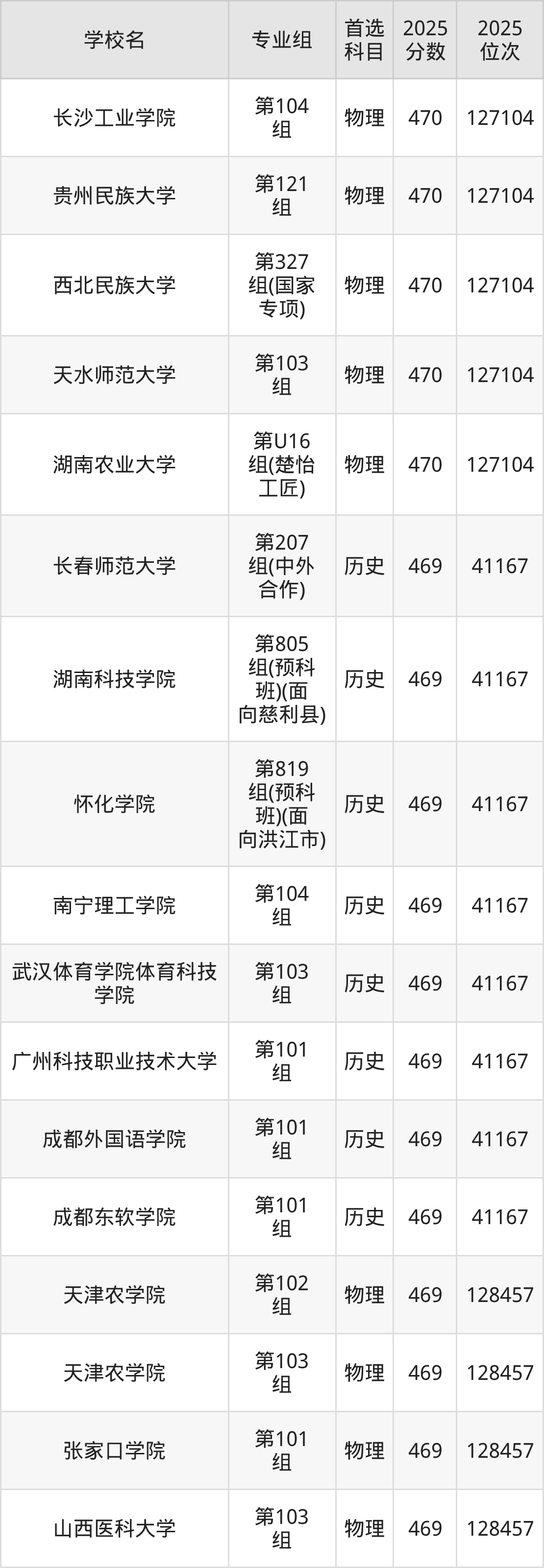 湖南高考历史类470分对应的位次排名是40679名,物理类470分对应的位次排名是127104名,因此建议2026年位次排在这附近的同学考虑这些大学。
