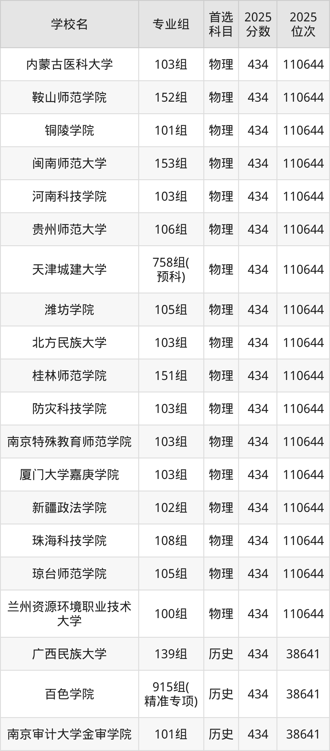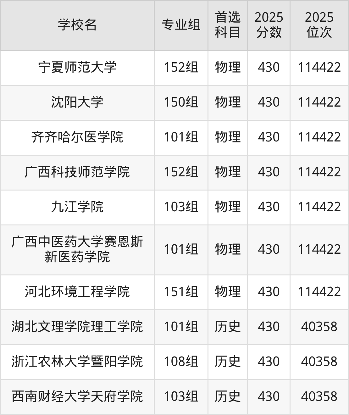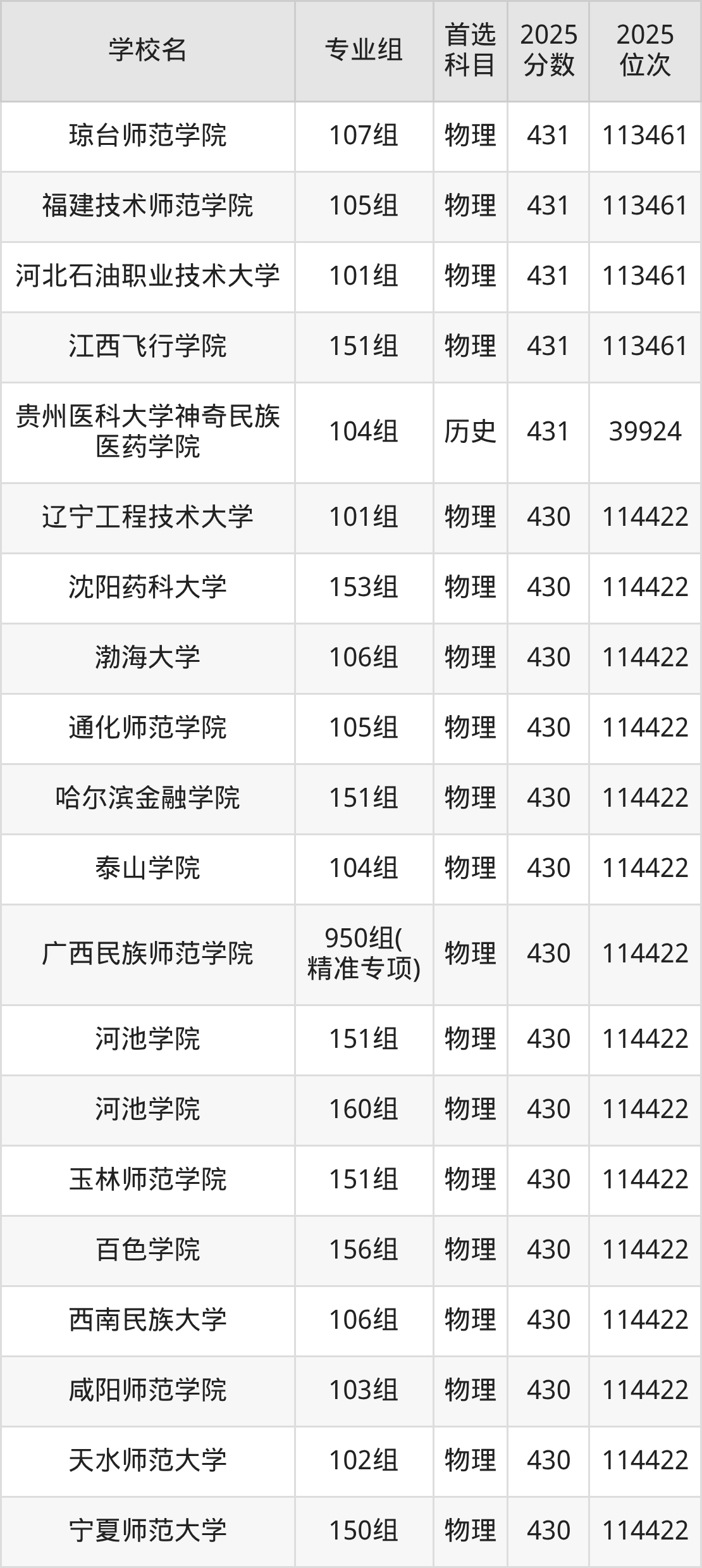 广西高考物理类432分对应的位次排名是112513名,历史类432分对应的位次排名是39499名,因此建议2026年位次排在这附近的同学考虑这些大学。