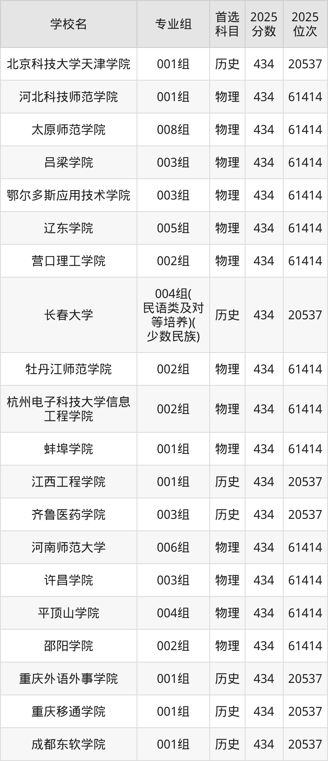 下面老师将以上文整理的其中两个省份为例,为大家具体展示432分左右能上的本科大学名单。