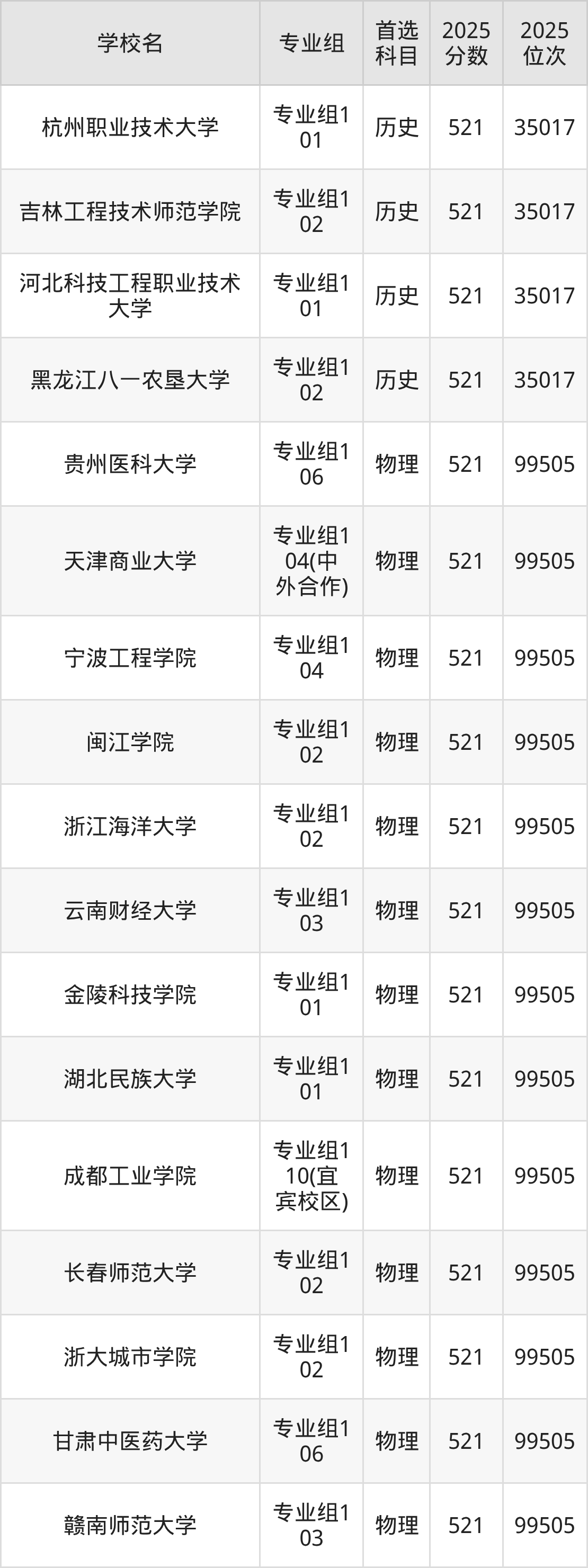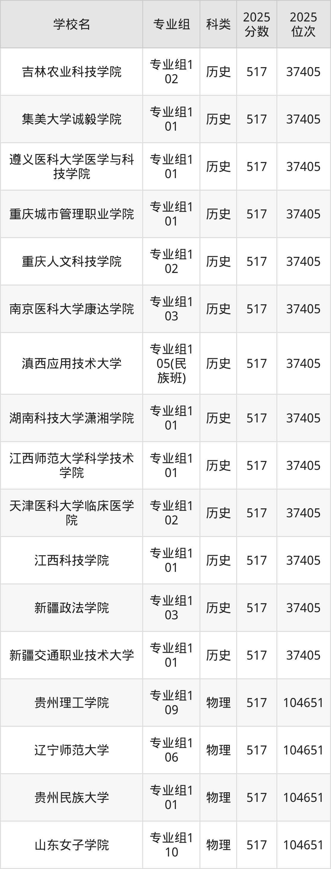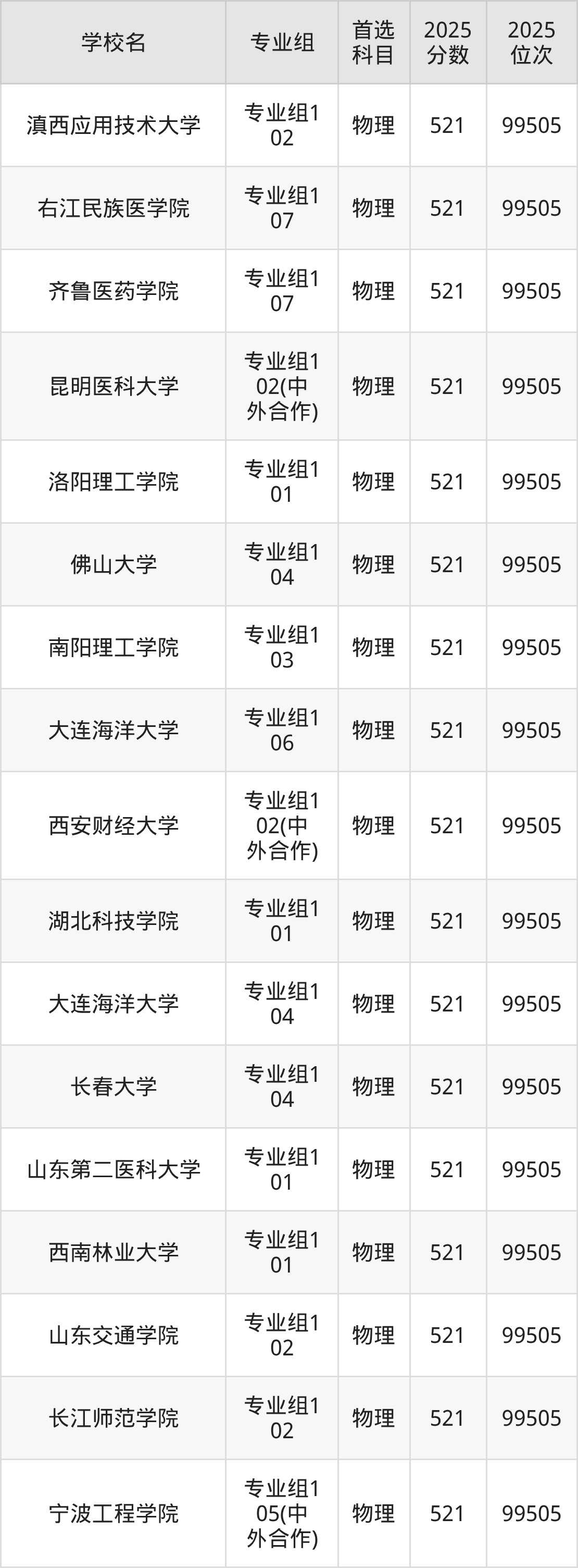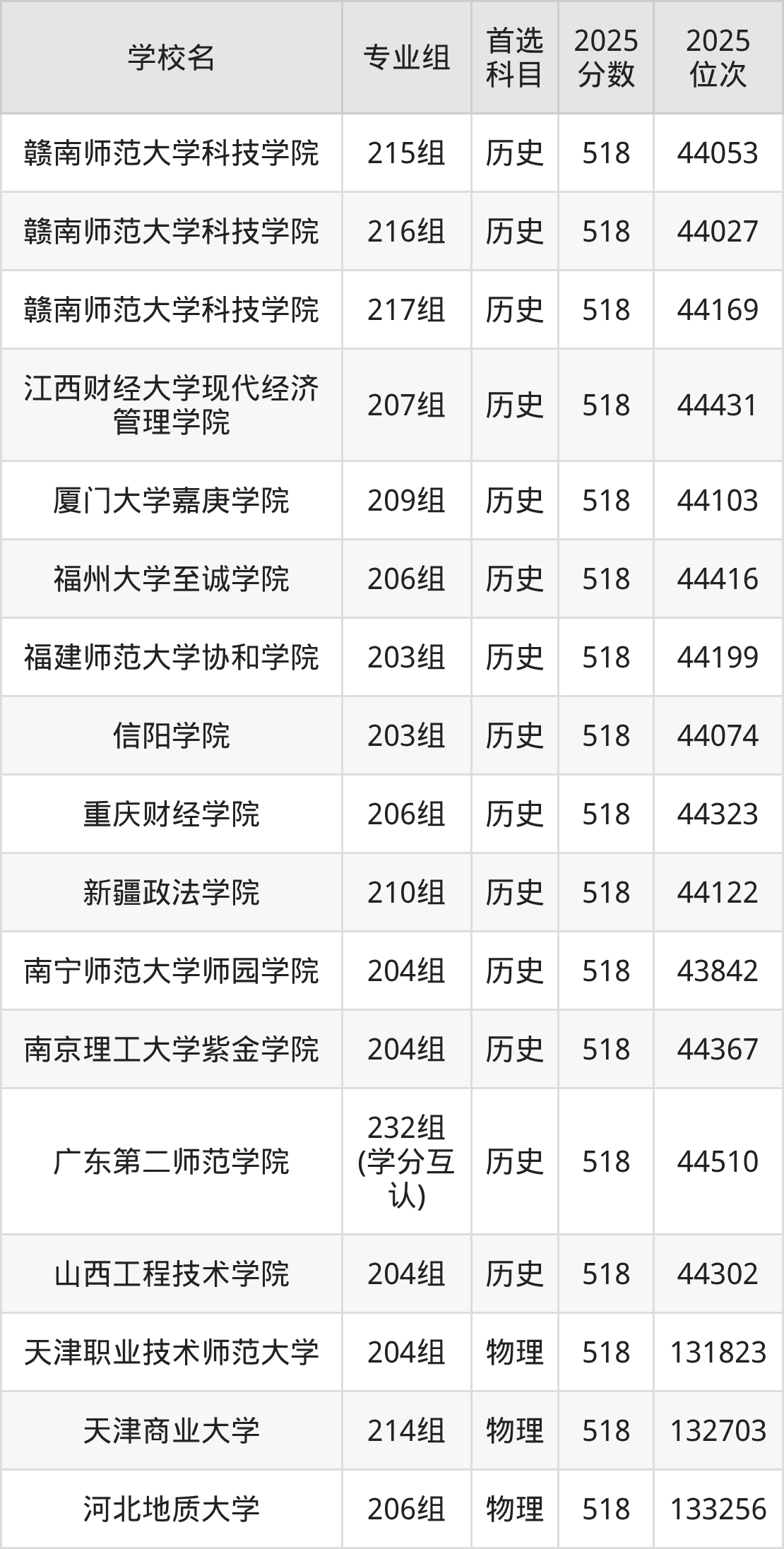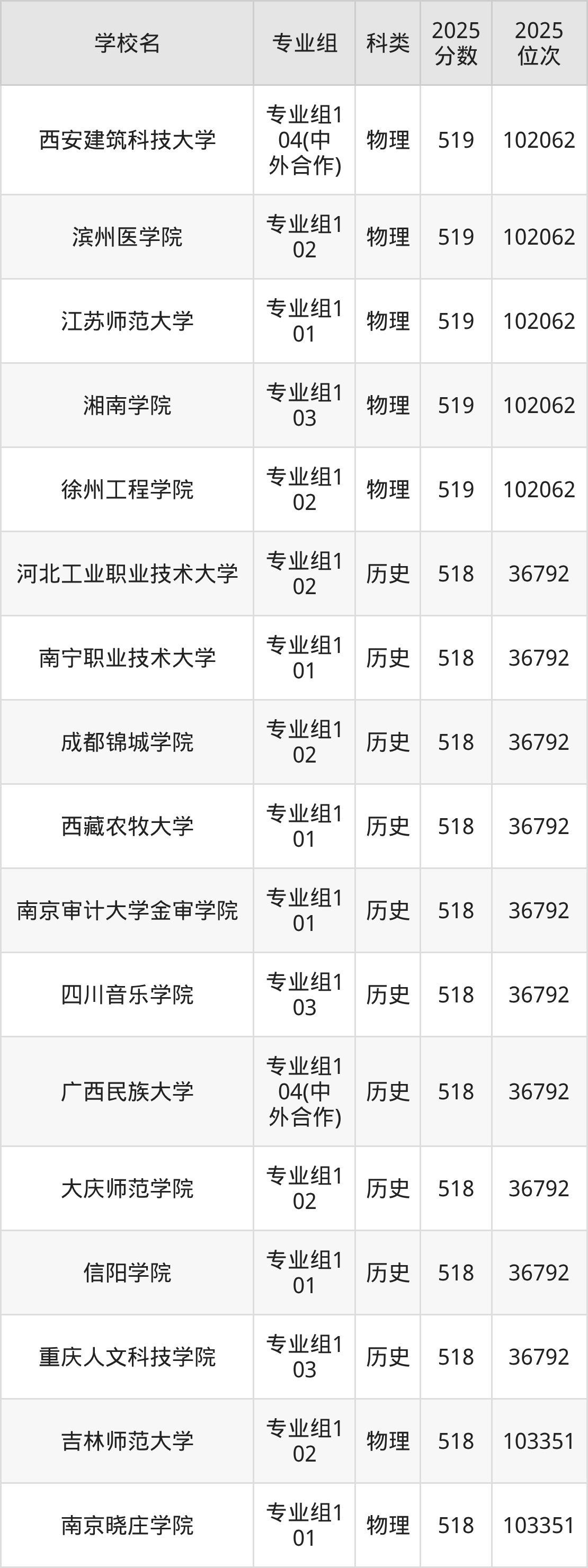广东高考物理类519分对应的位次排名是130054名-131754名,历史类519分对应的位次排名是43139名-43827名,因此建议2026年位次排在这附近的同学考虑这些大学。