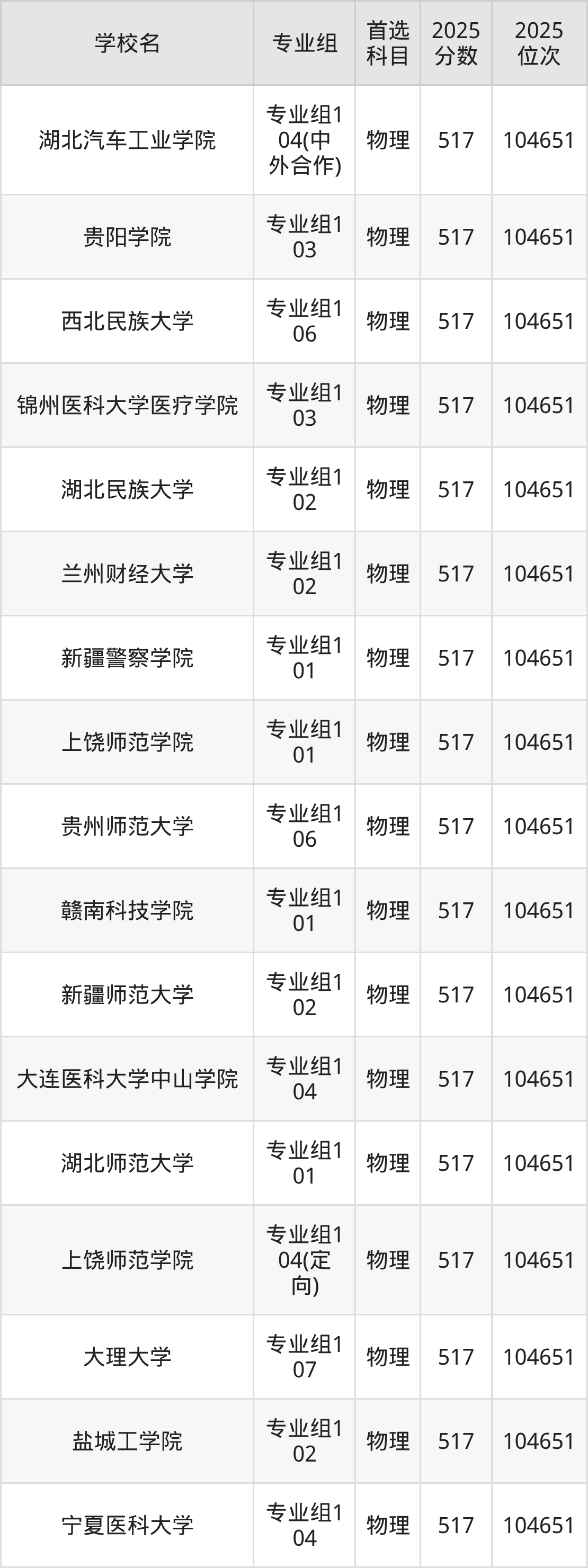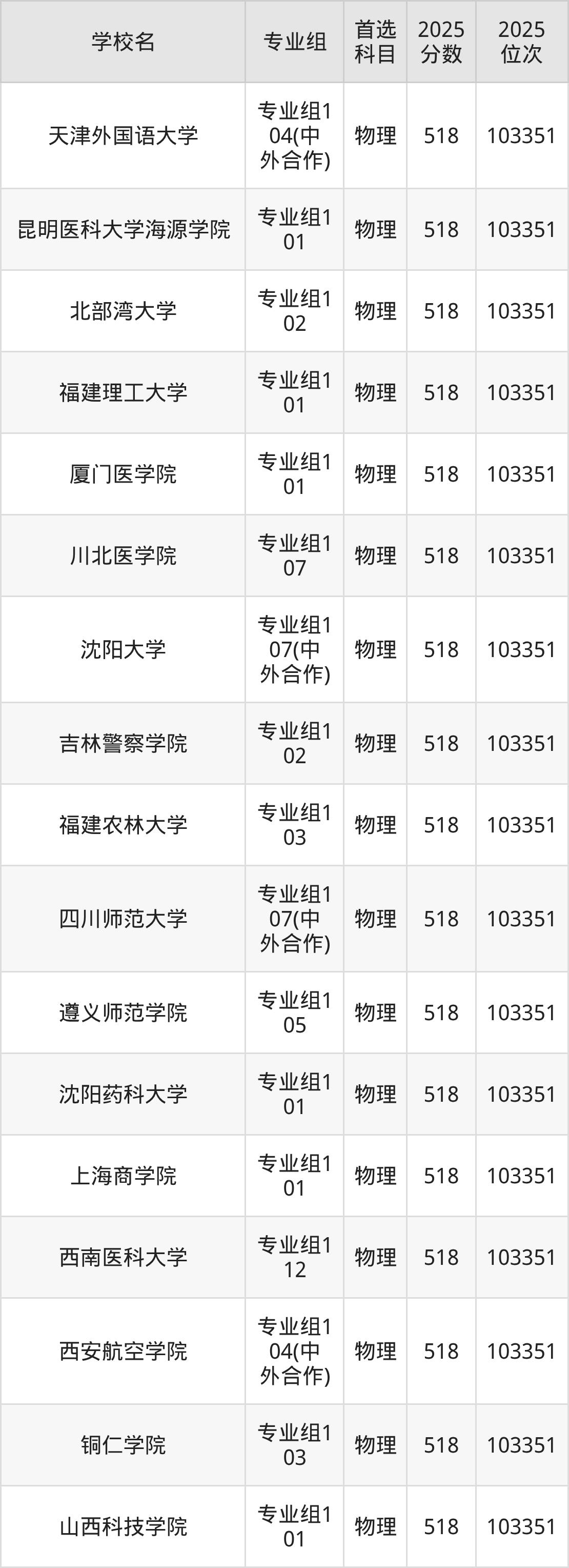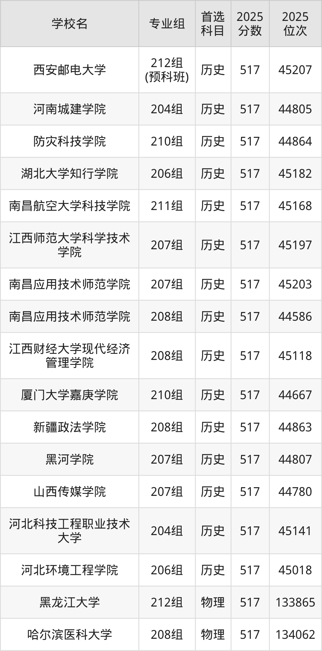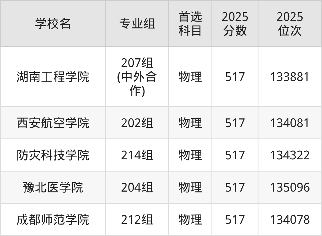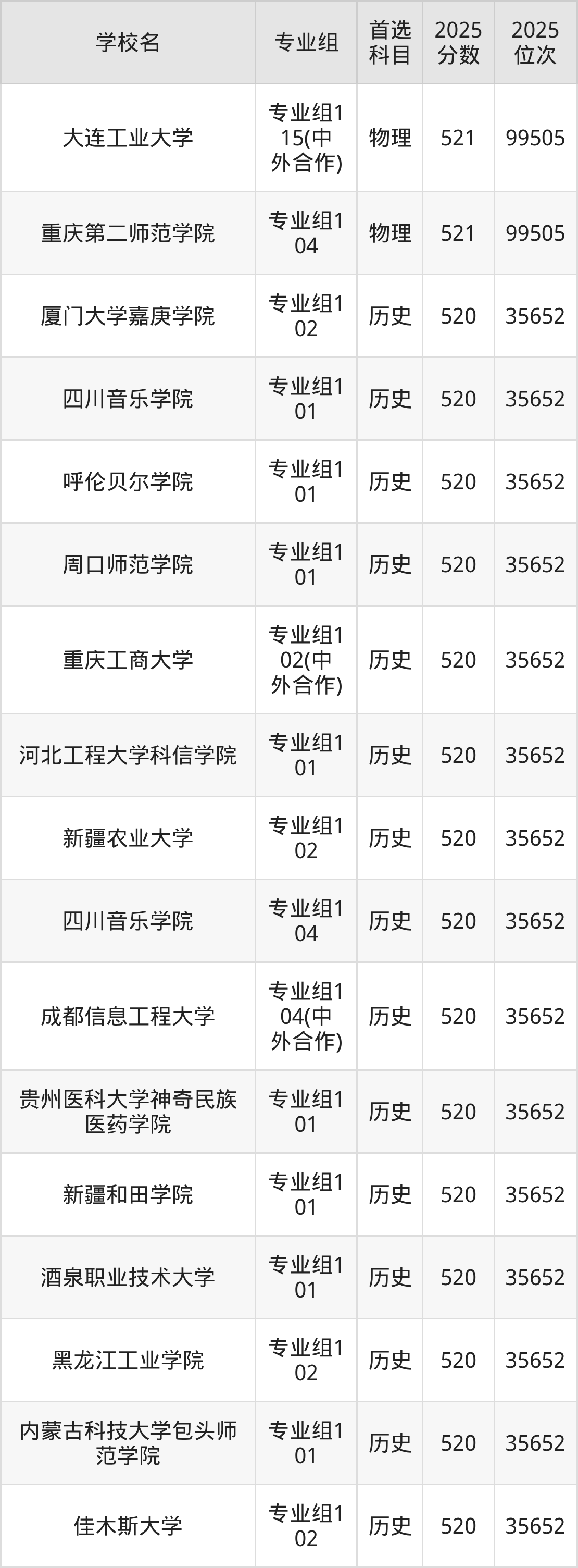 广东高考物理类519分对应的位次排名是130054名-131754名,历史类519分对应的位次排名是43139名-43827名,因此建议2026年位次排在这附近的同学考虑这些大学。