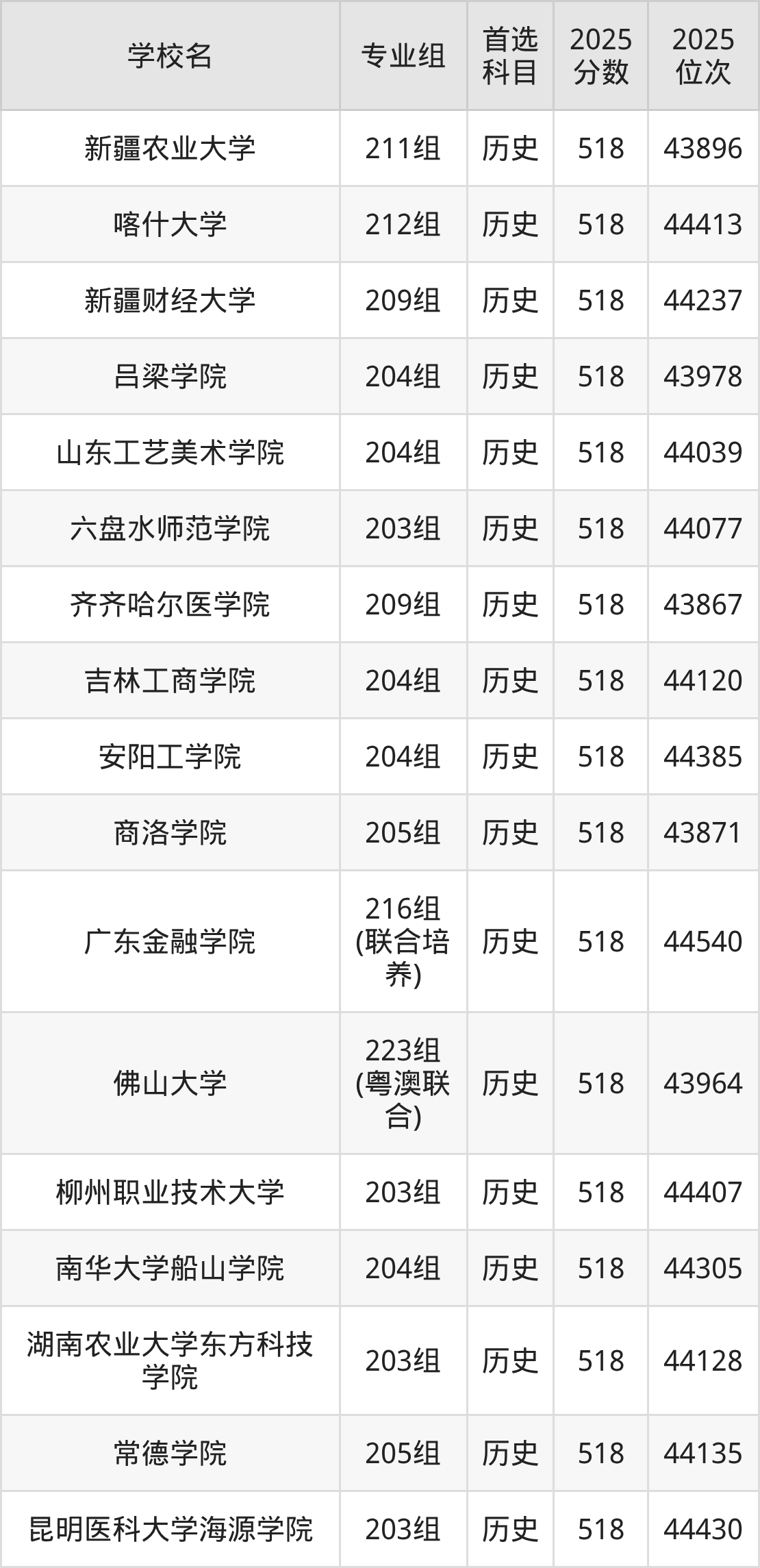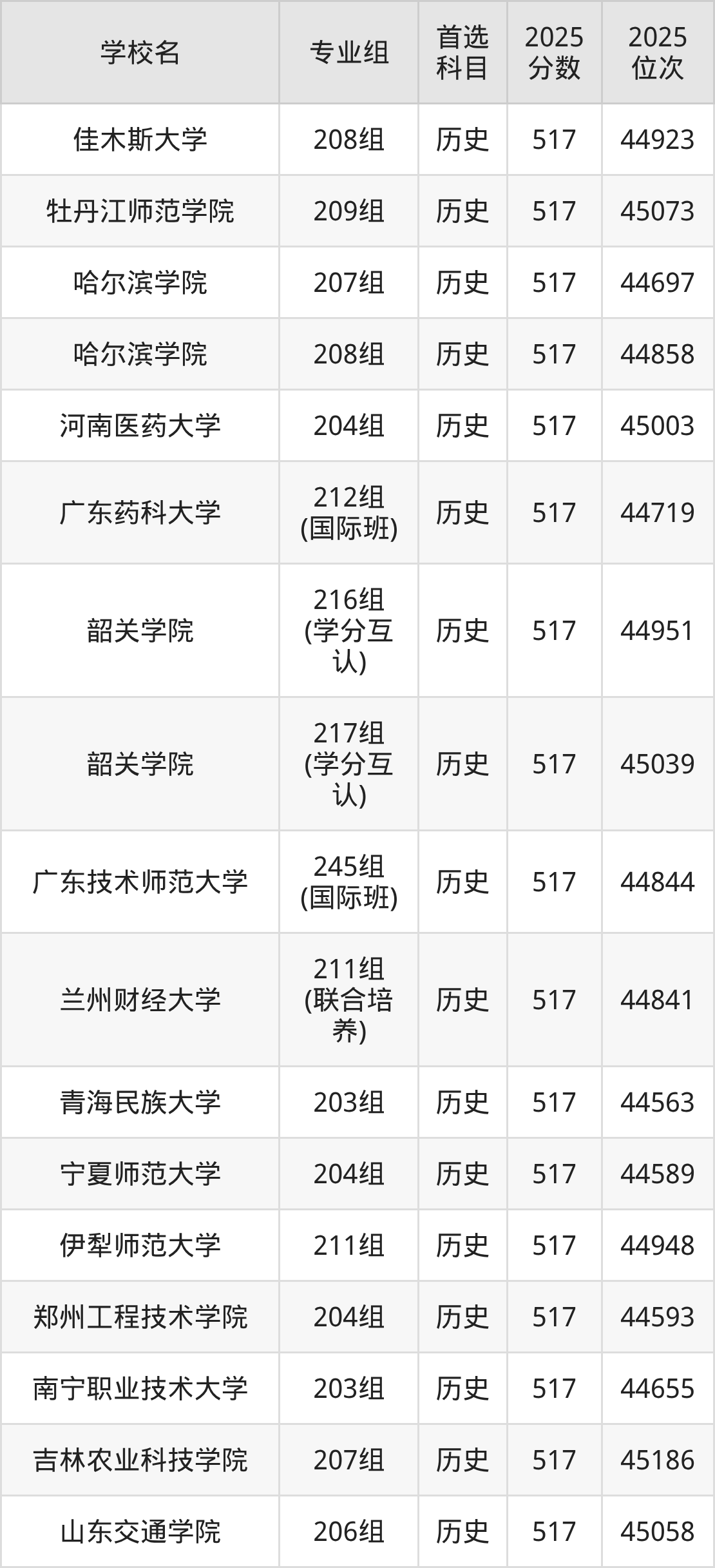 2025年在广东高考历史类录取分数线是519分的大学有衡水学院、邢台学院、山西大同大学、内蒙古科技大学、滁州学院、铜陵学院、上饶师范学院、菏泽学院、河南科技学院、周口师范学院等。物理类录取分数线是519分的大学有内蒙古民族大学、长春工业大学、哈尔滨医科大学、南通大学、江西农业大学、赣南师范大学、山东第一医科大学、广东海洋大学、韩山师范学院、广西科技大学等。