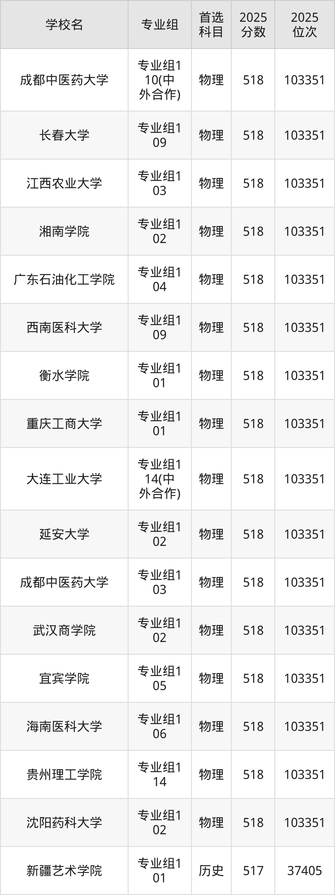 下面老师将以上文整理的其中两个省份为例,为大家具体展示519分左右能上的本科大学名单。