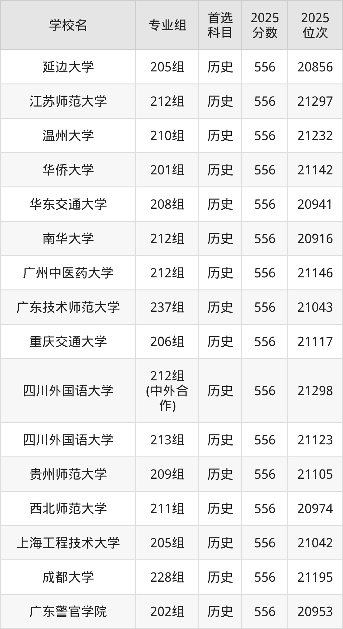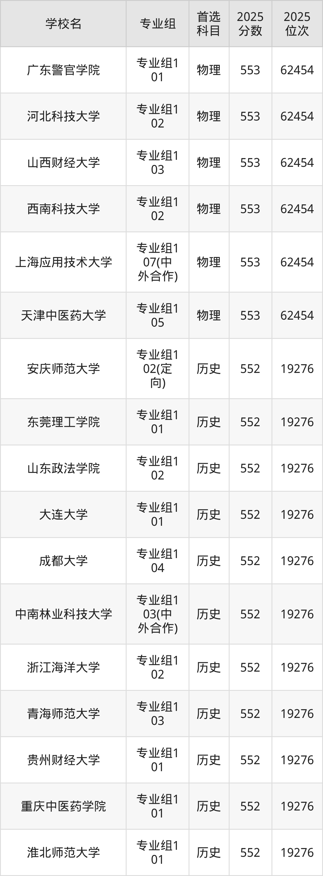2025年在四川高考历史类录取分数线是554分的大学有天津商业大学、烟台大学、贵州师范大学、天津职业技术师范大学、浙大城市学院、西安邮电大学、重庆理工大学、曲阜师范大学、浙江外国语学院、南昌航空大学等。物理类录取分数线是554分的大学有河北中医药大学、湖南中医药大学、天津财经大学、北京第二外国语学院、海南医科大学、西华大学、上海工程技术大学。