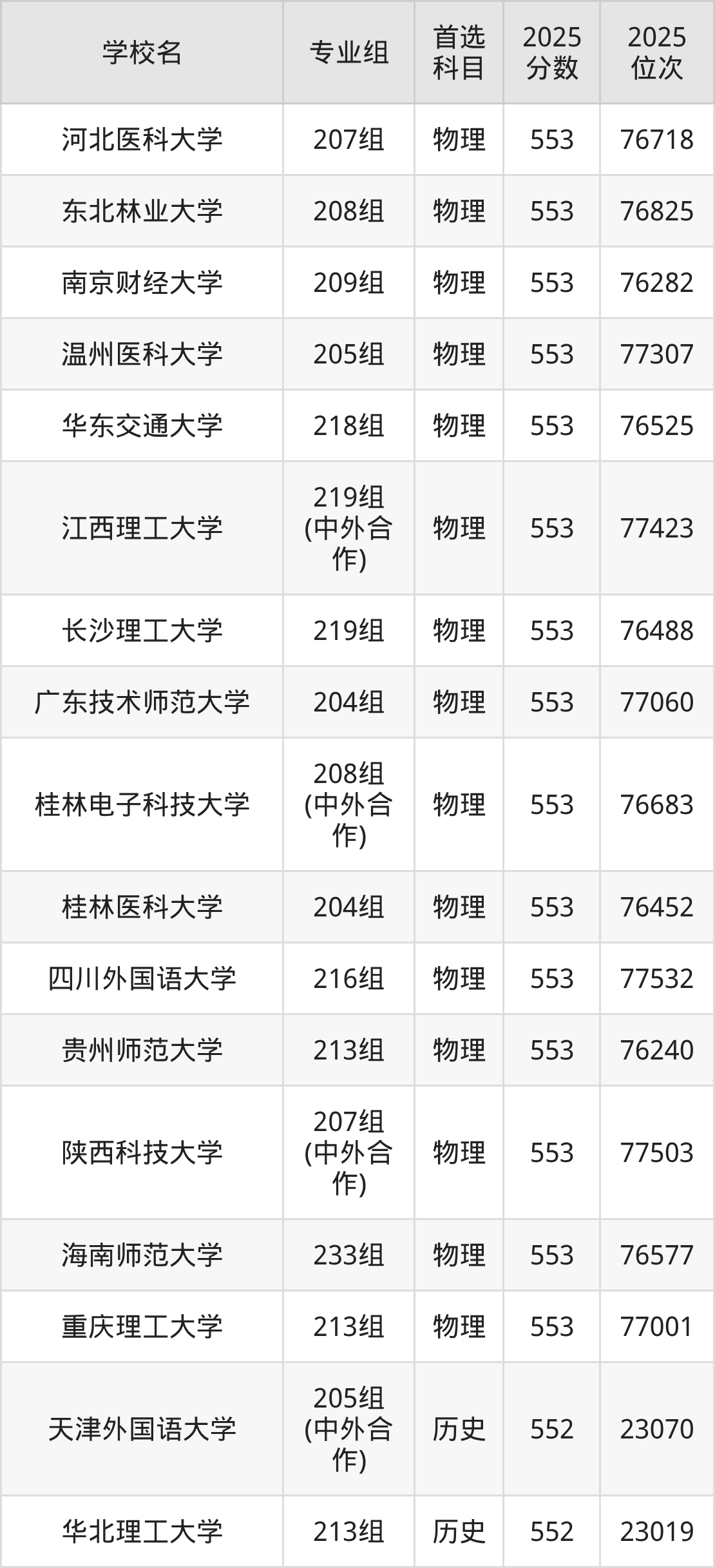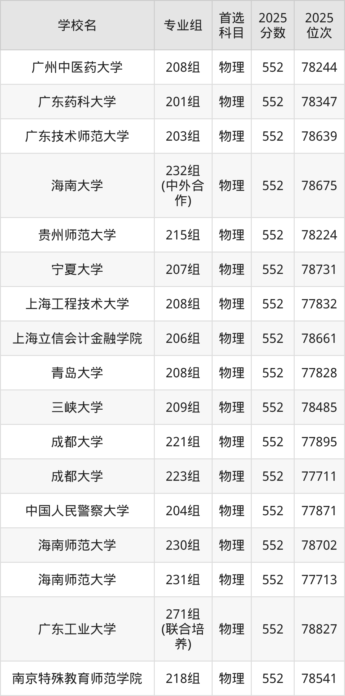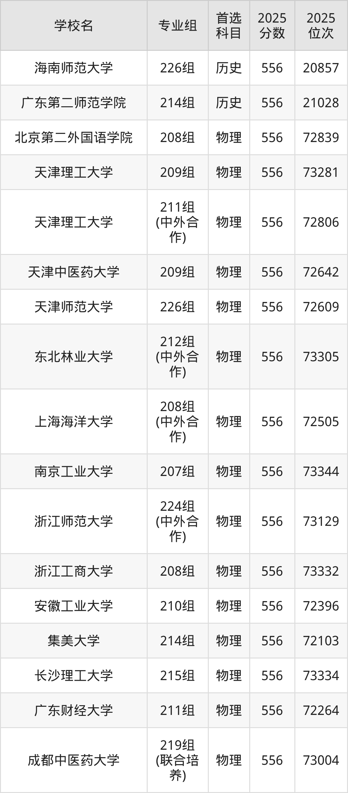 2025年在广东高考物理类录取分数线是554分的大学有首都体育学院、天津师范大学、东北师范大学、佳木斯大学、东北农业大学、东北林业大学、中国矿业大学、浙江理工大学、浙江师范大学、汕头大学等。历史类录取分数线是554分的大学有天津工业大学、天津中医药大学、上海海洋大学、江苏科技大学、江苏师范大学、盐城师范学院、湖州师范学院、淮北师范大学、华东交通大学、江西师范大学等。