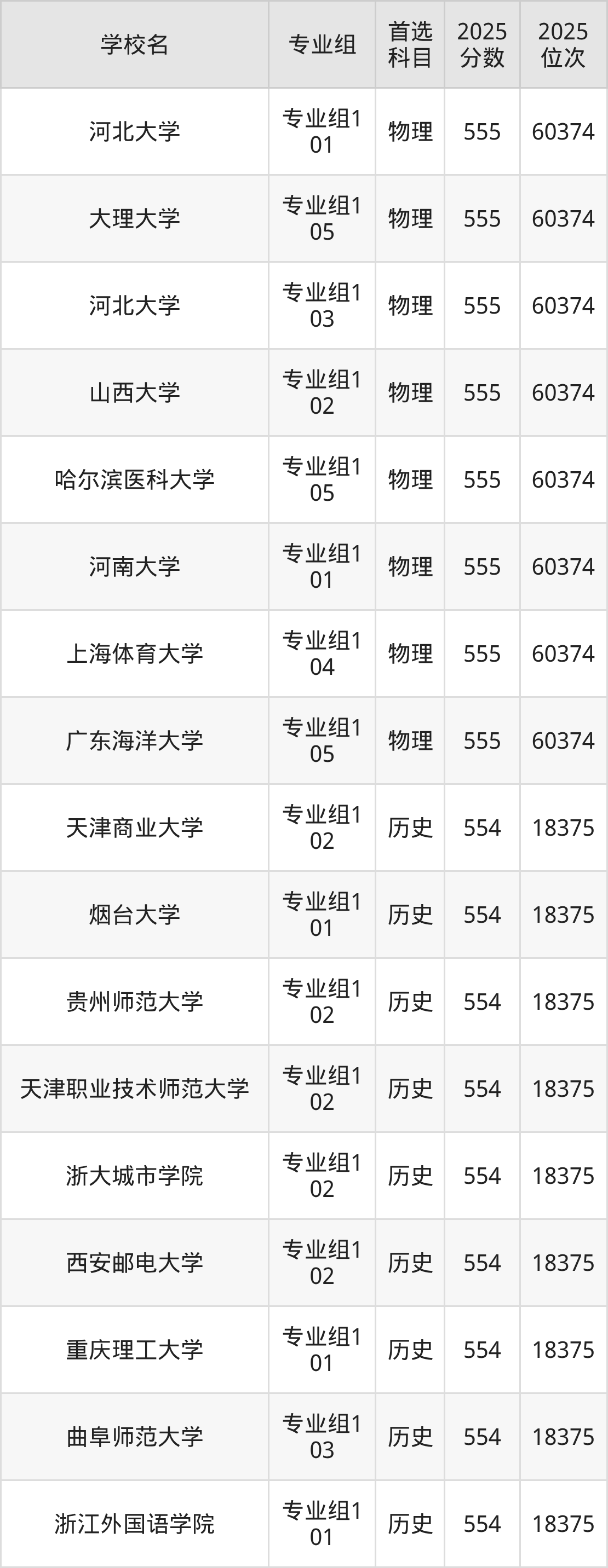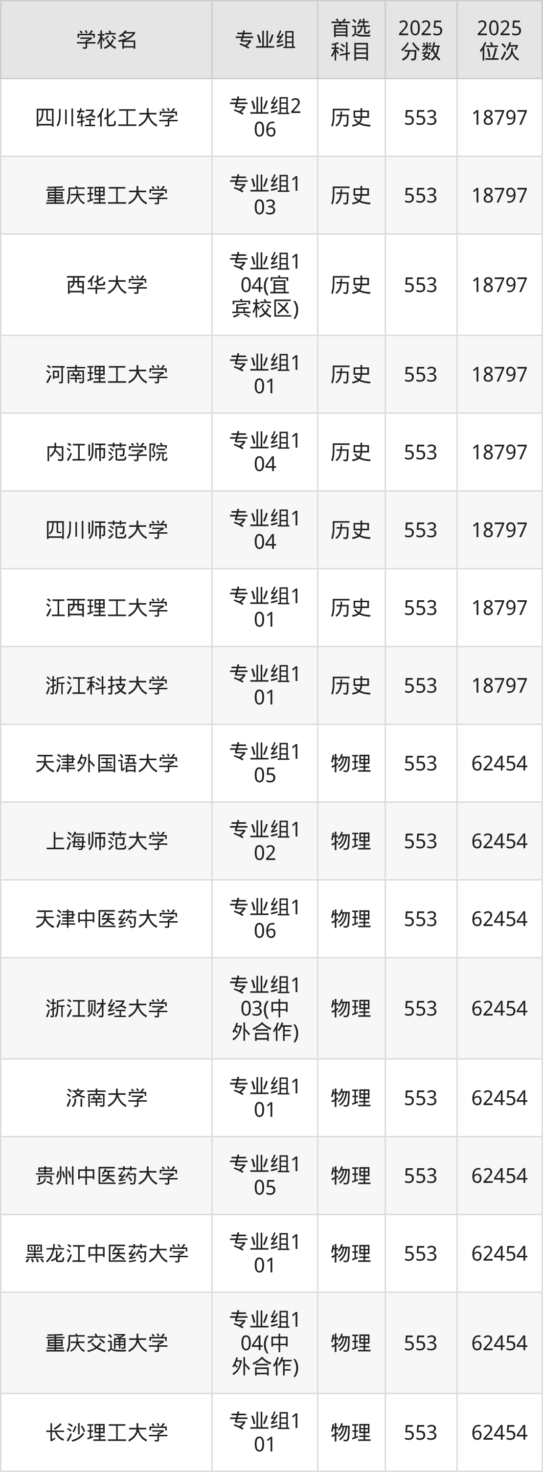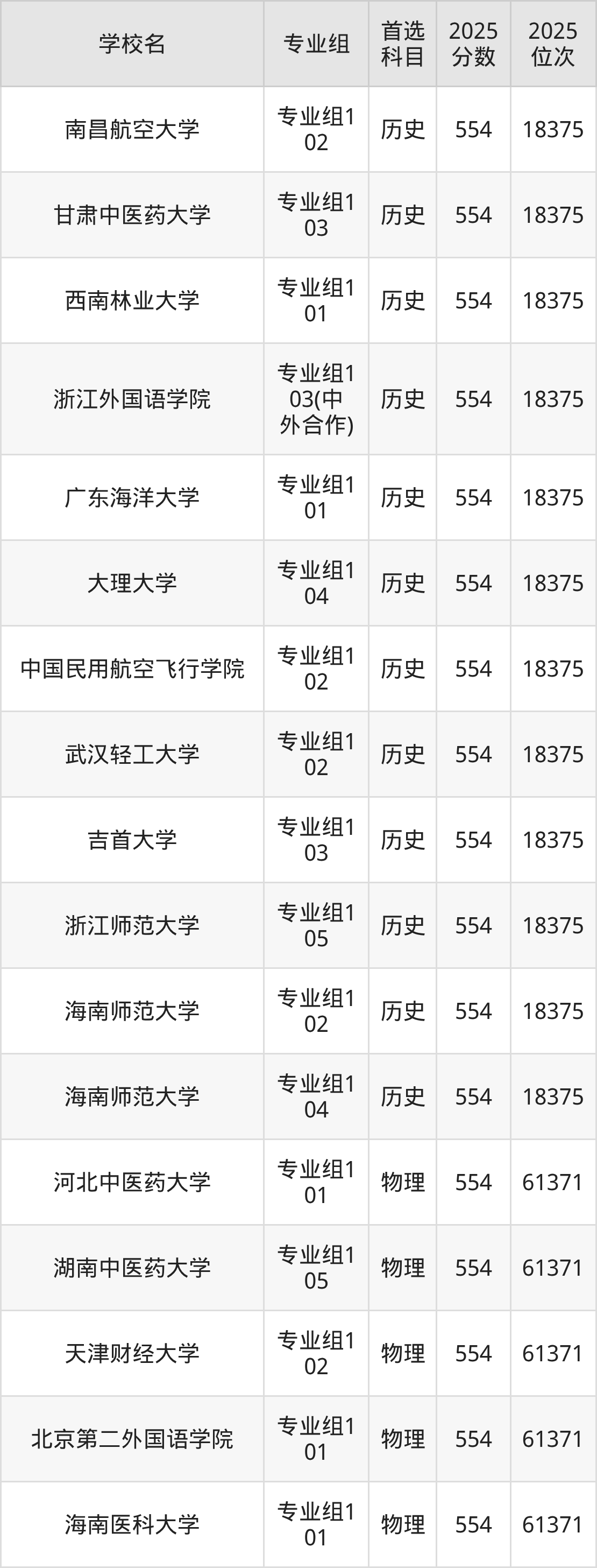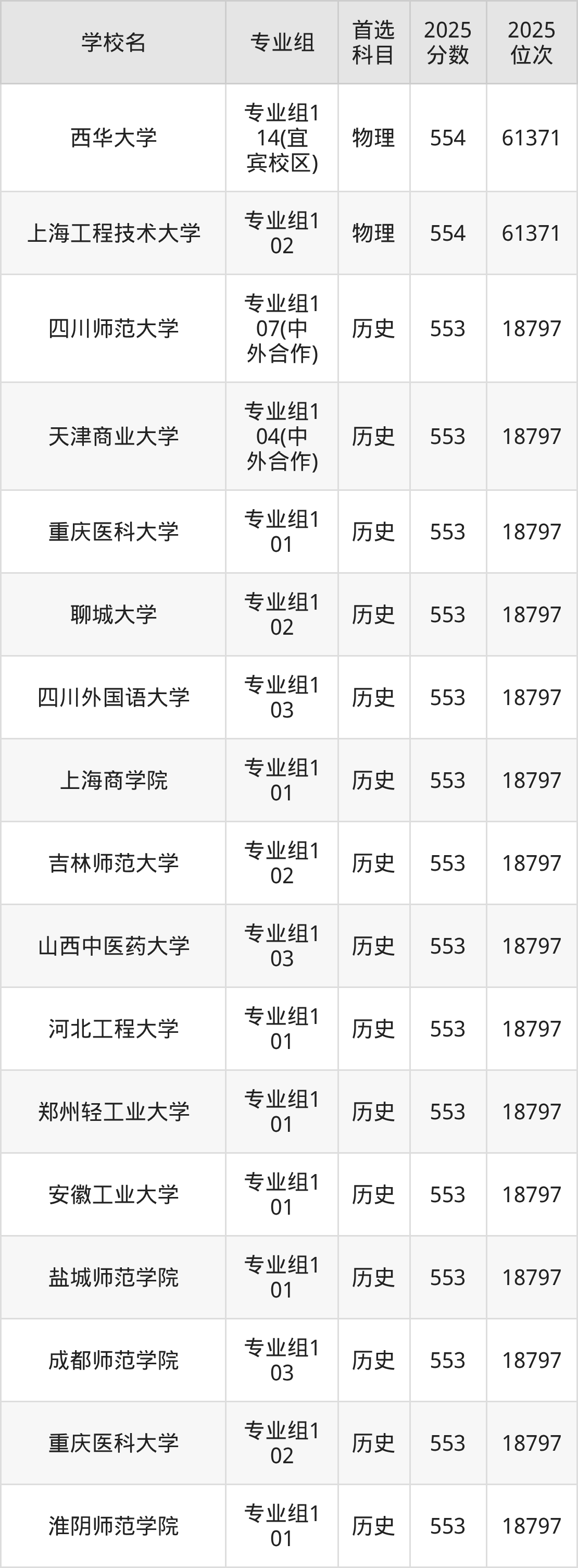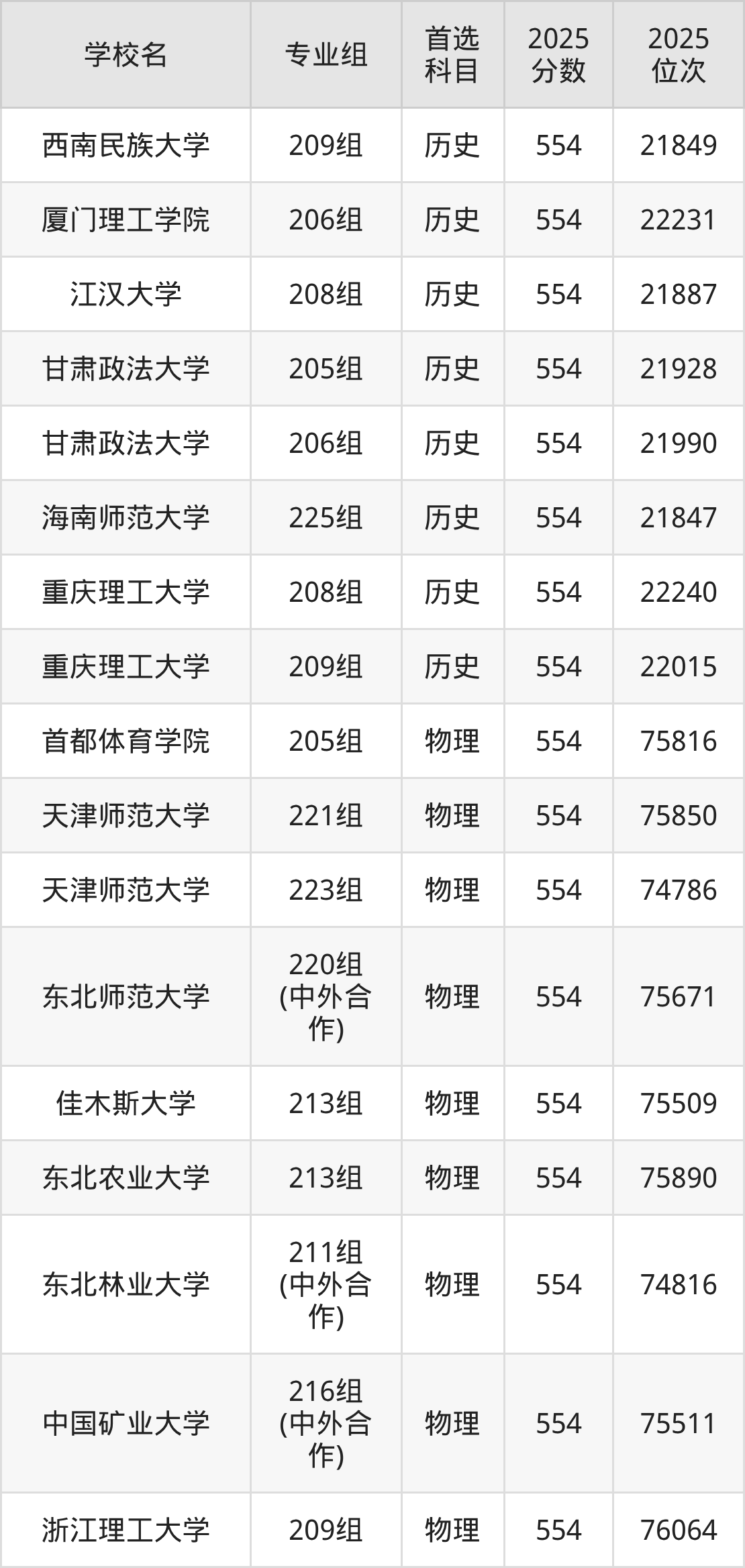 四川高考历史类554分对应的位次排名是18375名,物理类554分对应的位次排名是61371名,因此建议2026年位次排在这附近的同学考虑这些大学。