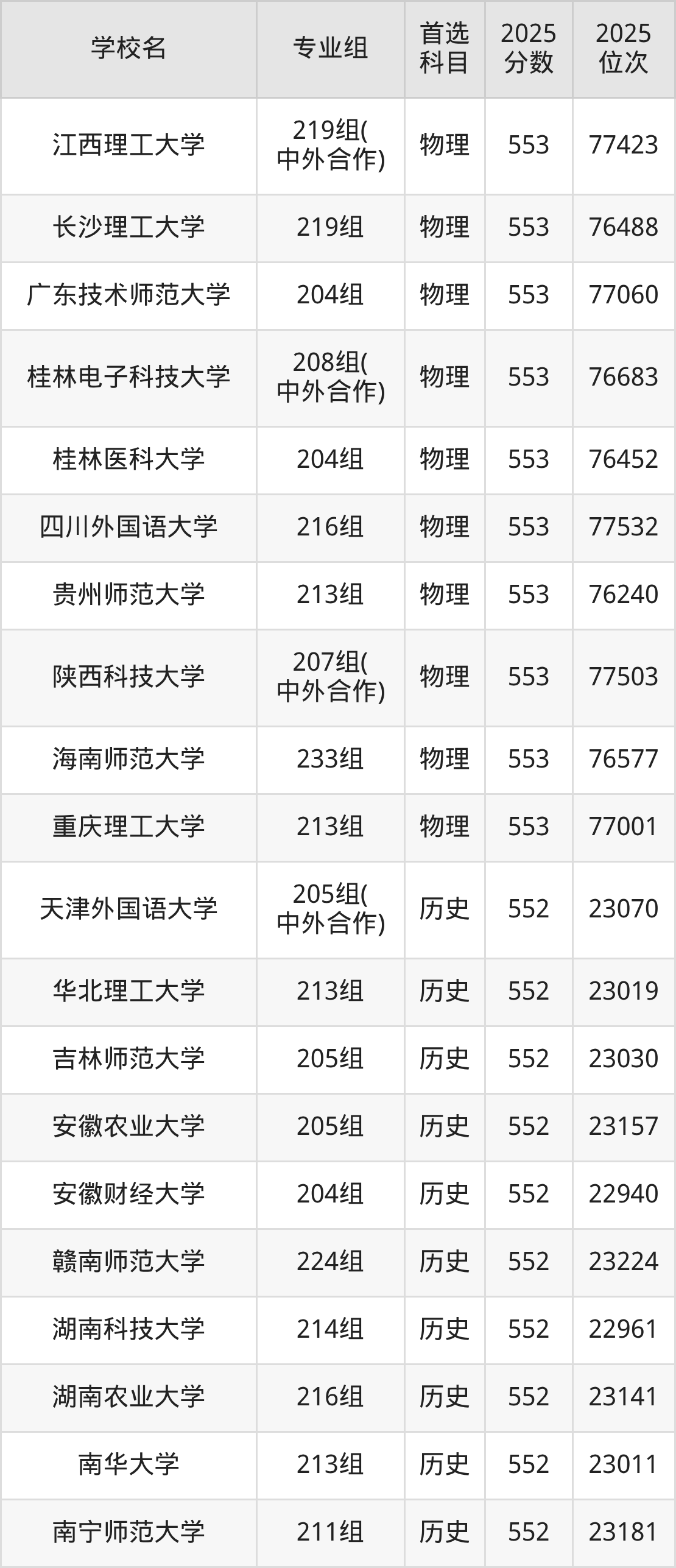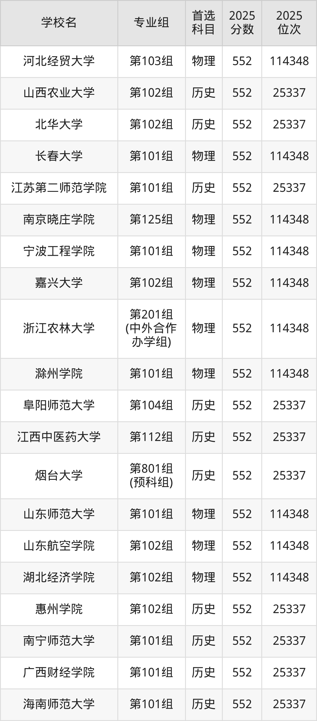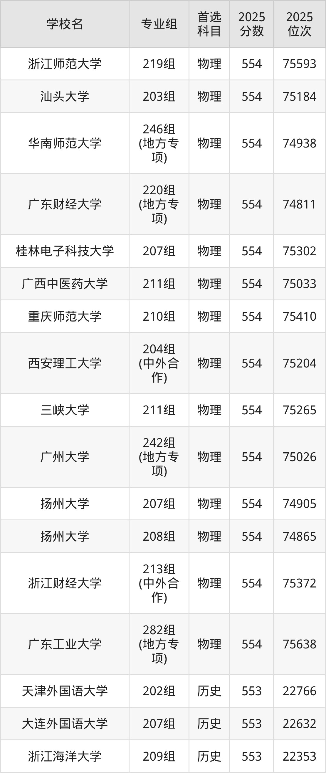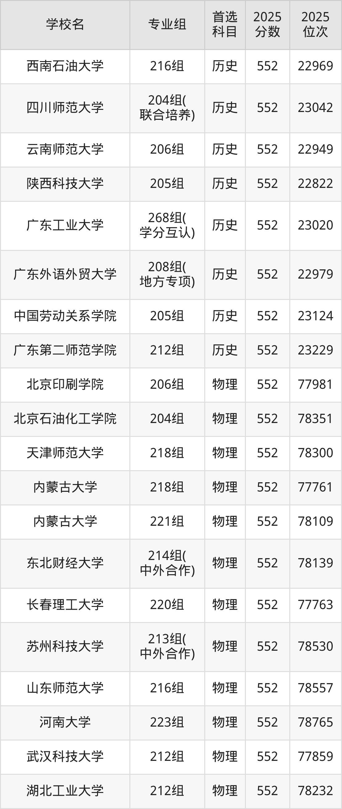 广东高考历史类554分对应的位次排名是21804名-22299名,物理类554分对应的位次排名是74786名-76064名,因此建议2026年位次排在这附近的同学考虑这些大学。