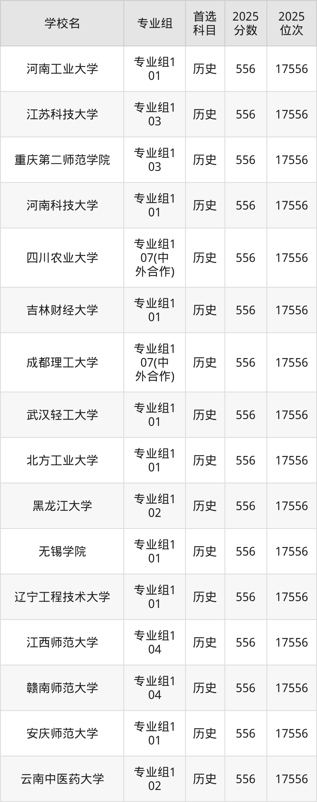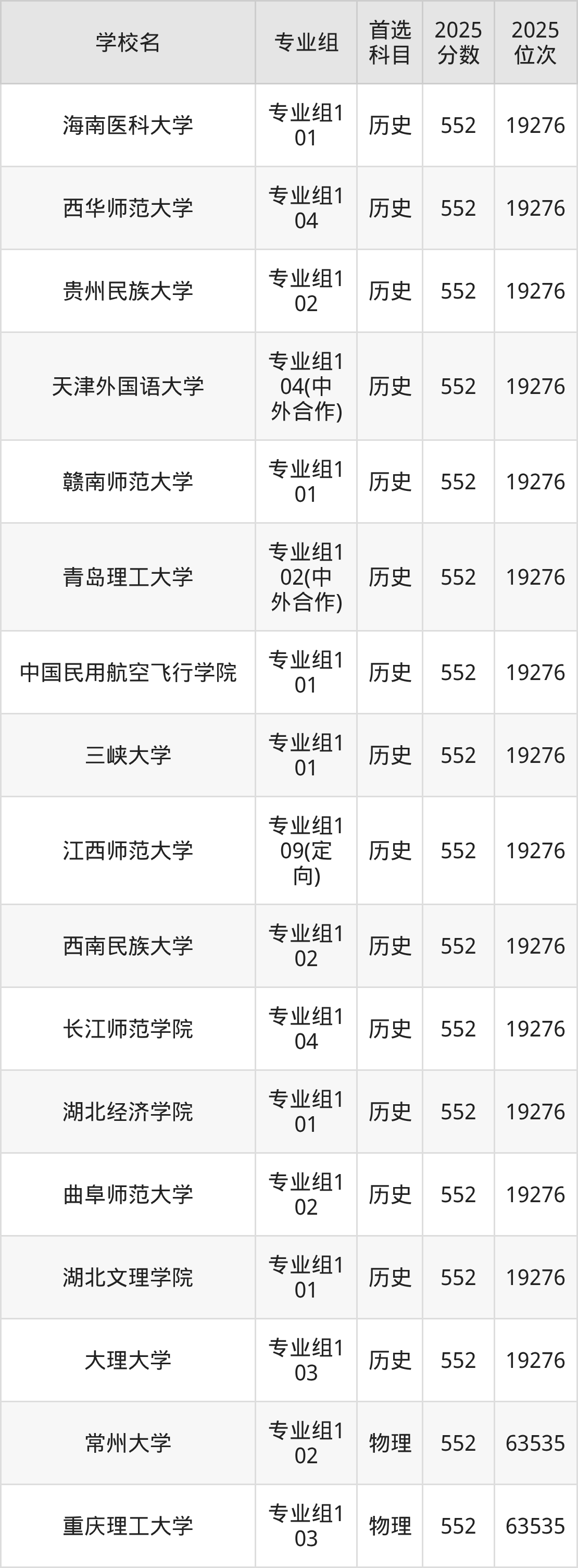 下面老师将以上文整理的其中两个省份为例,为大家具体展示554分左右能上的本科大学名单。