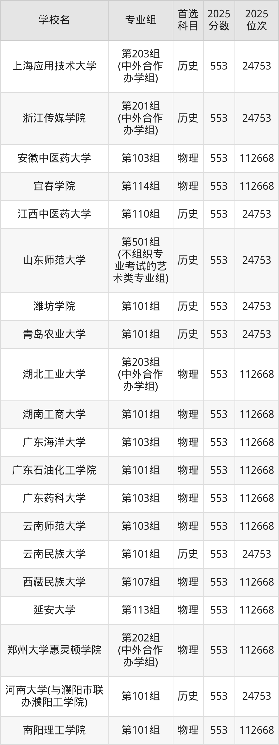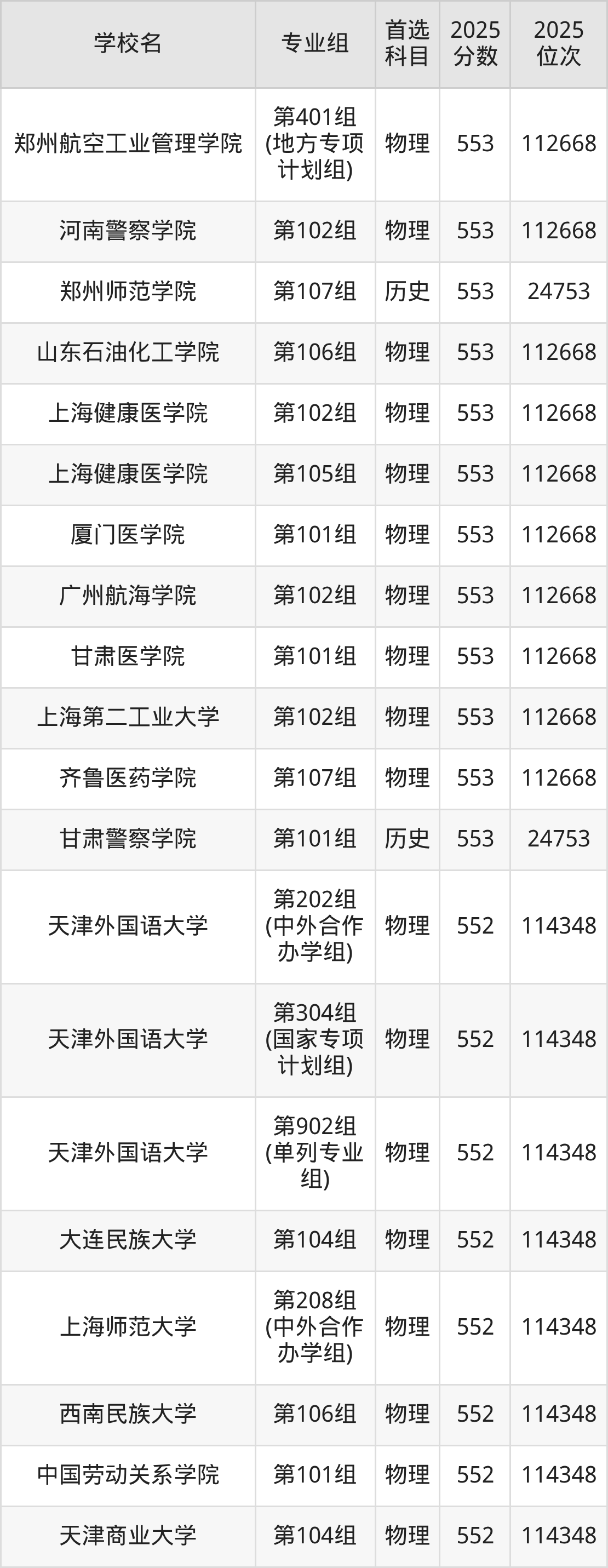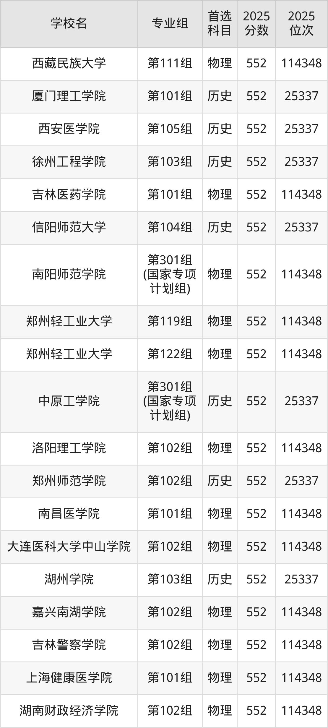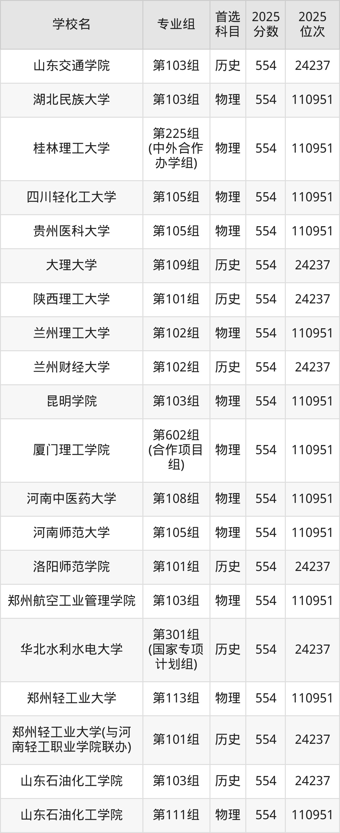 河南高考历史类554分对应的位次排名是24237名,物理类554分对应的位次排名是110951名,因此建议2026年位次排在这附近的同学考虑这些大学。
