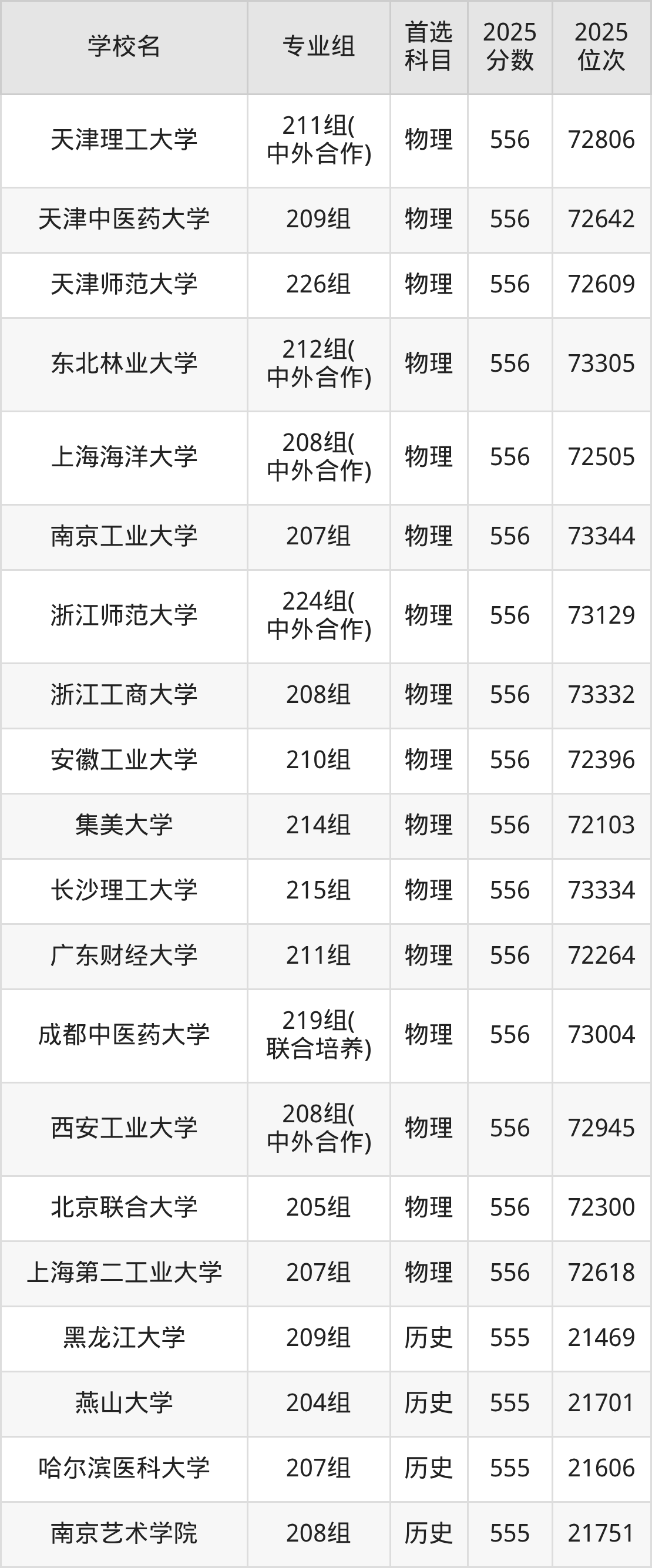 物理类554分可以冲的大学:北京第二外国语学院556分、天津理工大学556分、天津中医药大学556分、天津师范大学556分等;较稳妥的大学:河北医科大学553分、东北林业大学553分、南京财经大学553分、温州医科大学553分等。