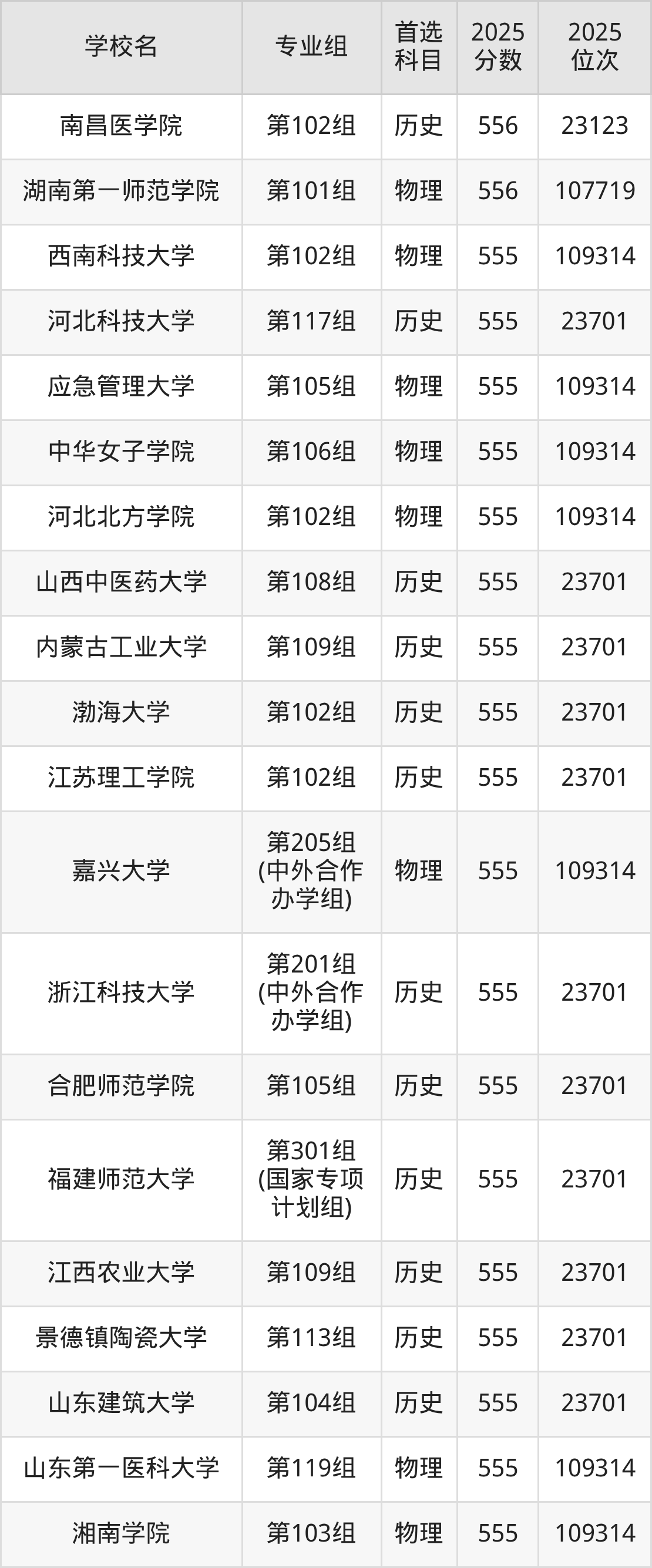2025年在河南高考历史类录取分数线是554分的大学有哈尔滨医科大学、华侨大学、山西医科大学、北方民族大学、大连海洋大学、盐城师范学院、苏州工学院、宁波工程学院、福建中医药大学、赣南师范大学等。物理类录取分数线是554分的大学有浙江理工大学、沈阳建筑大学、浙江师范大学、湖北中医药大学、重庆工商大学、太原科技大学、天津城建大学、长治医学院、沈阳大学、大连海洋大学等。