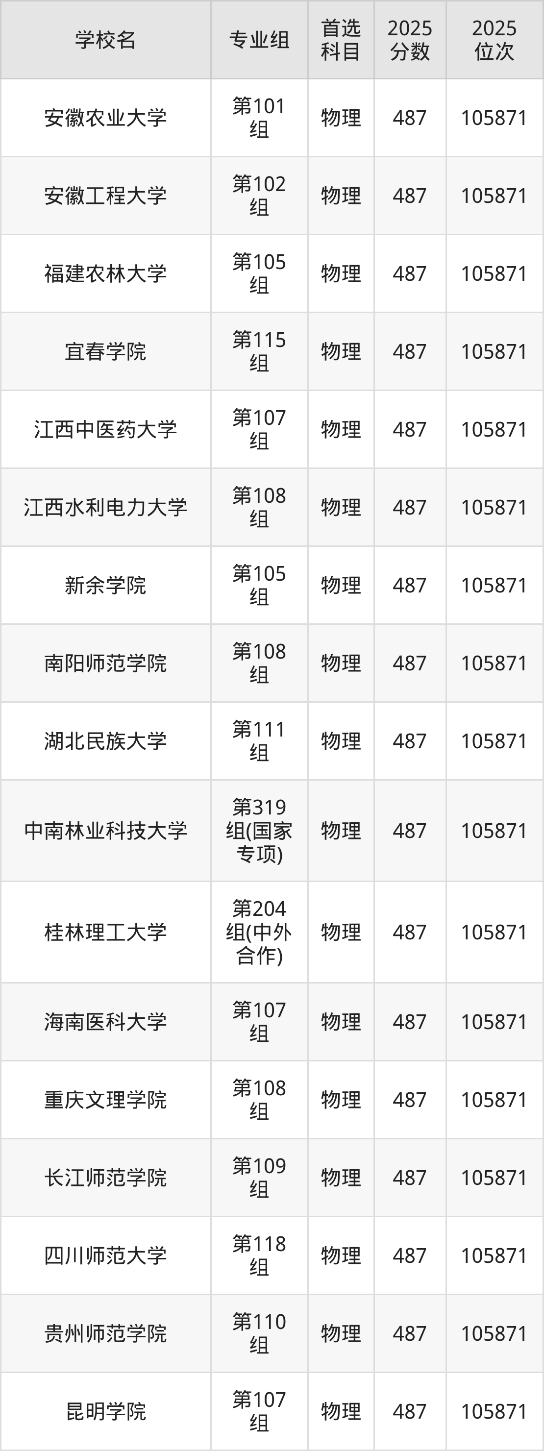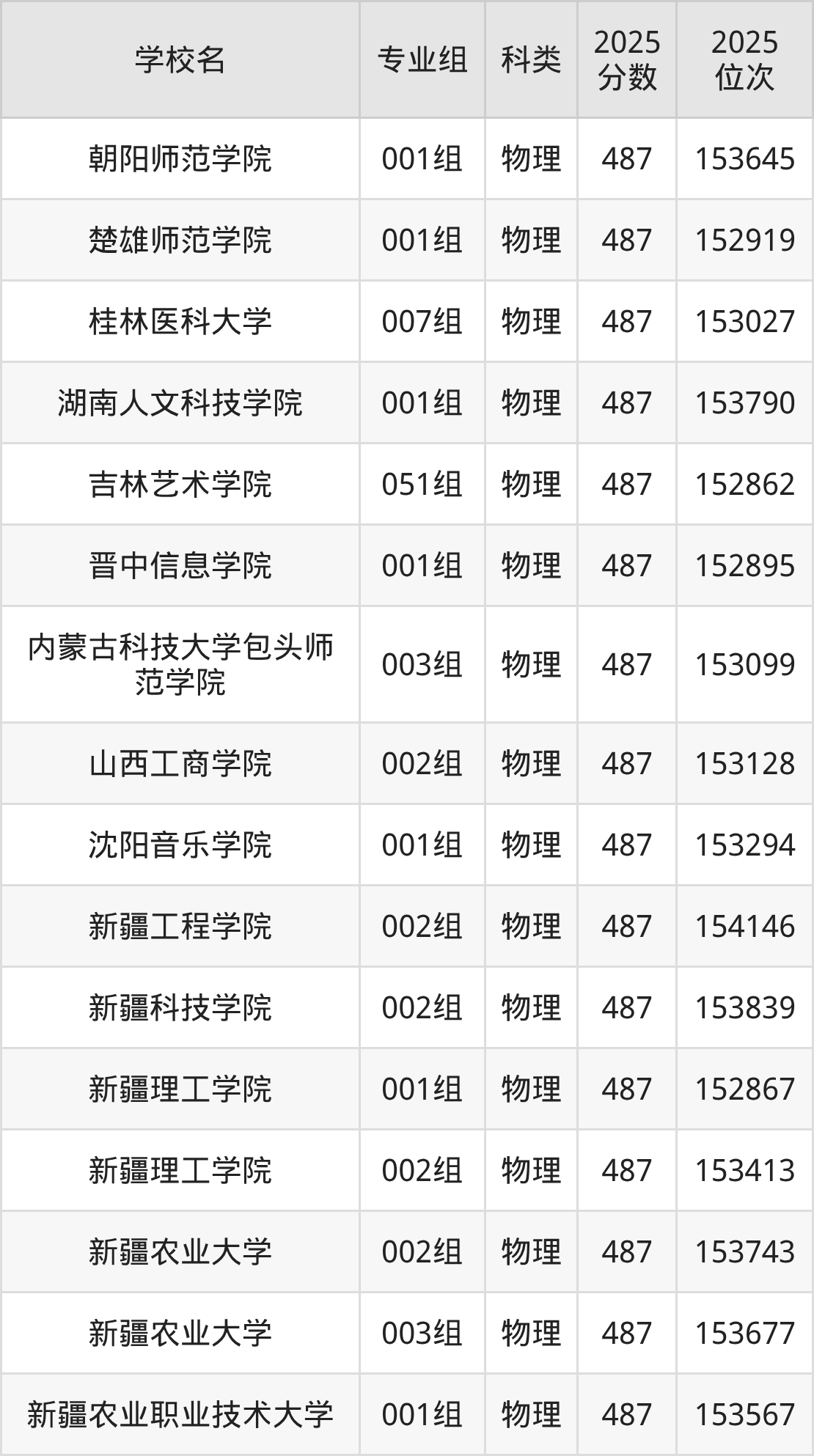 物理类485分可以冲的大学:朝阳师范学院487分、楚雄师范学院487分、桂林医科大学487分、湖南人文科技学院487分等;较稳妥的大学:北京物资学院484分、成都锦城学院484分、重庆文理学院484分、广州软件学院484分等。