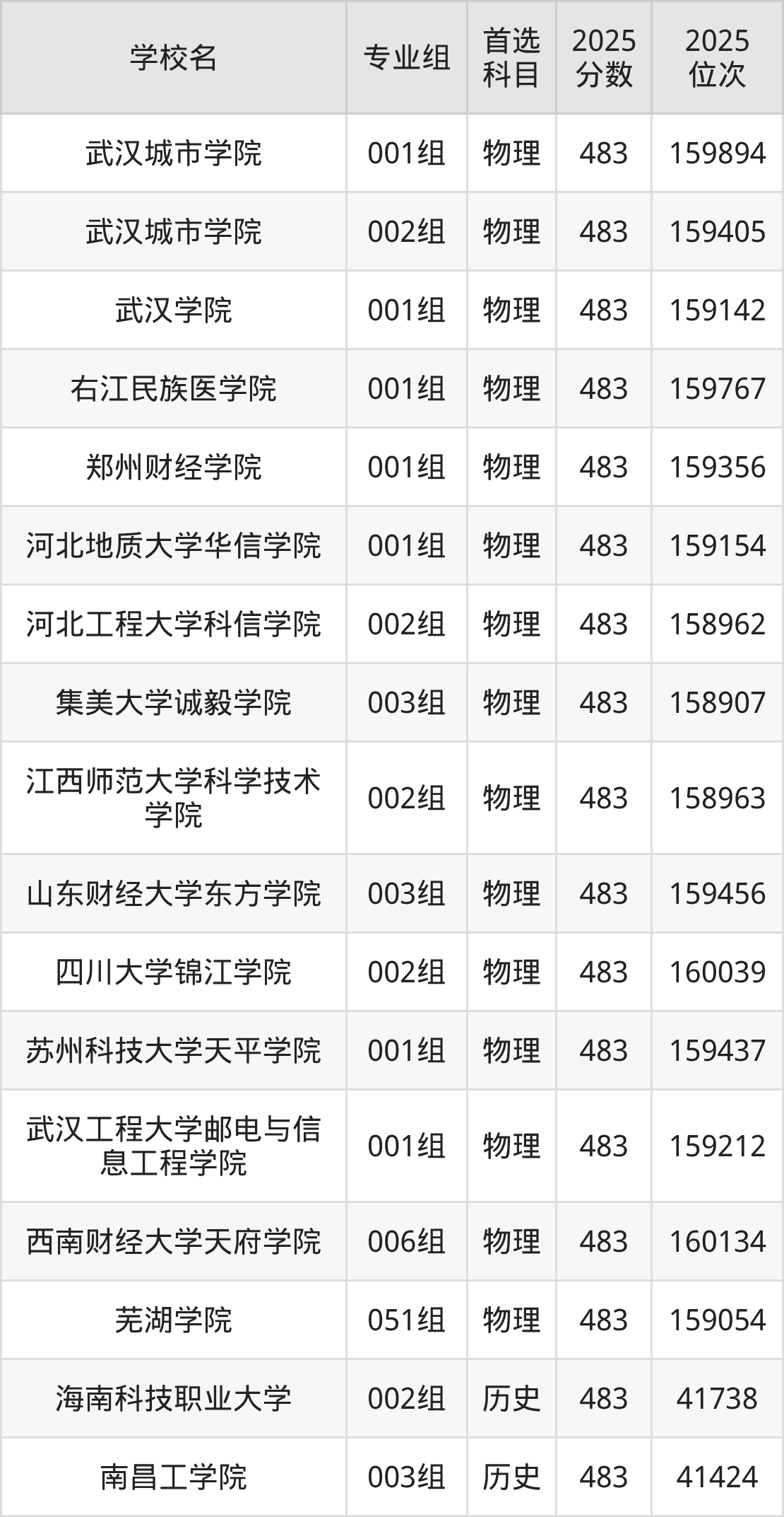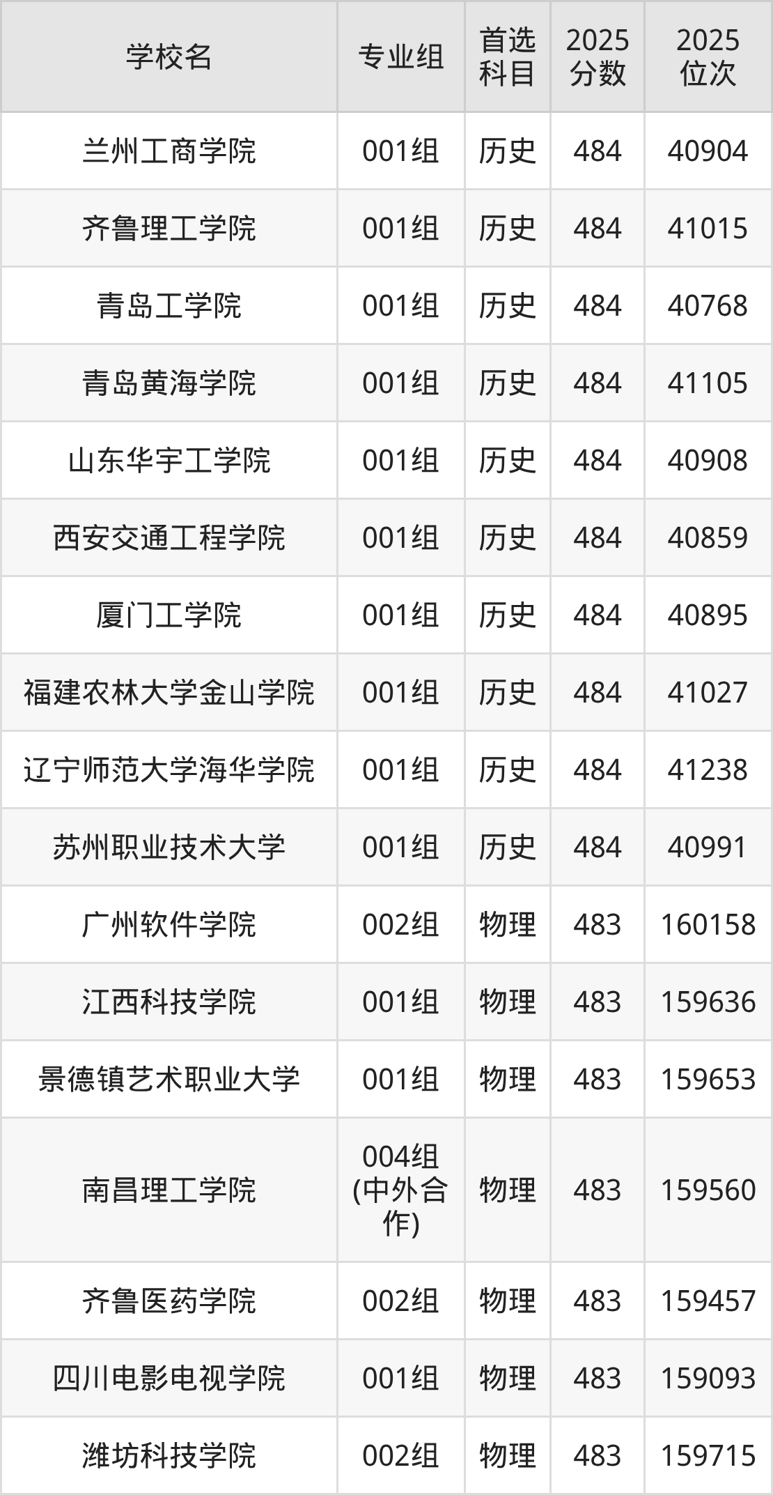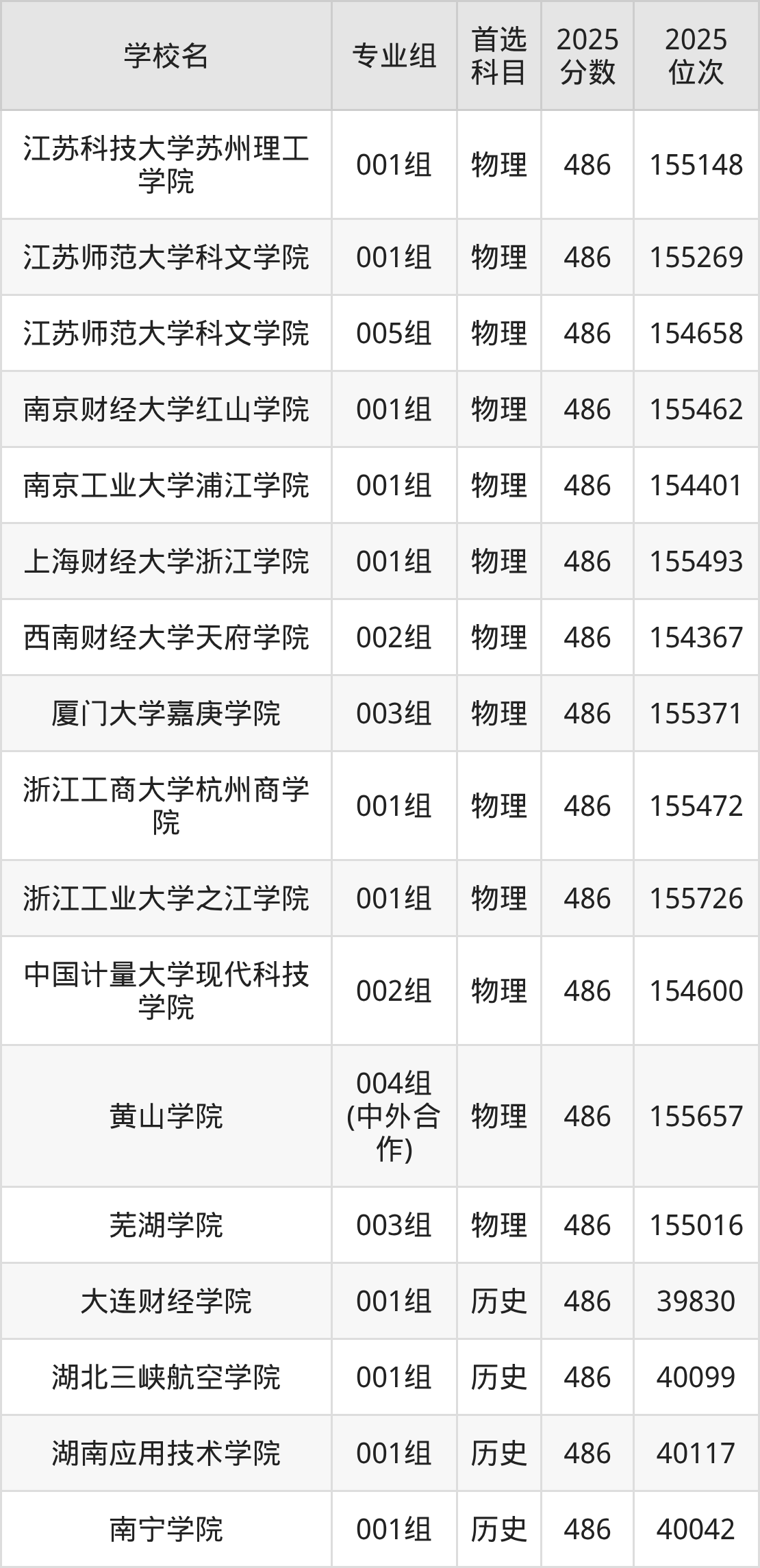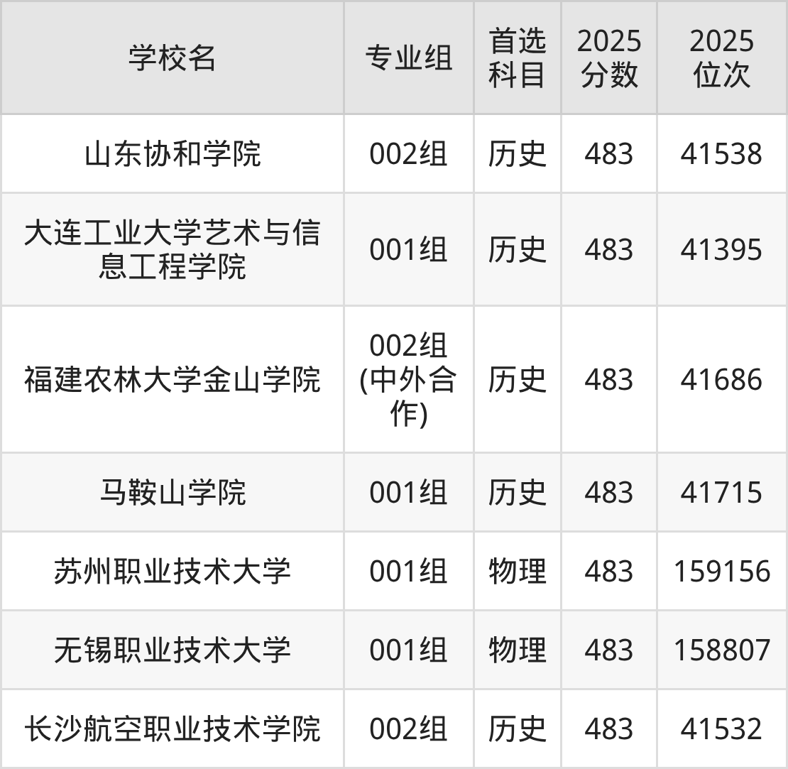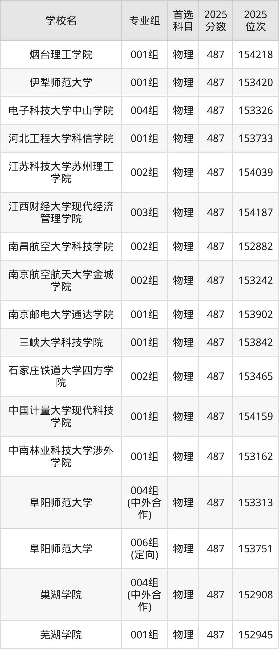 安徽高考物理类485分对应的位次排名是155822名-157252名,历史类485分对应的位次排名是40263名-40753名,因此建议2026年位次排在这附近的同学考虑这些大学。