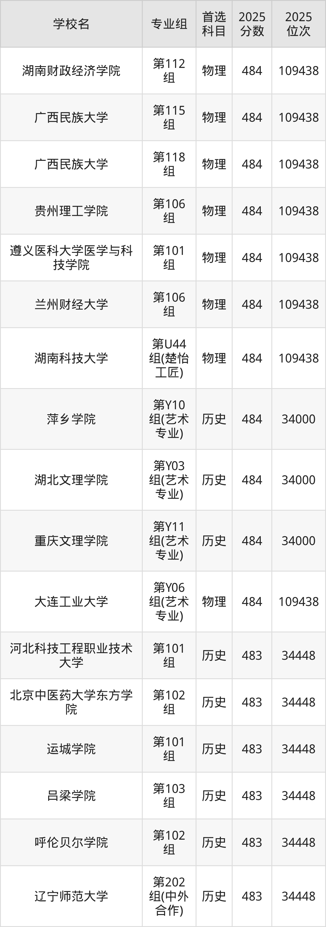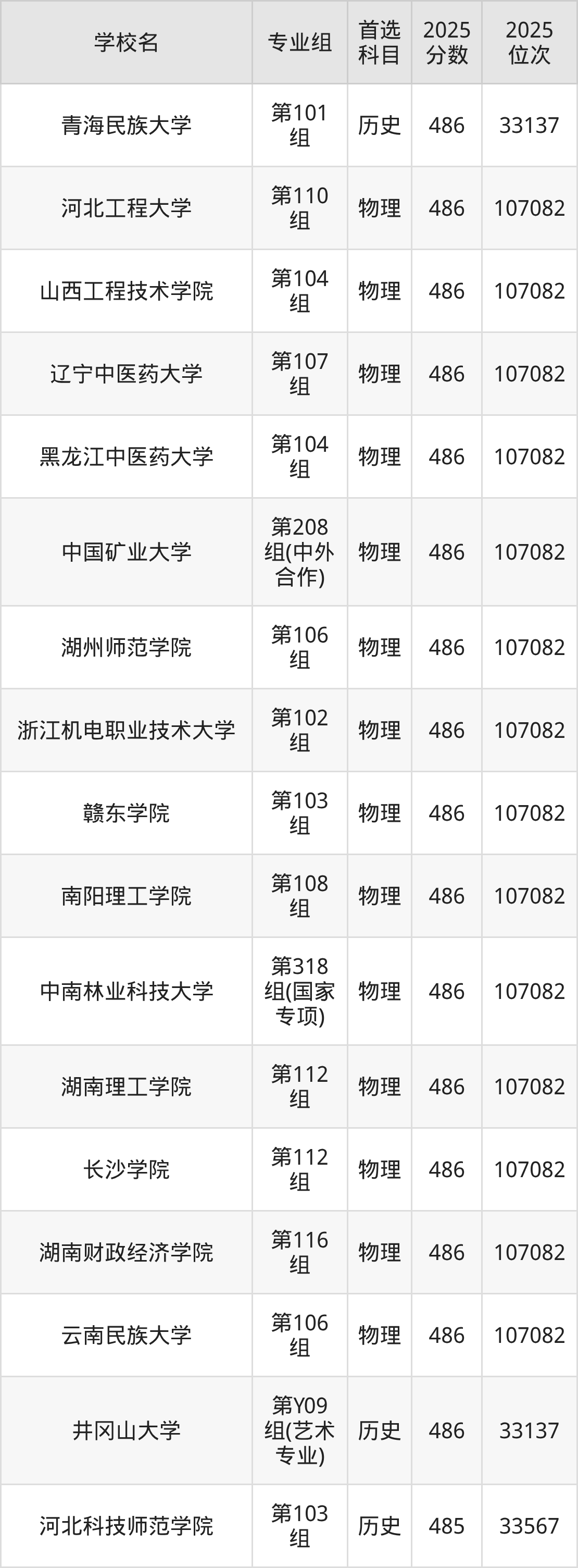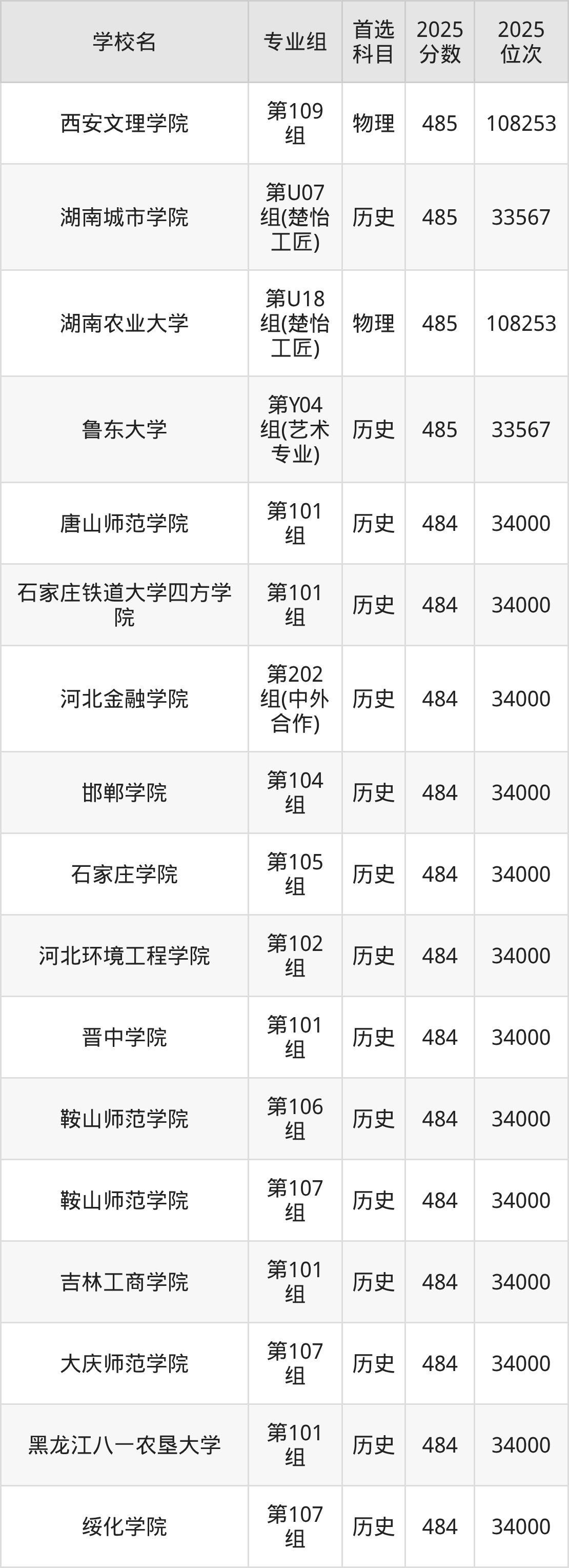 湖南高考历史类485分对应的位次排名是33567名,物理类485分对应的位次排名是108253名,因此建议2026年位次排在这附近的同学考虑这些大学。