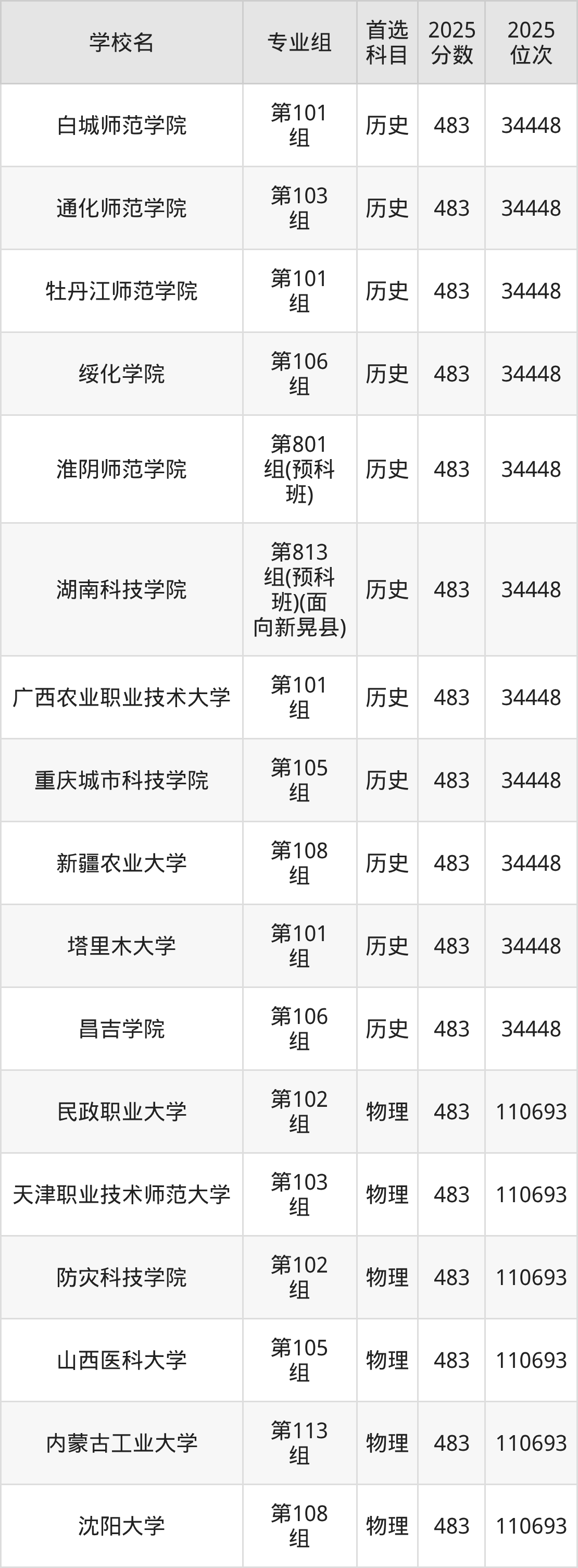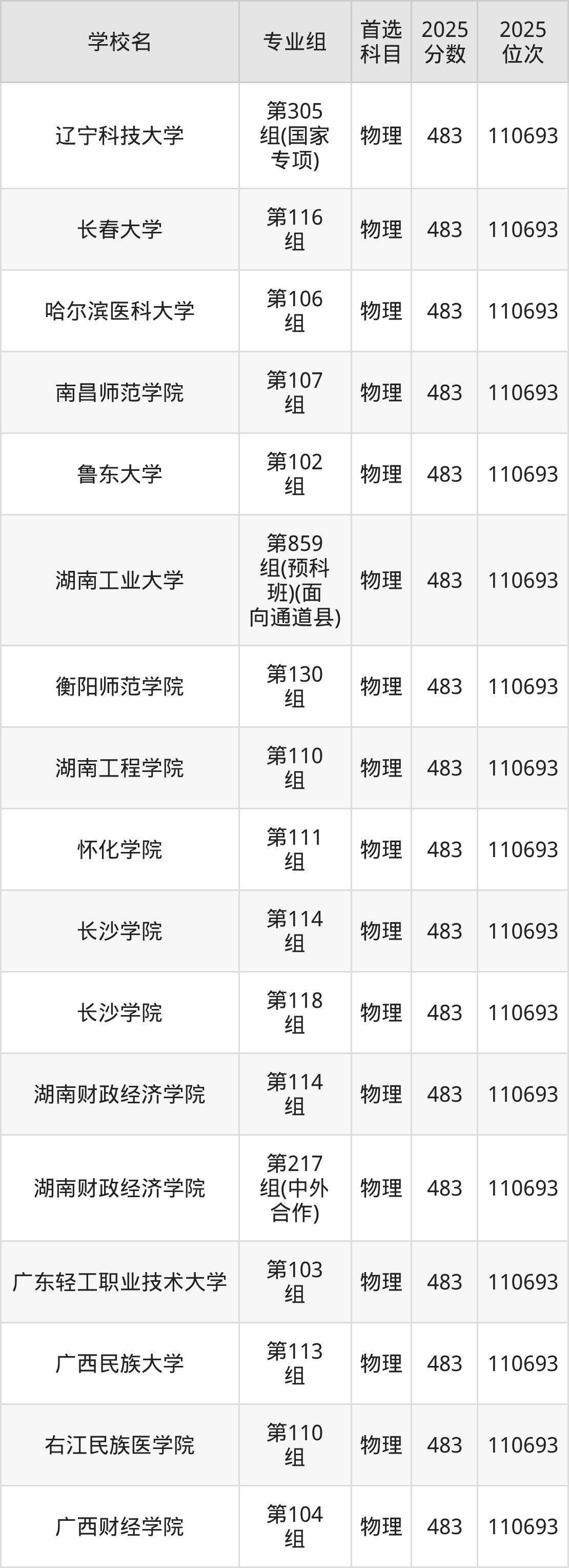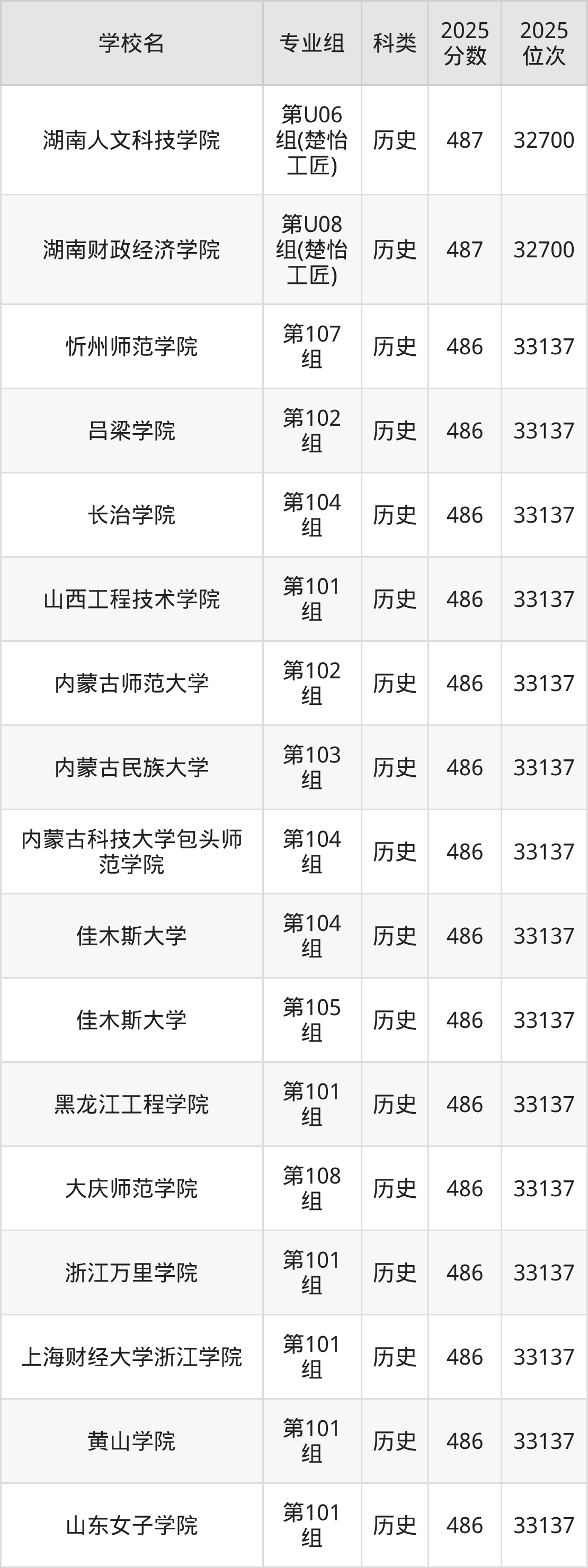 湖南高考历史类485分对应的位次排名是33567名,物理类485分对应的位次排名是108253名,因此建议2026年位次排在这附近的同学考虑这些大学。