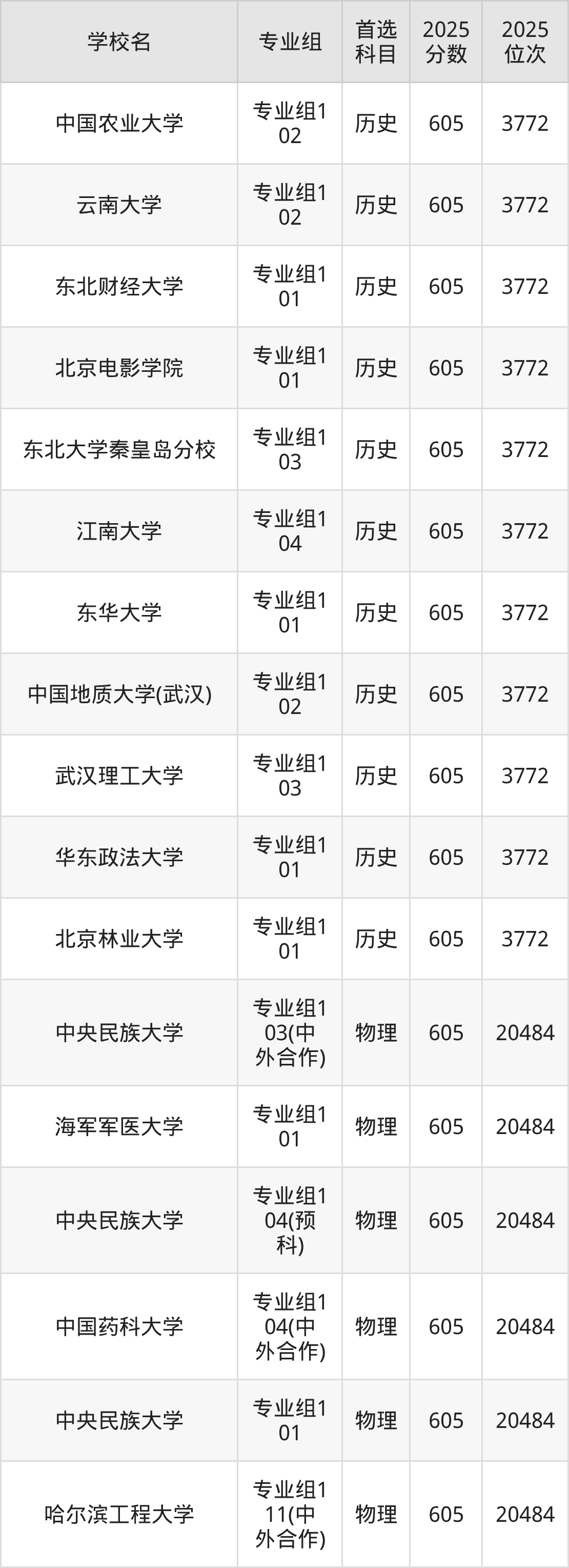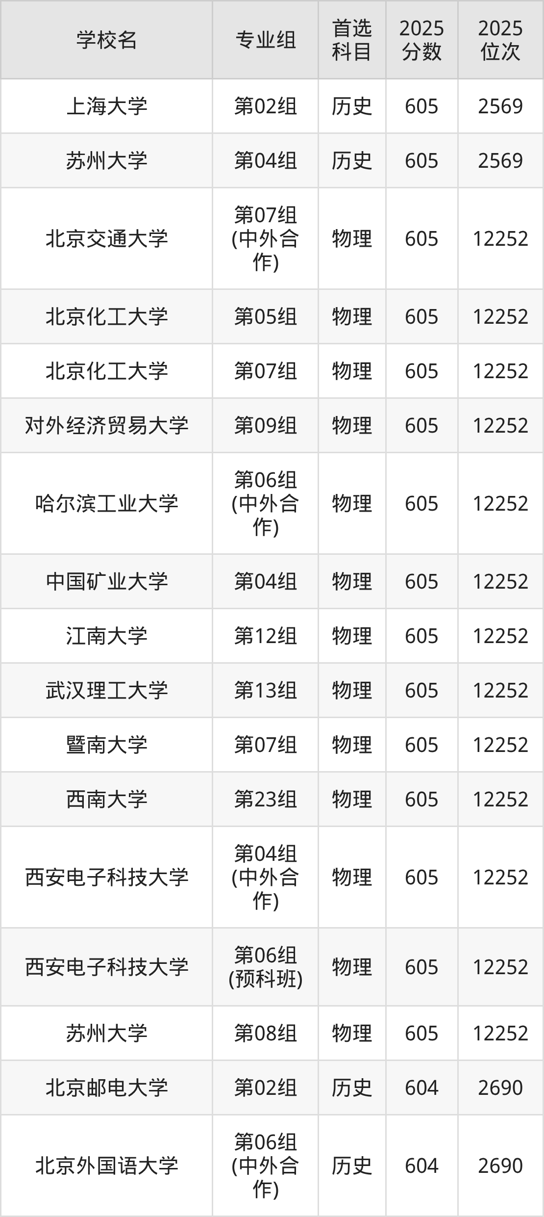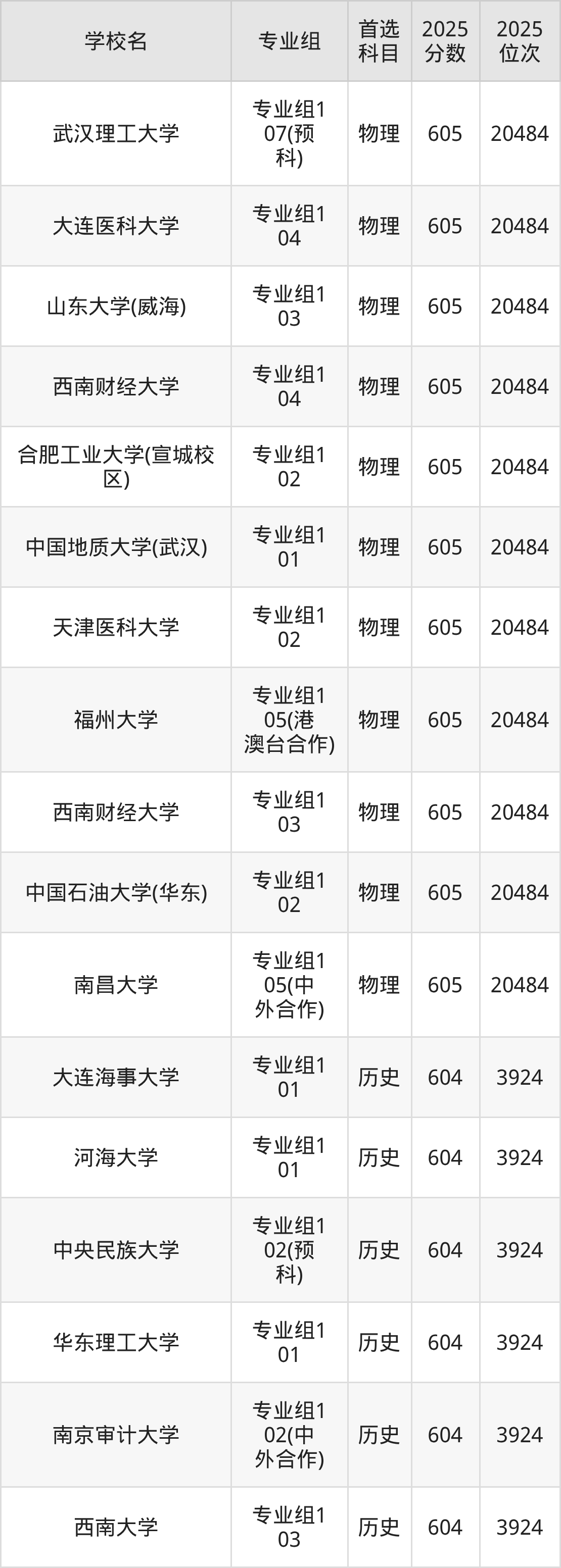 湖北高考历史类604分对应的位次排名是2690名,物理类604分对应的位次排名是12636名,因此建议2026年位次排在这附近的同学考虑这些大学。