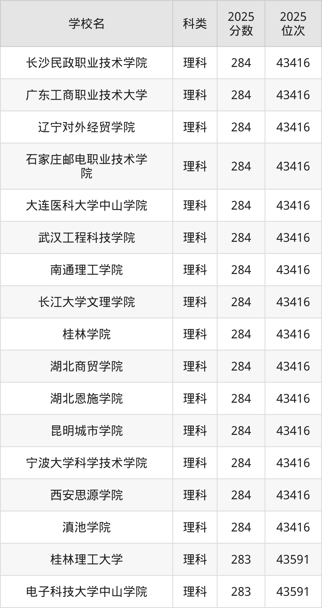 285分较稳妥的大学:长沙民政职业技术学院284分、广东工商职业技术大学284分、辽宁对外经贸学院284分、石家庄邮电职业技术学院284分等。