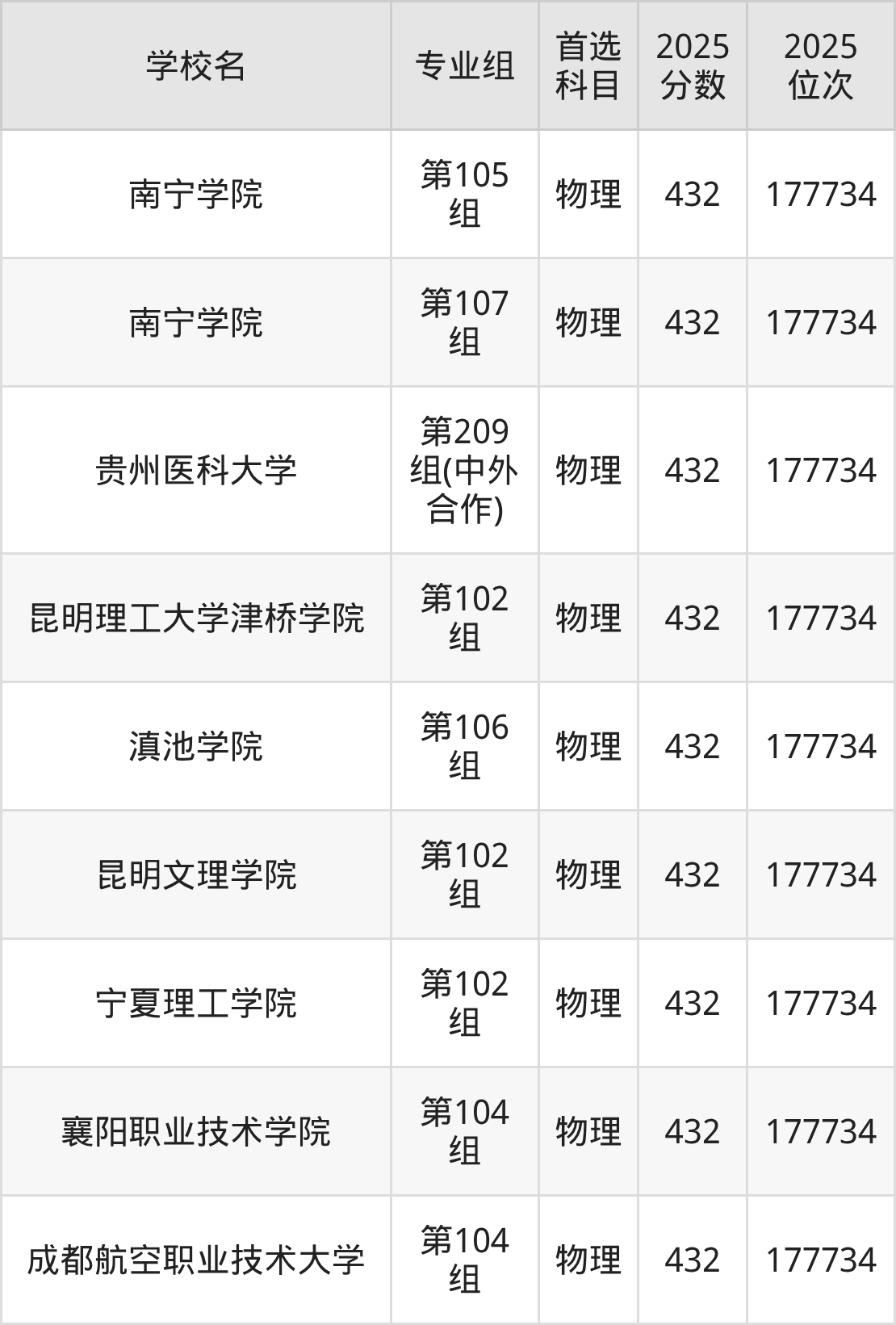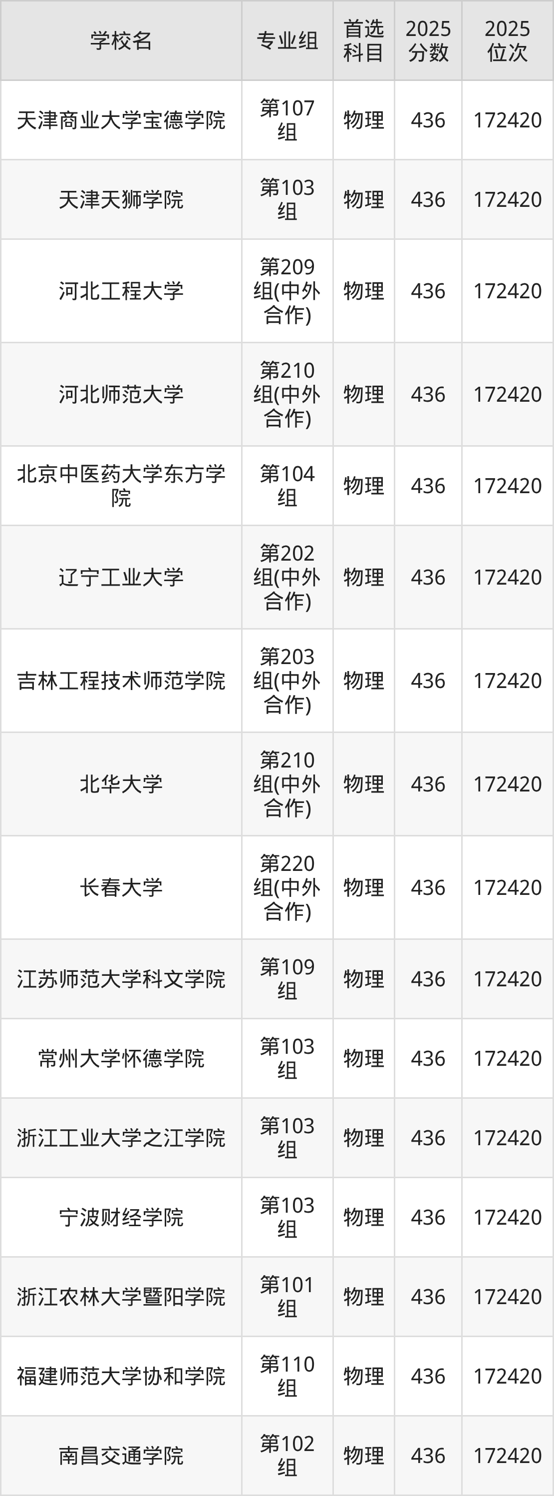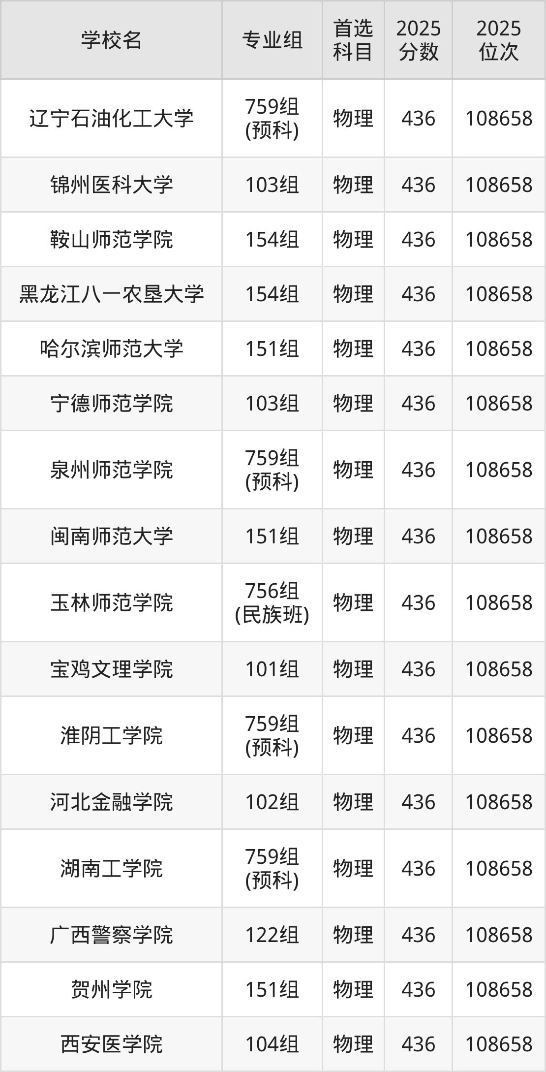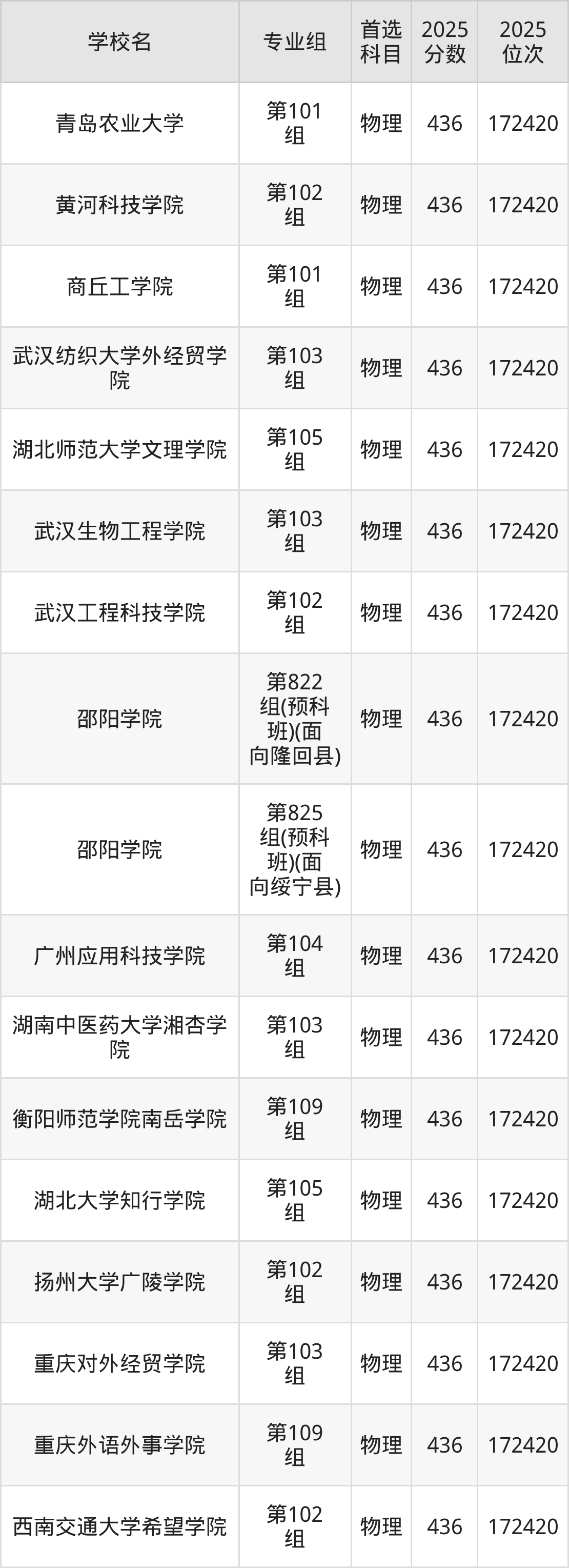 湖南物理类434分对应的位次排名是175127名,因此建议2026年位次排在这附近的考生考虑这些大学。