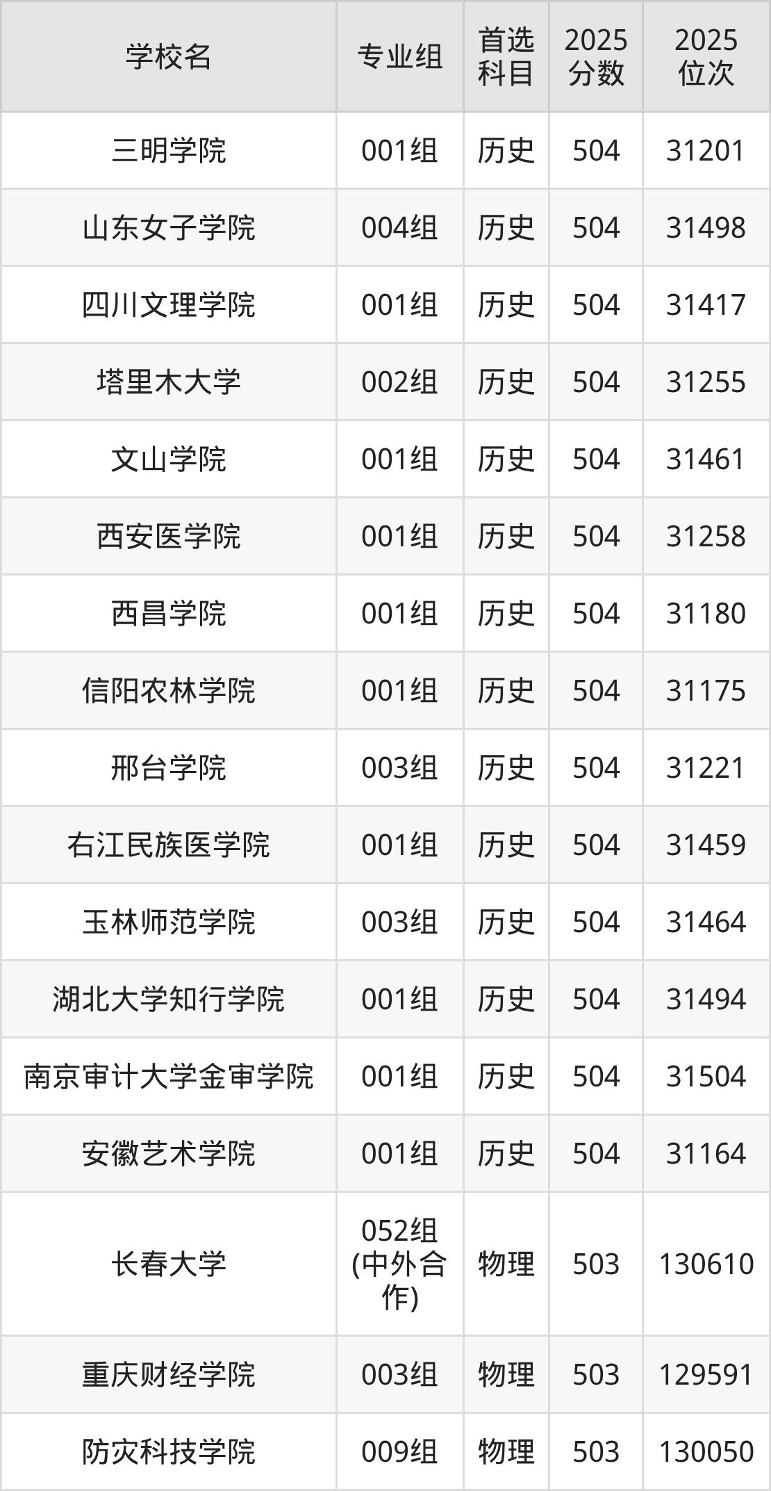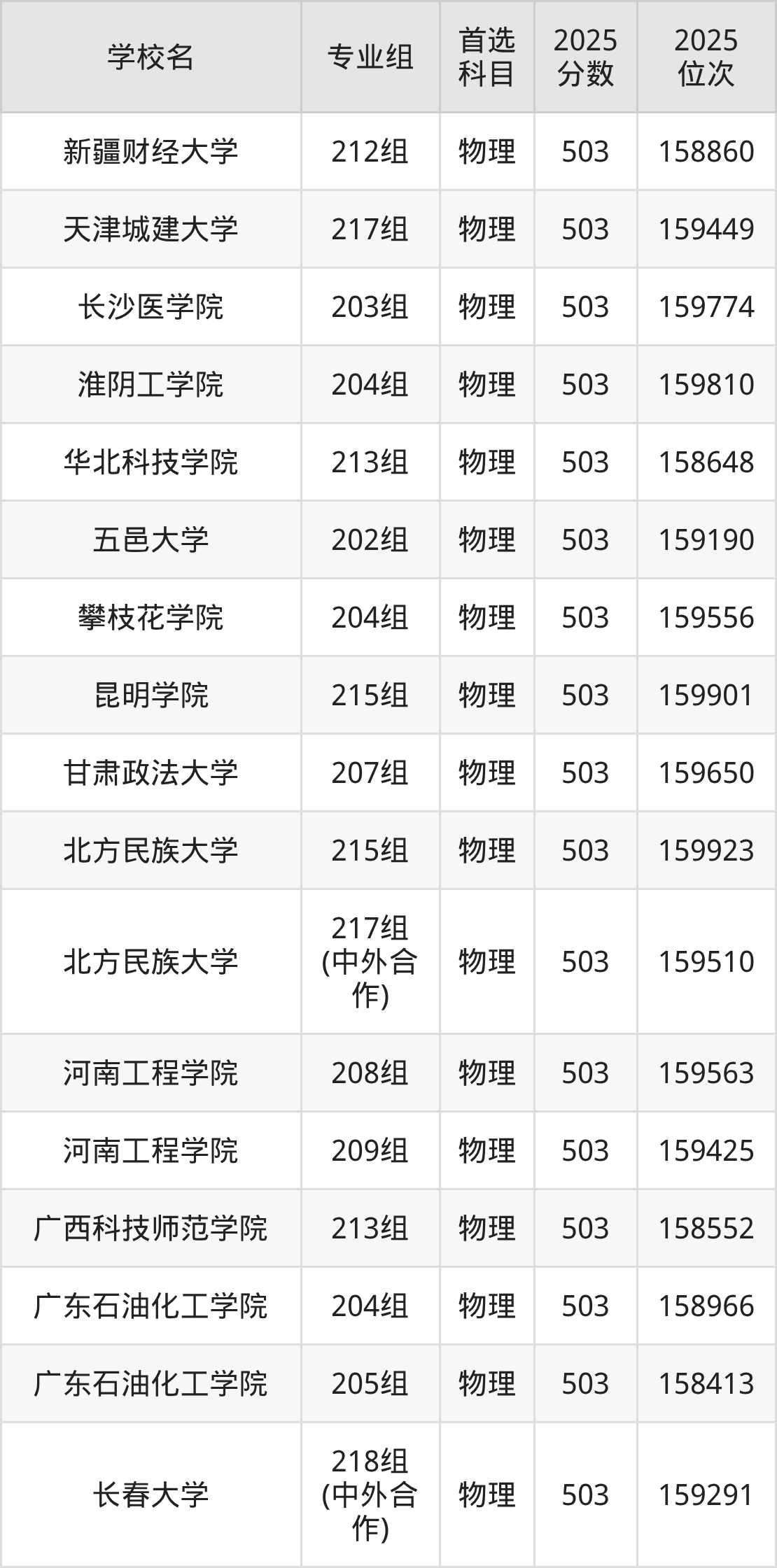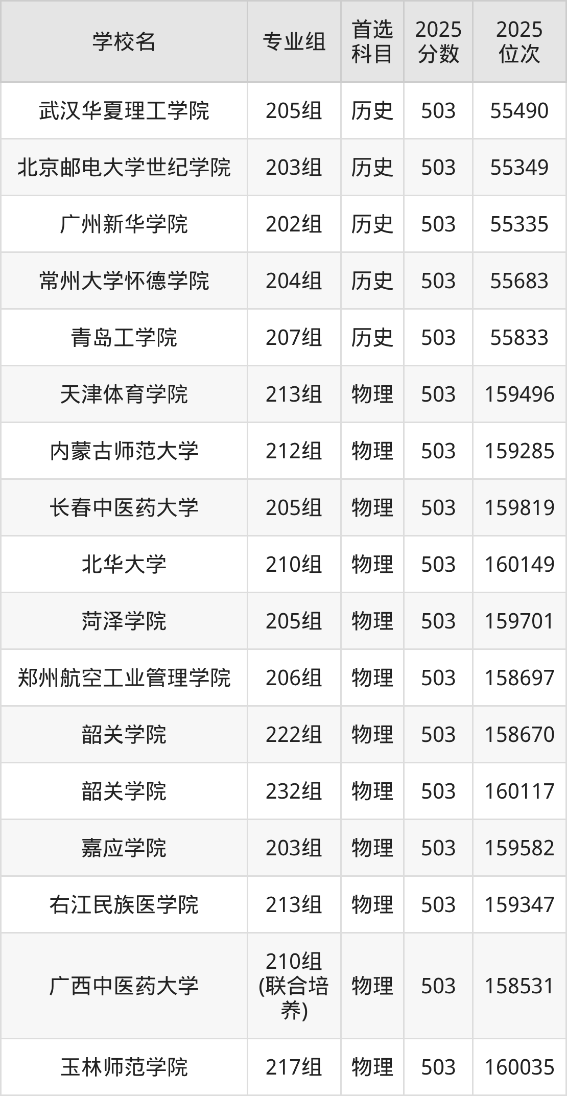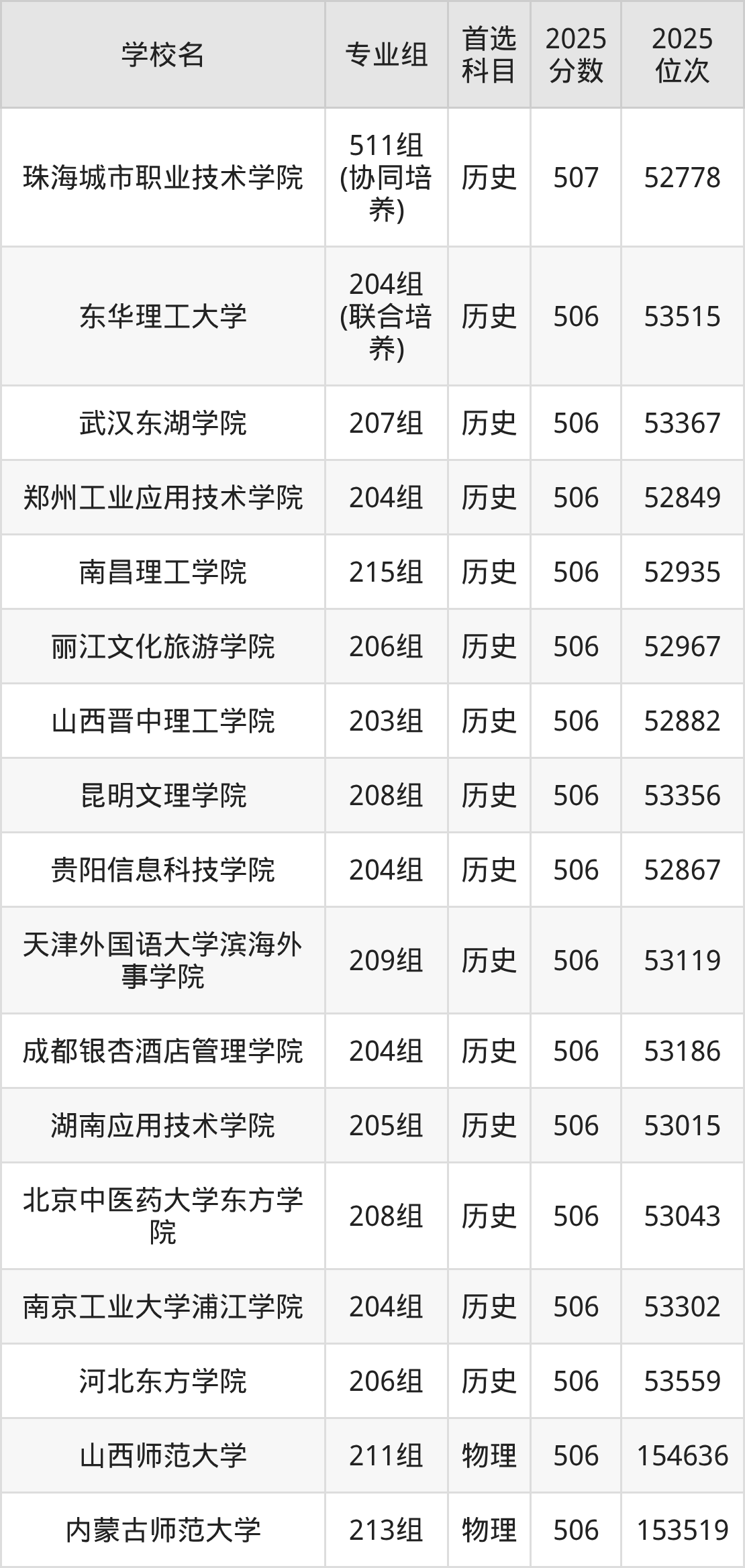 广东高考物理类505分对应的位次排名是154906名-156589名,历史类505分对应的位次排名是53592名-54358名,因此建议2026年位次排在这附近的同学考虑这些大学。